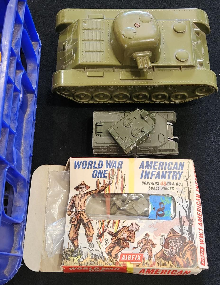 Vintage Tin Hand operated Mechanical Toy Pecking Feeding Chickens & Retro Chuckie E Cheese Cup plus Old Toy tank Soldiers