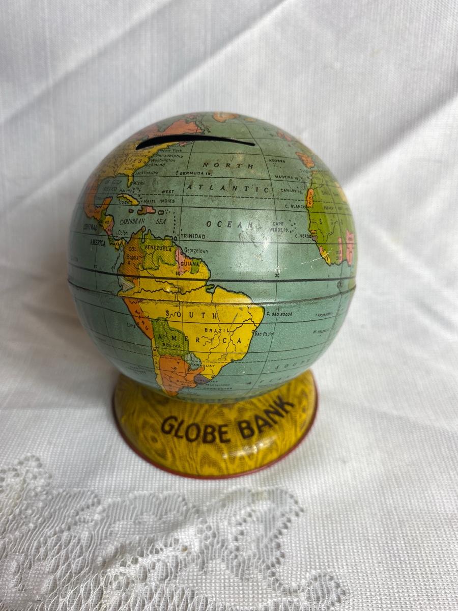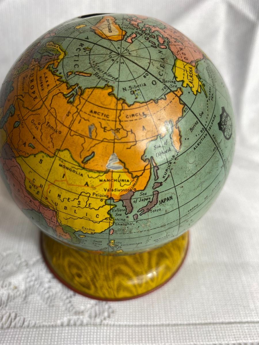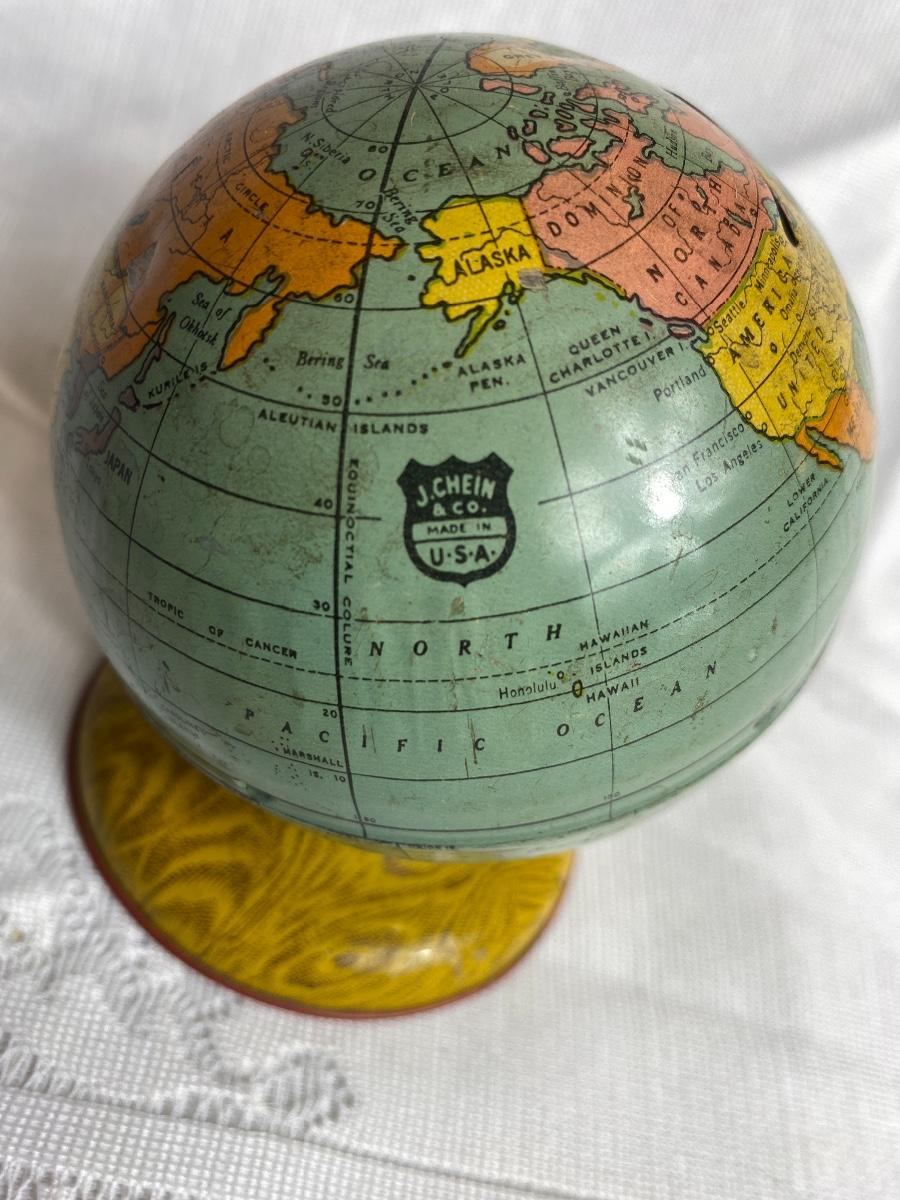 Vintage Tin Litho Globe Bank J. Chein & Co Made in USA Metal Toy