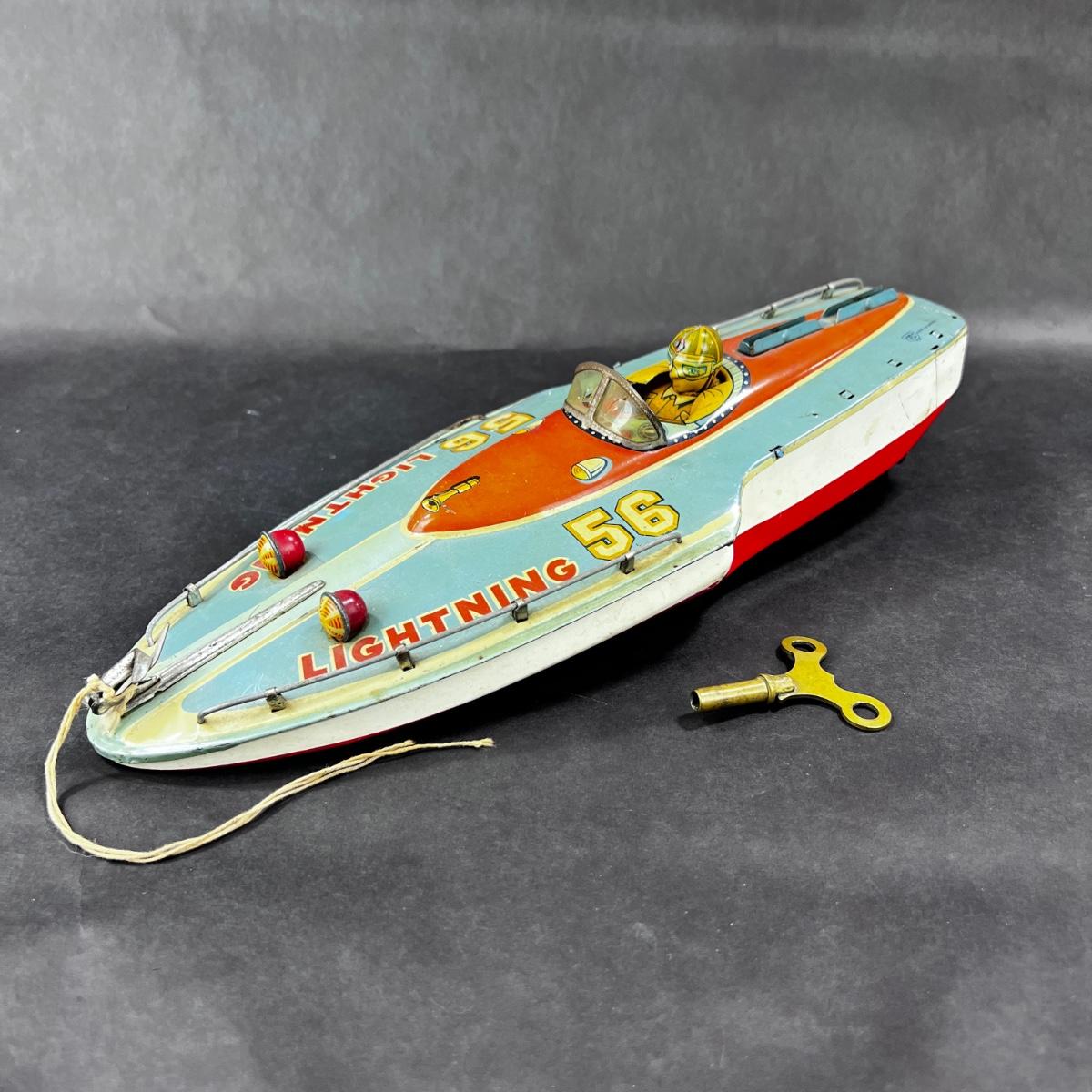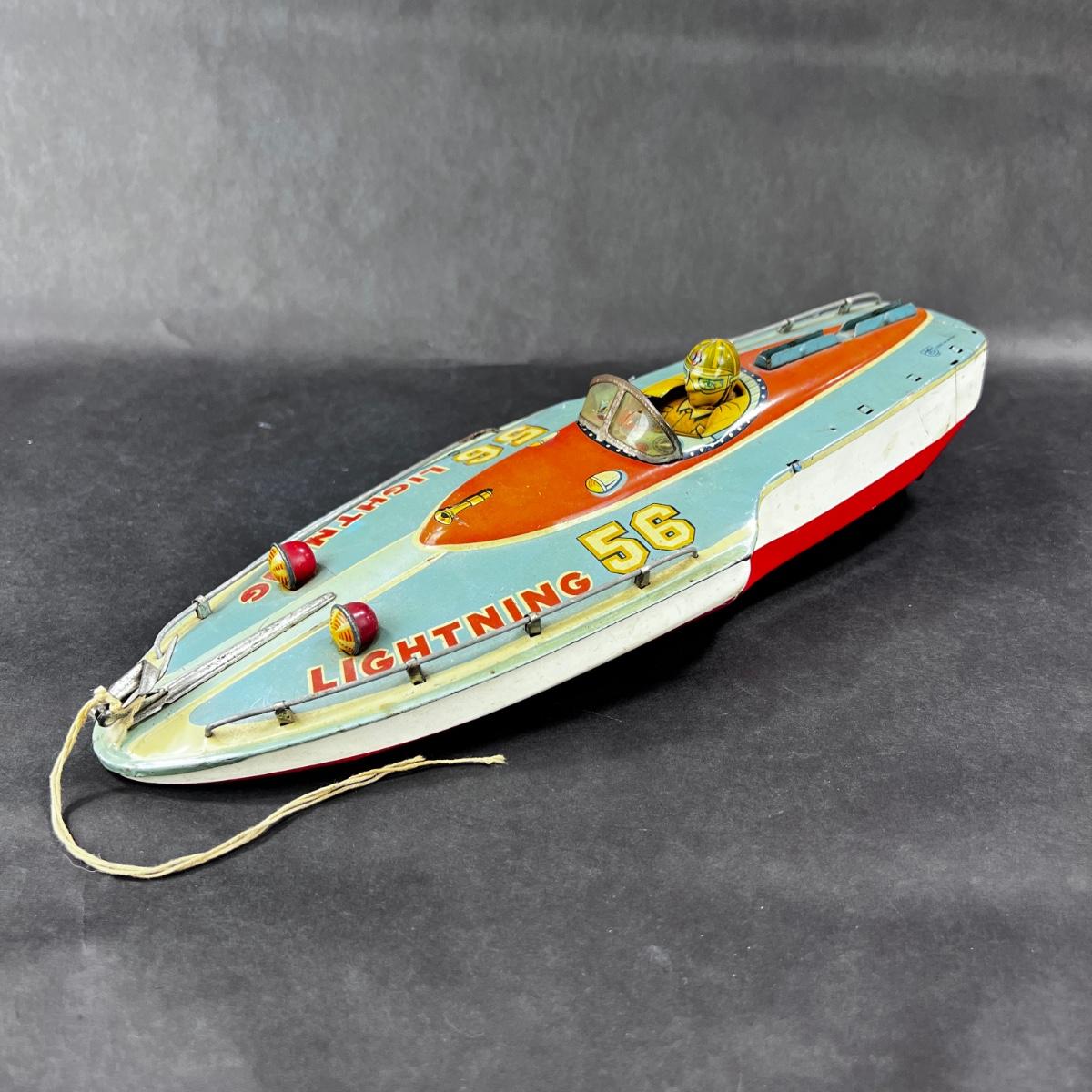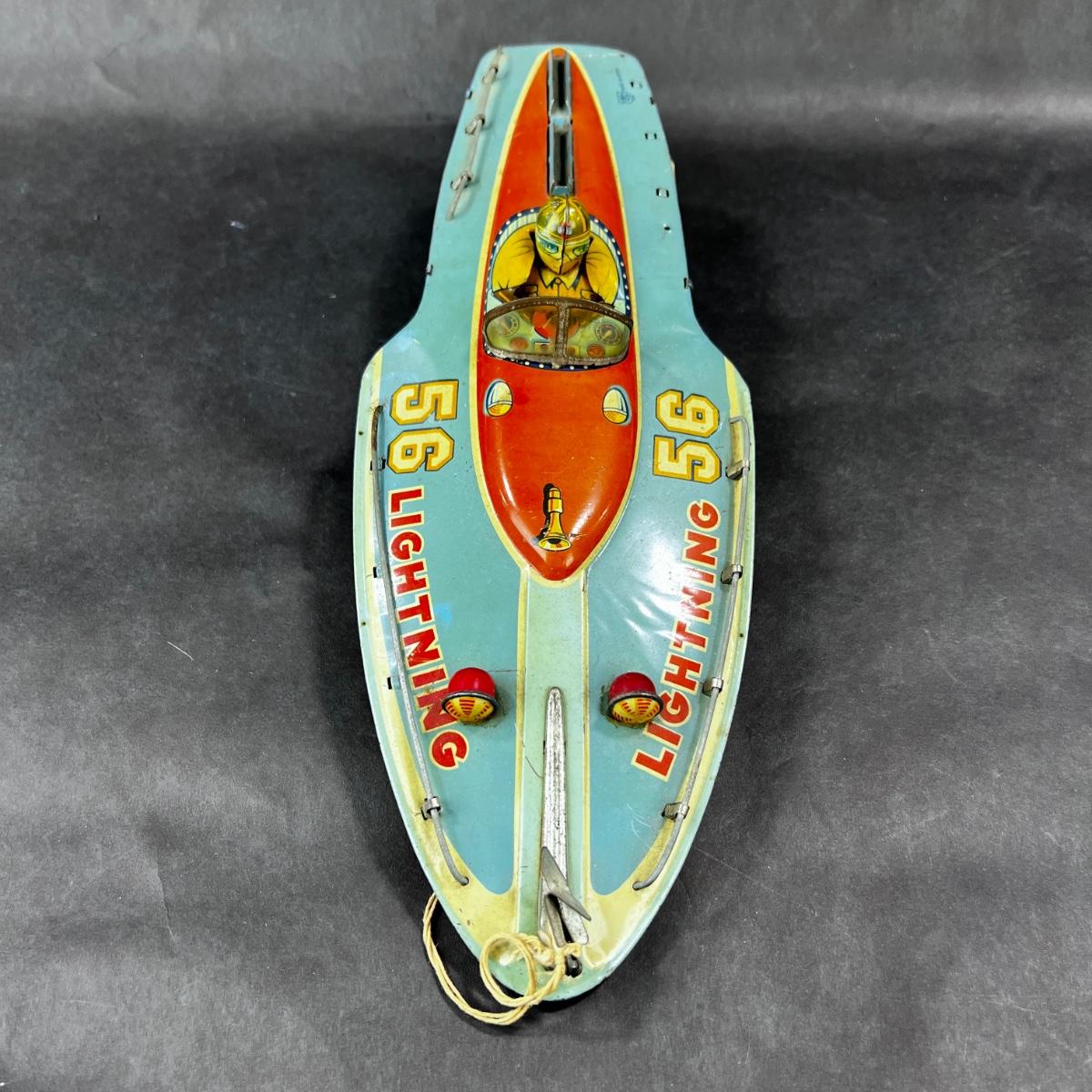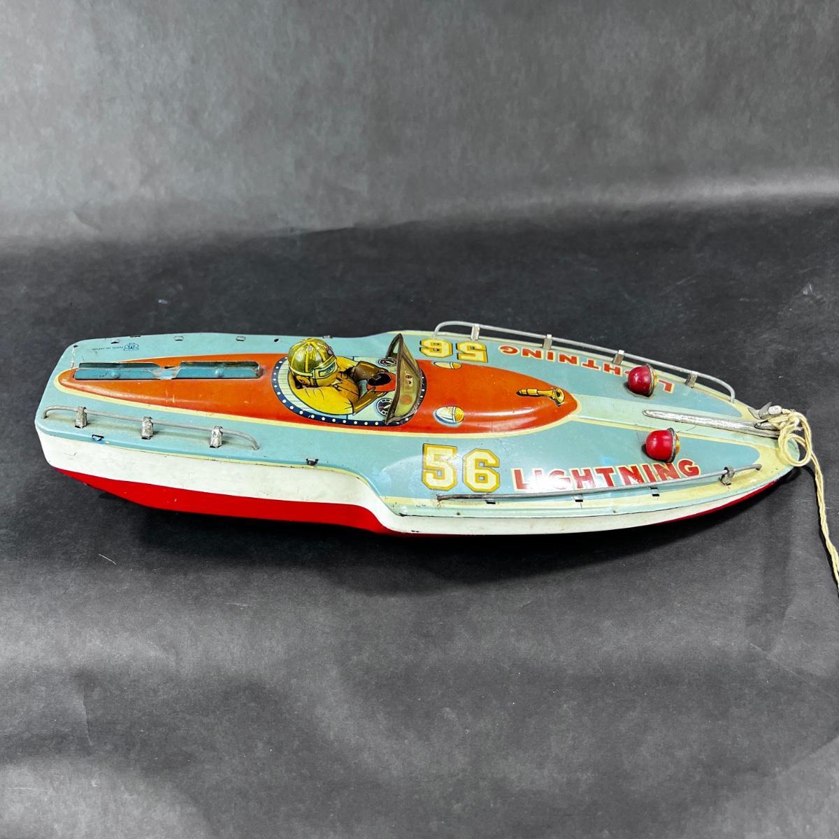 Vintage Tin Litho | Lightning 56 Speed Boat | Yonezawa Toys