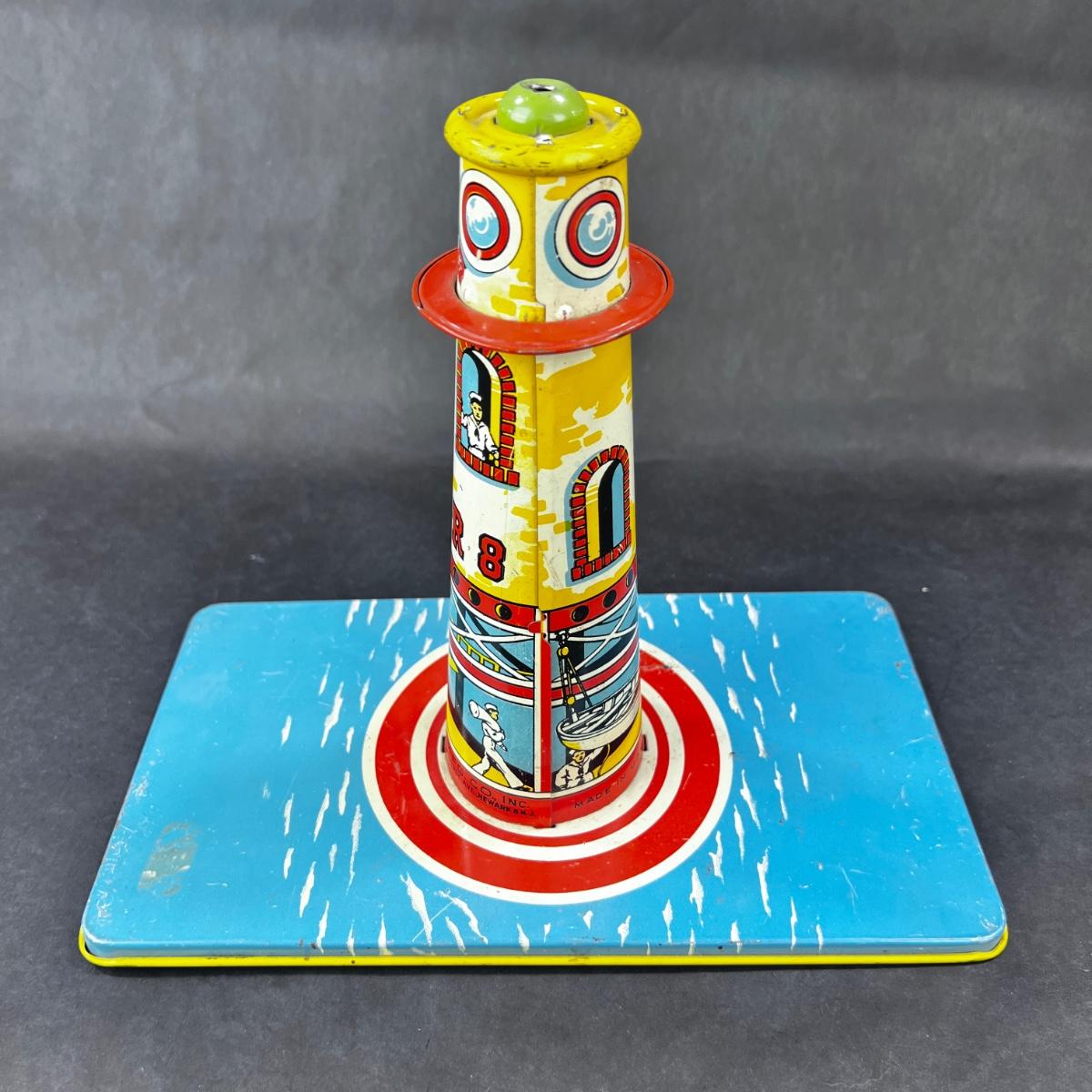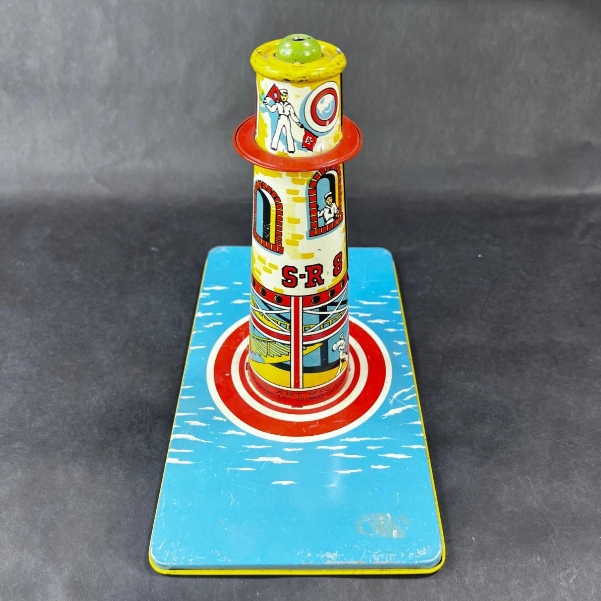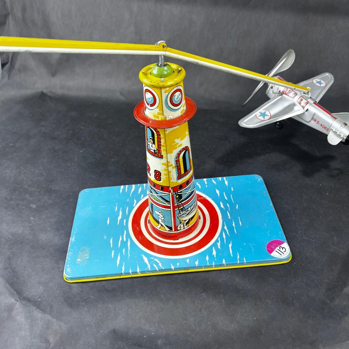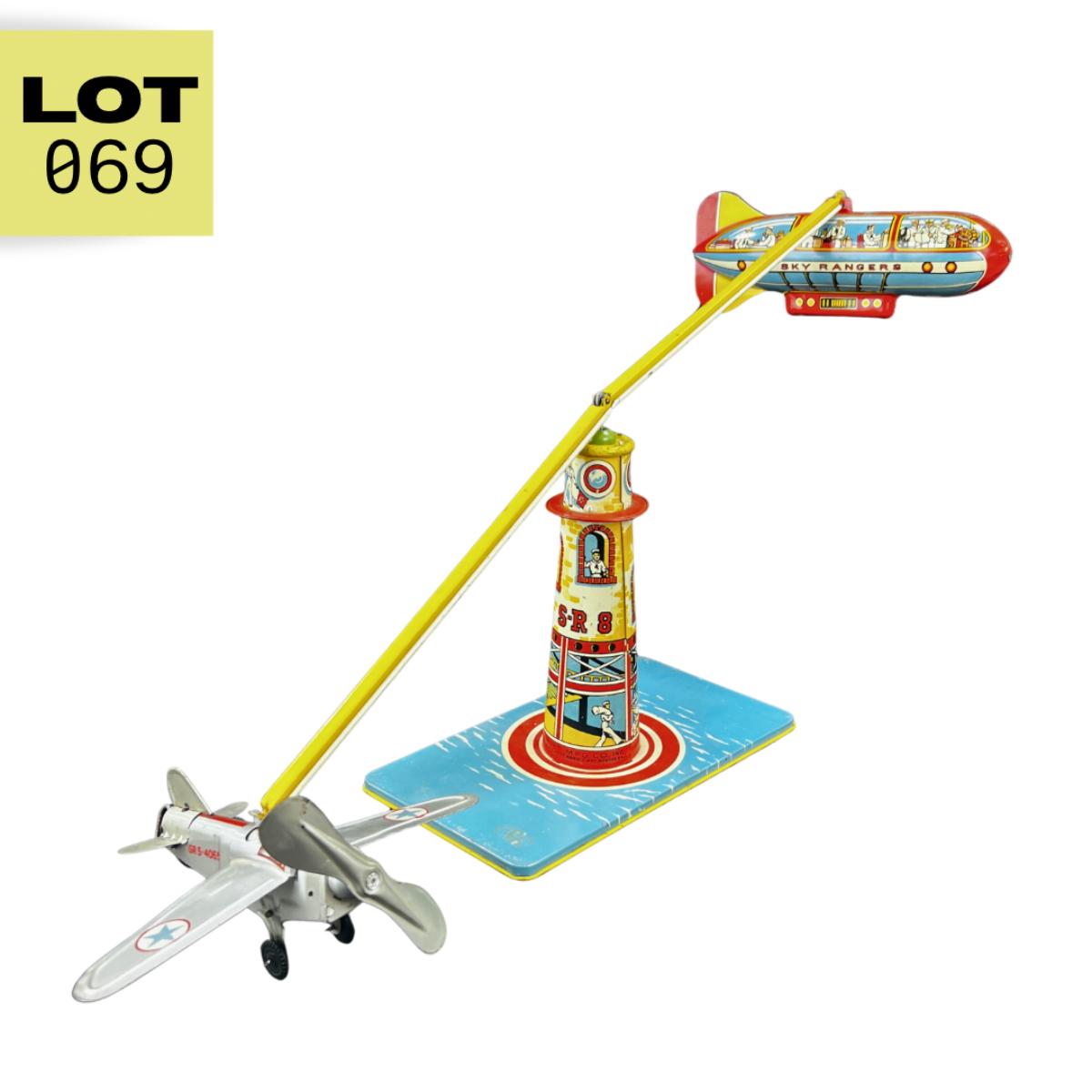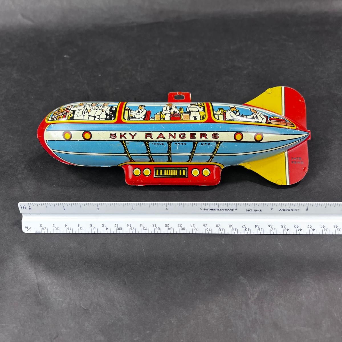 Vintage Tin Litho | Sky Rangers Blimp Light House & Plane | Unique Art