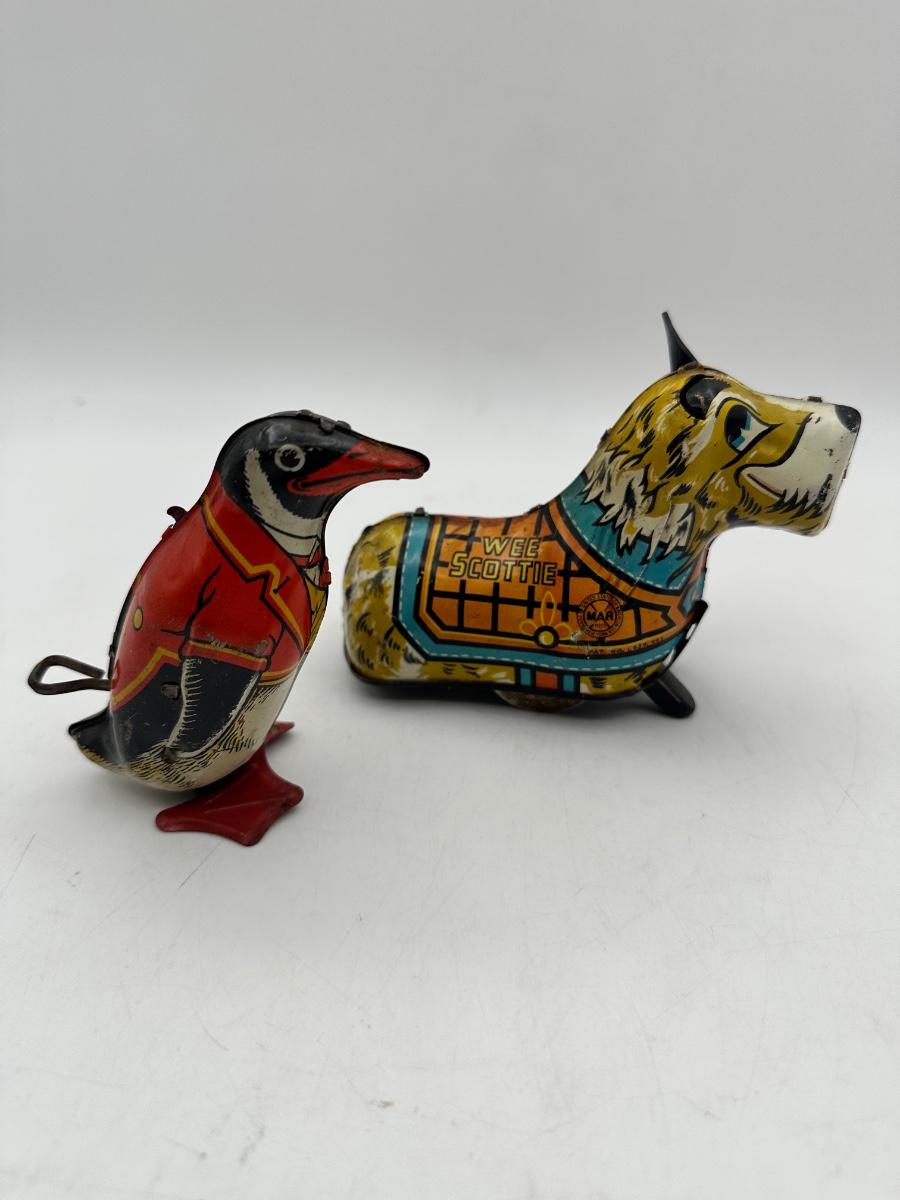 Classic penguin and “Wee Scottie” wind up toys. Neither function, see pics for condition.