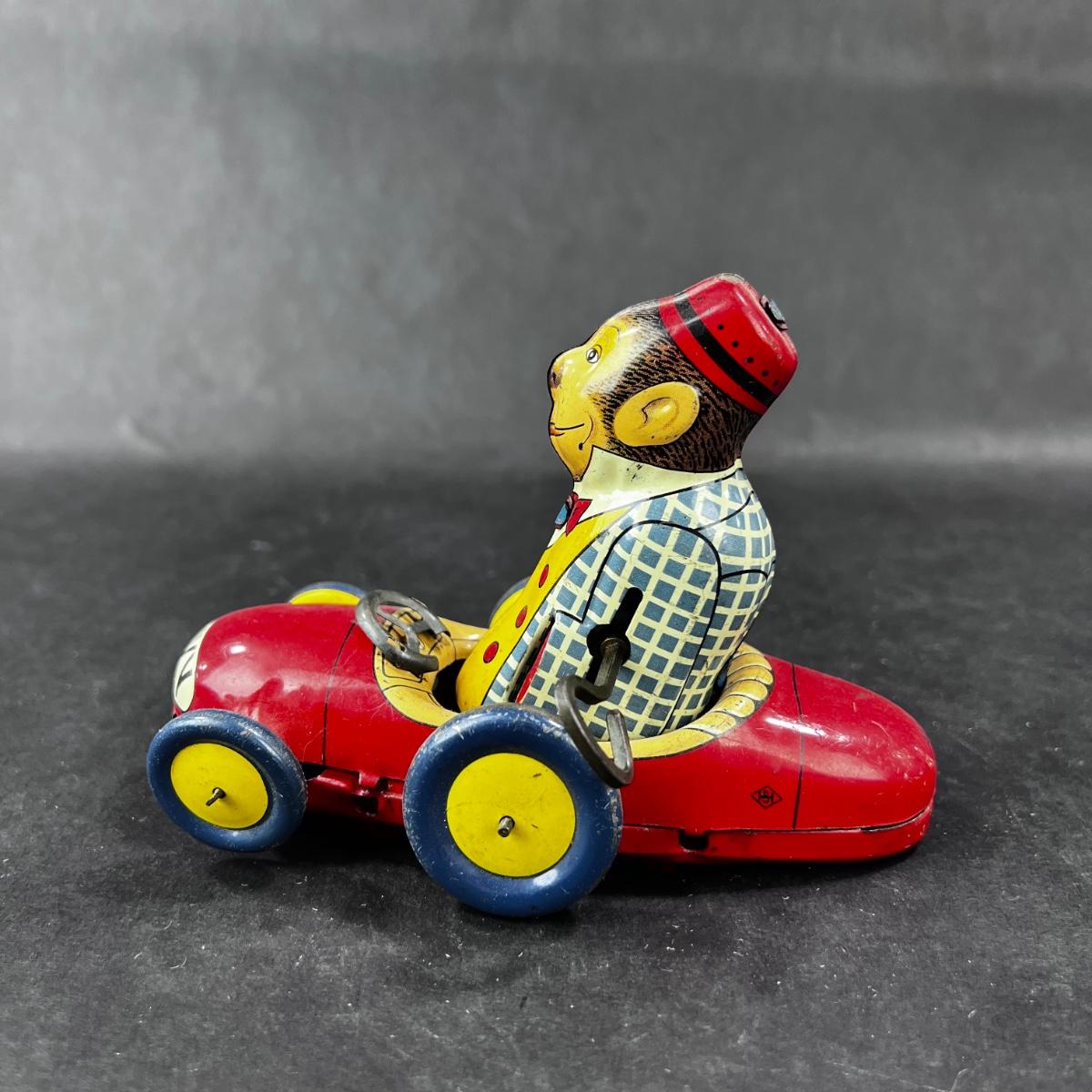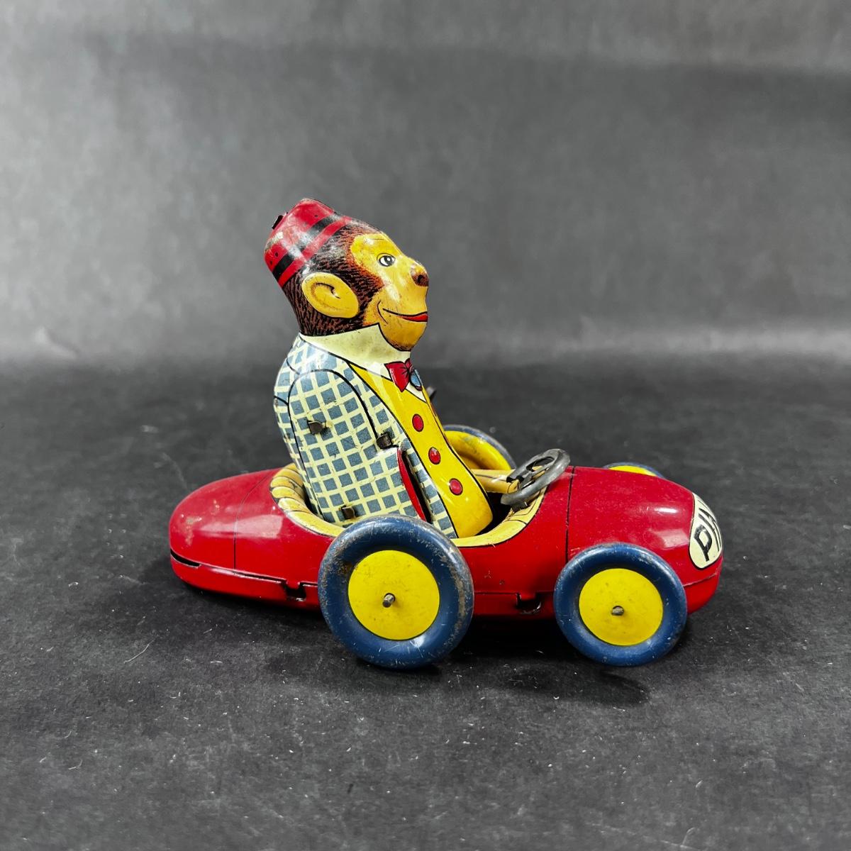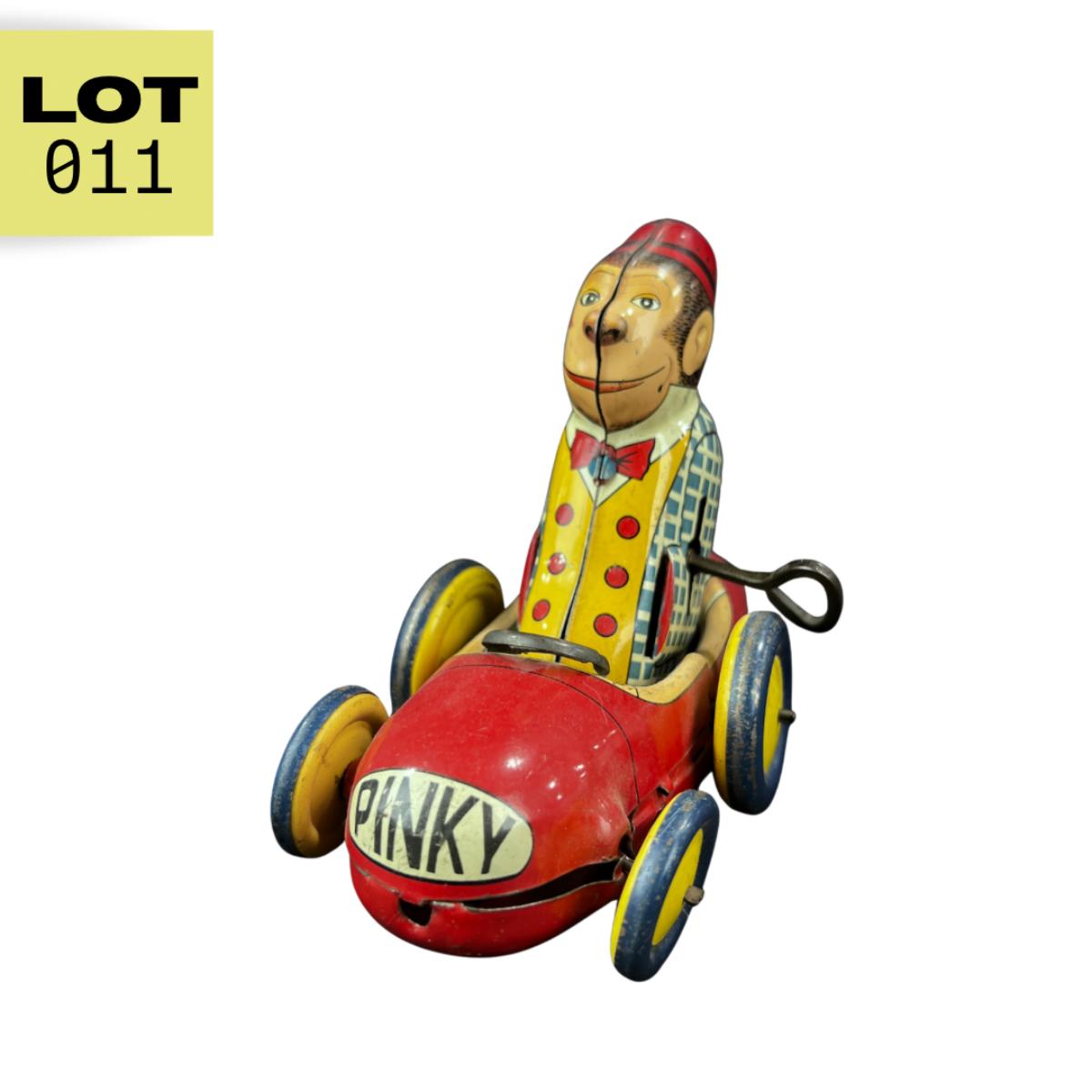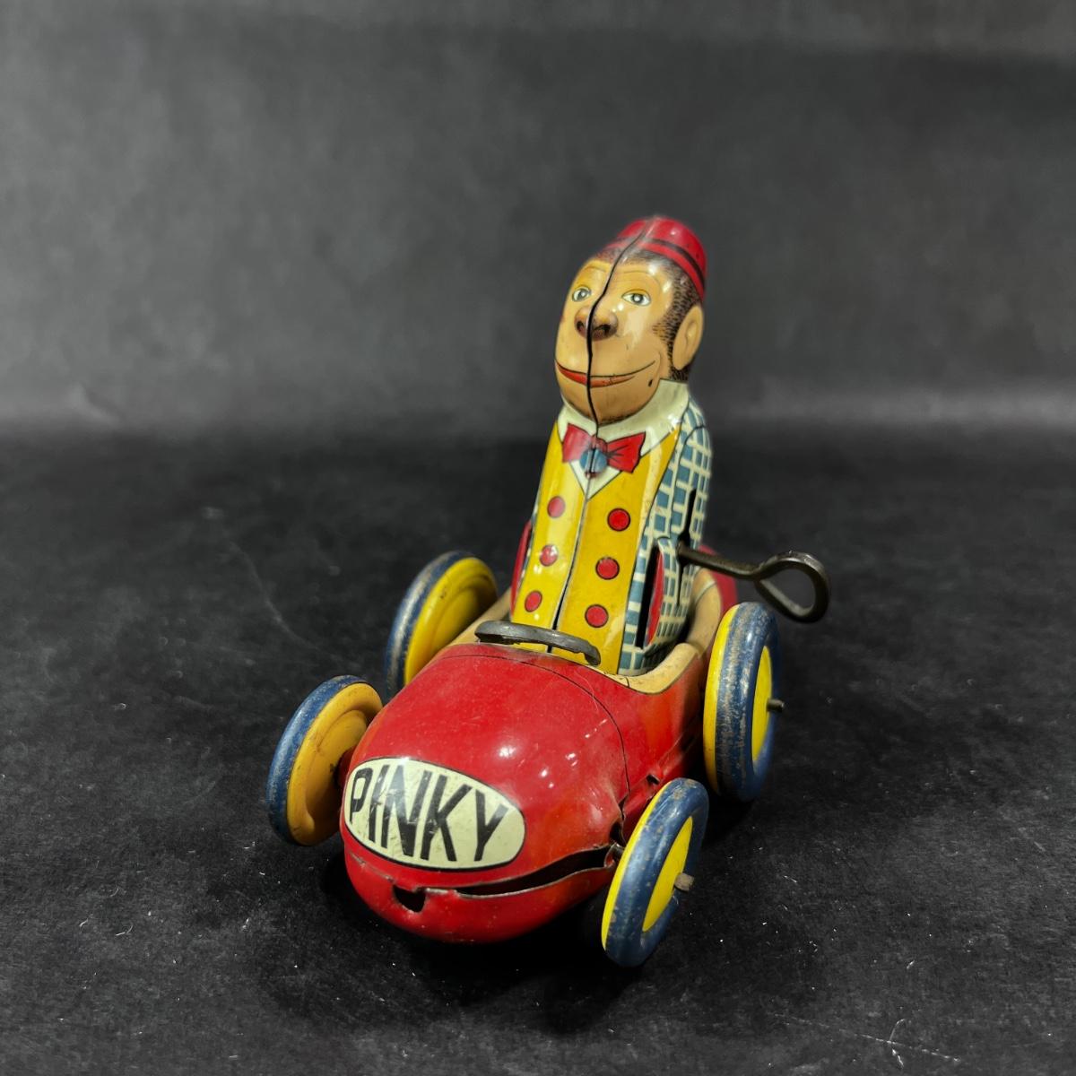 Vintage Tin Litho | Wind-Up Pinky the Monkey Car | AAA