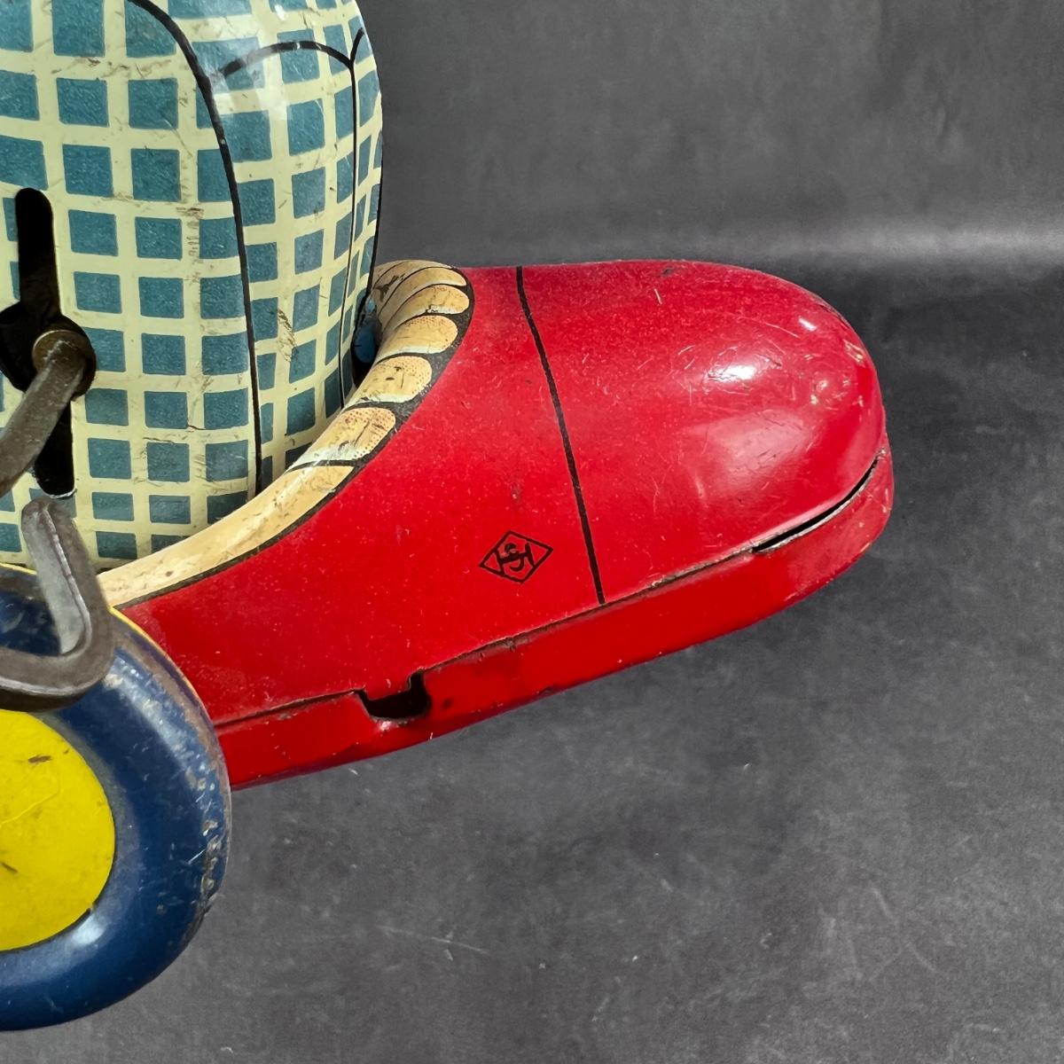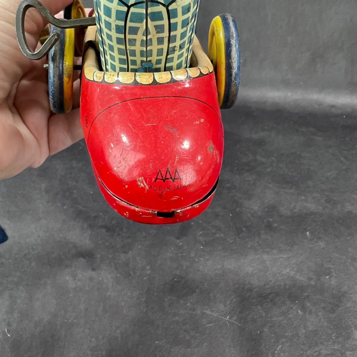 Nice Vintage Wind-Up Pinky the Money in his car. Produced by AAA, in Japan. This little guy doesn't want to run on his own. There is no video of him working - sorry! This guy comes with his key. **|** Please see photos for details and condition. ::: Shipping is available on this lot. If you require shipping you must let us know at the close of the auction. We will coordinate with you after the item has been won. Shipping fees will include insurance up to or exceeding the value of all items being mailed. If you have any questions regarding this lot please contact the auctioneer either via this website, by direct email or by phone. PICK UP TIMES and other important information can be found in the TERMS and DESCRIPTION of the auction. Please take a look for pertinent information. Thanks!