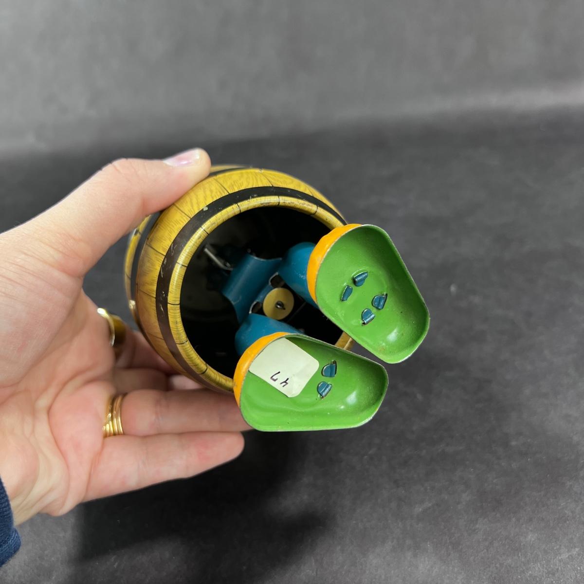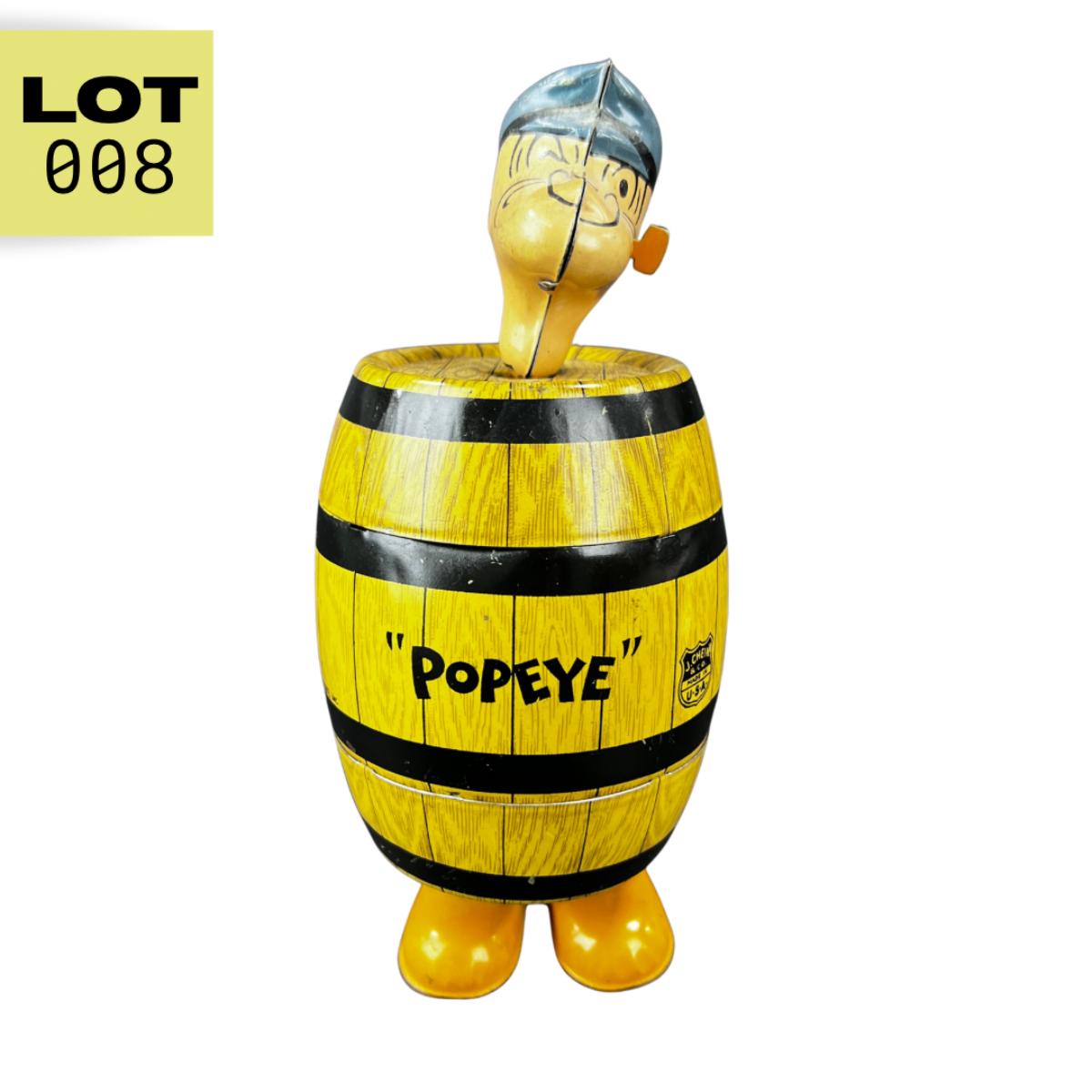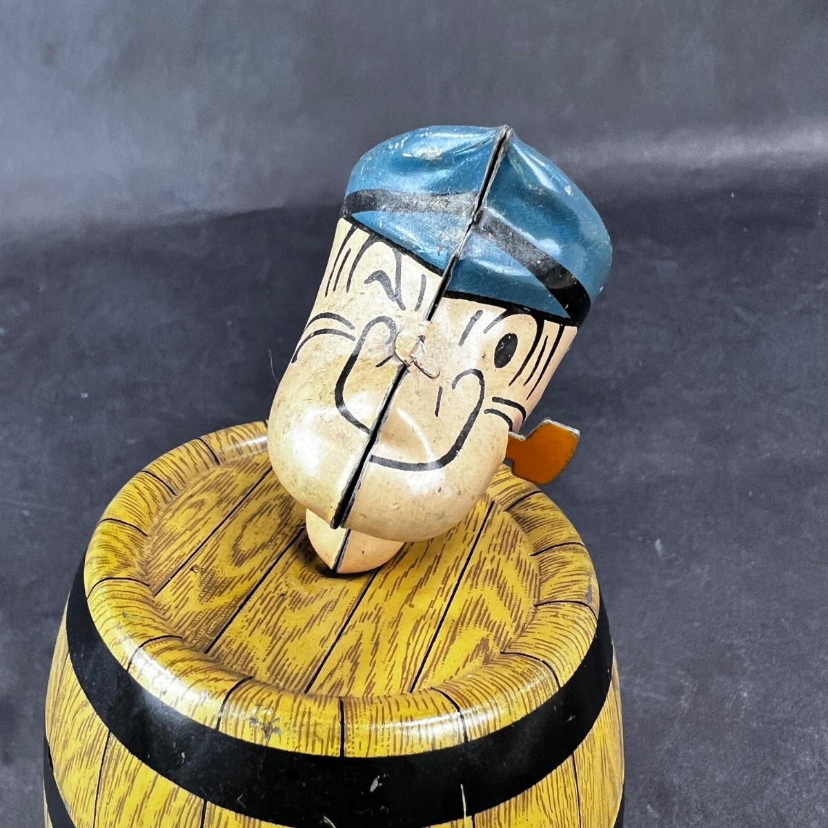 Vintage Tin Litho | Wind-Up Popeye in Barrel | J. Chein & Co.