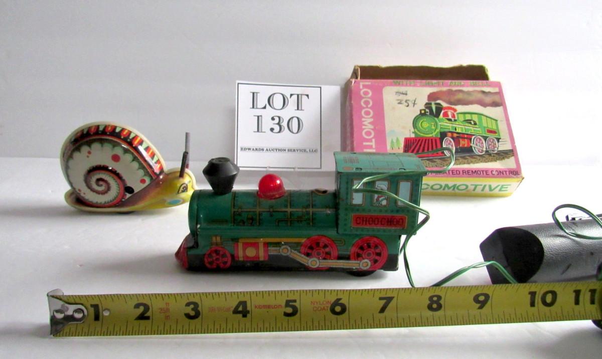 Vintage Tin Marx Locomotive Battery Op and Wind Up Snail