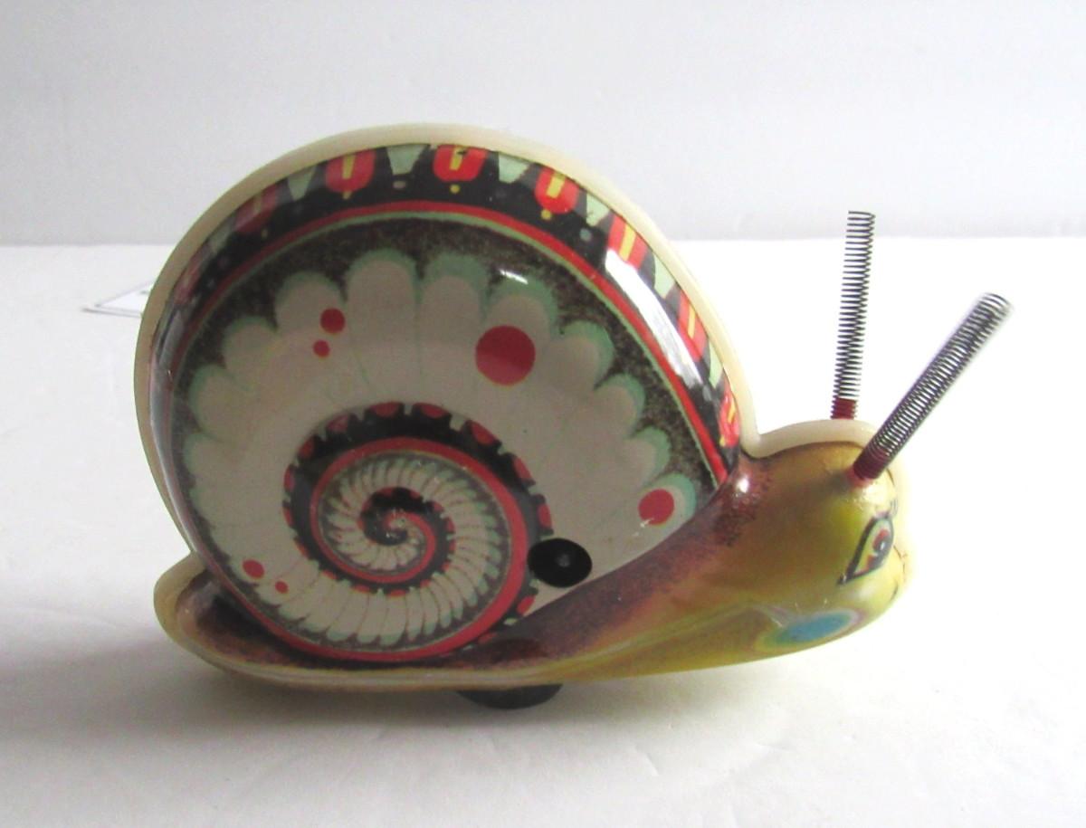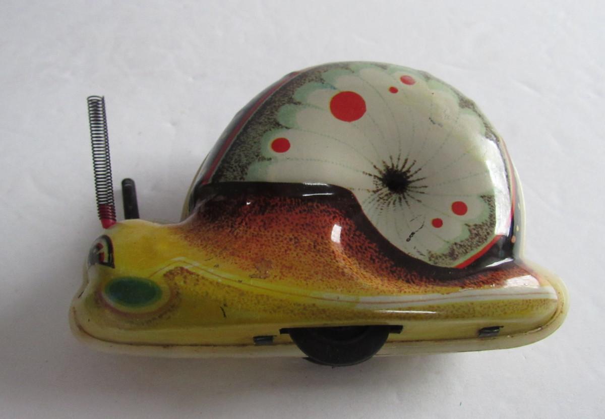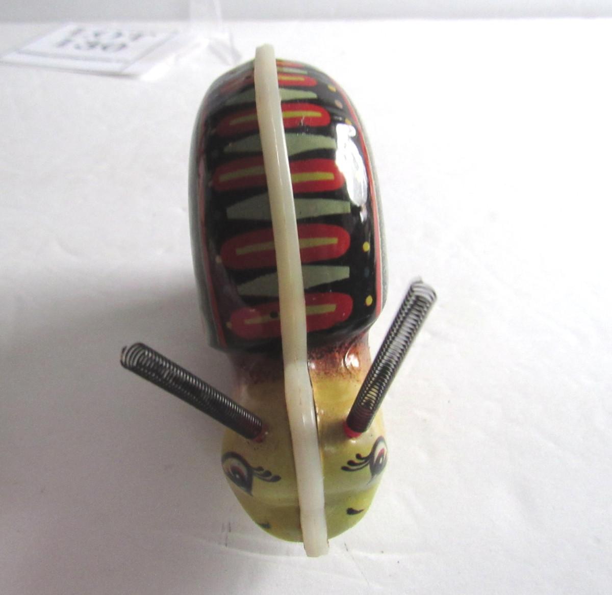 The snail works but does not have a key. The Marx train engine's light works but I can't get it to move. Not sure what is wrong, the wiring looks very good and intact to me. Battery compartment looks clean. The light works so don't know why it doesn't move. Has original box. Shipping available at actual cost plus $5.00 per box handling fee. See our terms for details. All sales final.