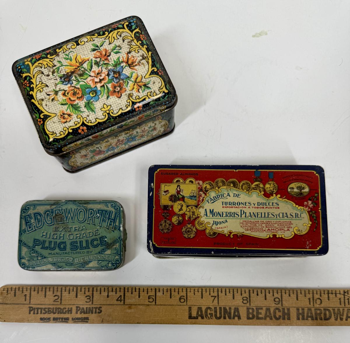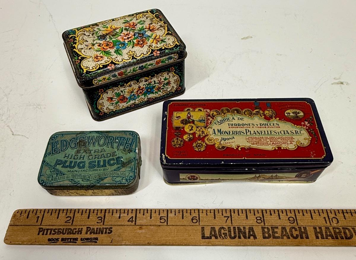 Vintage Tin Metal cans with hinged lids - lot of 3