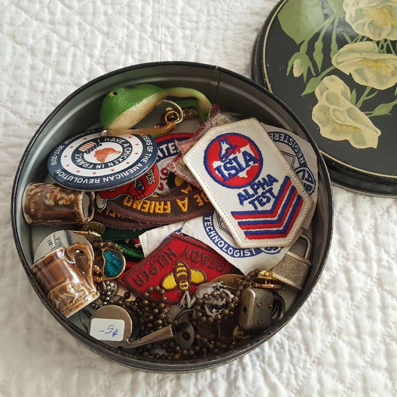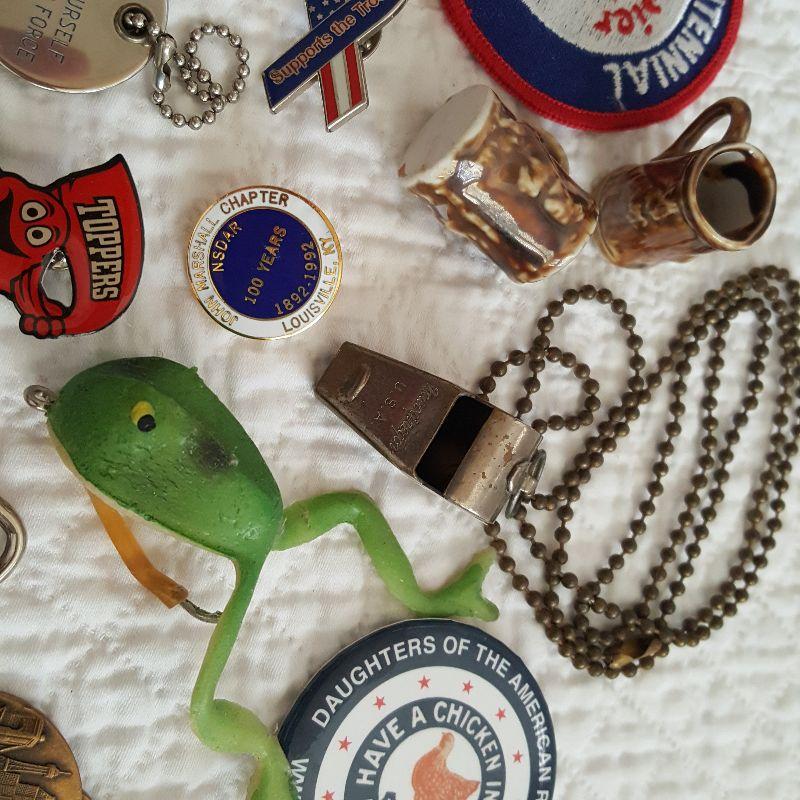 This auction lot is for a Vintage Tin of Assorted Finds. The tin is filled with little items we found around the house as we cleaned out our most current estate. Bric-a-brac and what-a-not. Great discovery for crafters, artsy folks or whomever. The tin itself is nice and quite a find. The whistle is quite shrill.