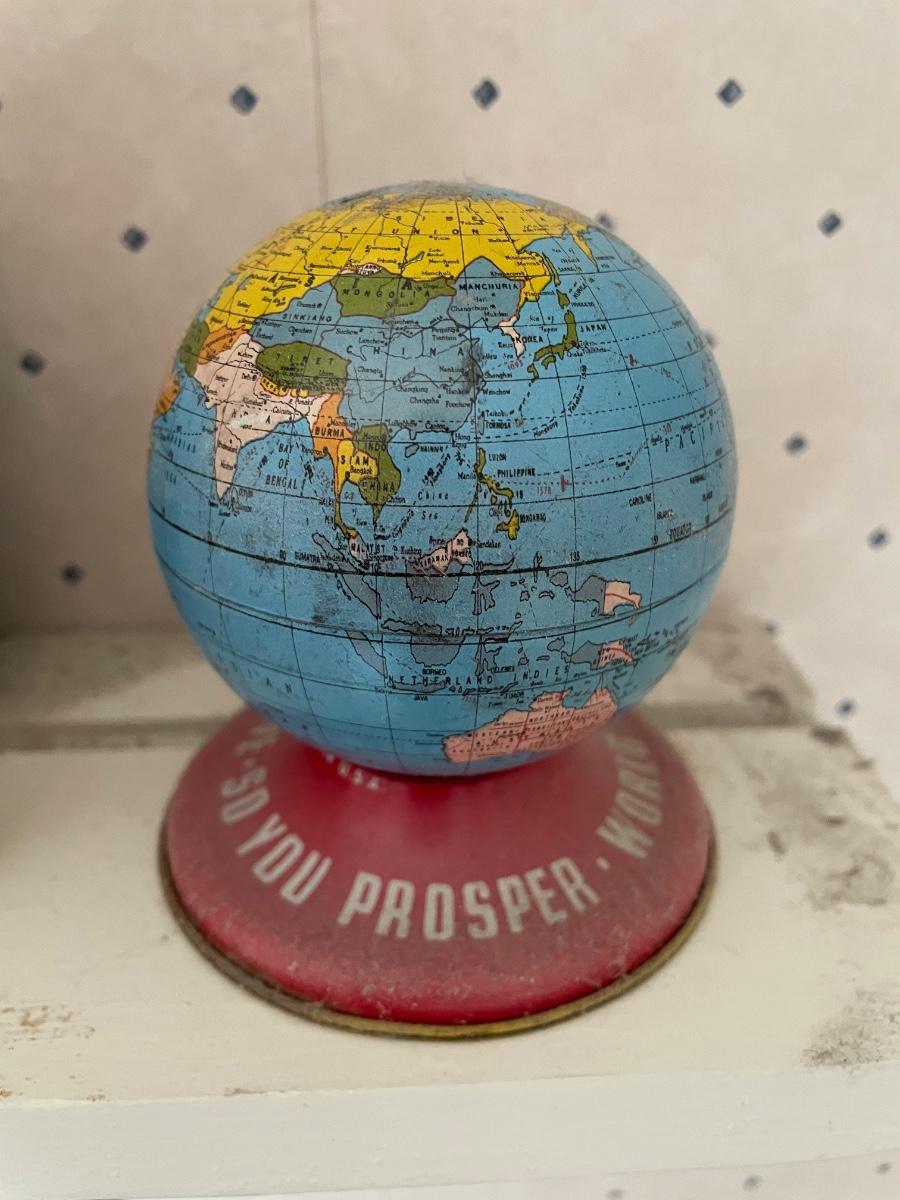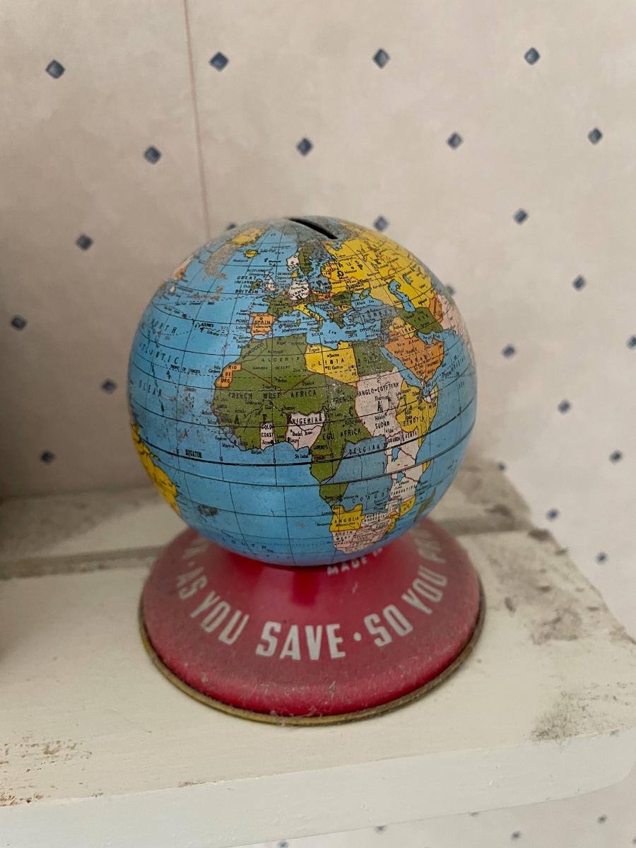 Vintage Tin Ohio Art Globe World Bank