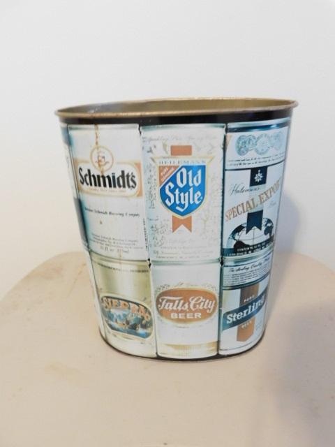 Vintage Tin Old Style Local Brew Brand Waste Can