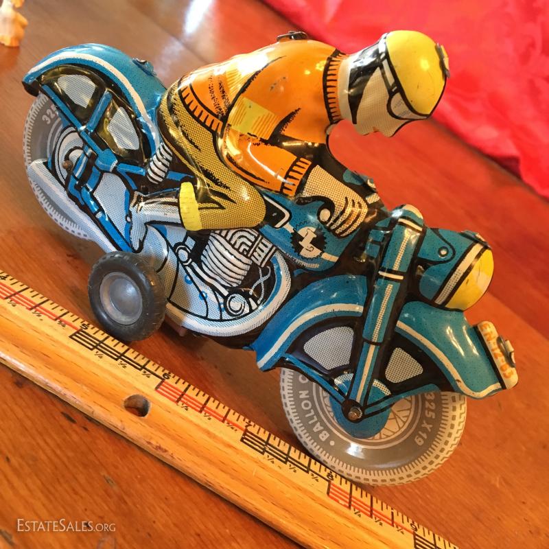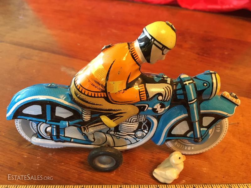 Vintage TIN TOY "BALLON CORDATIC, MOTORCYCLE RACER", Friction