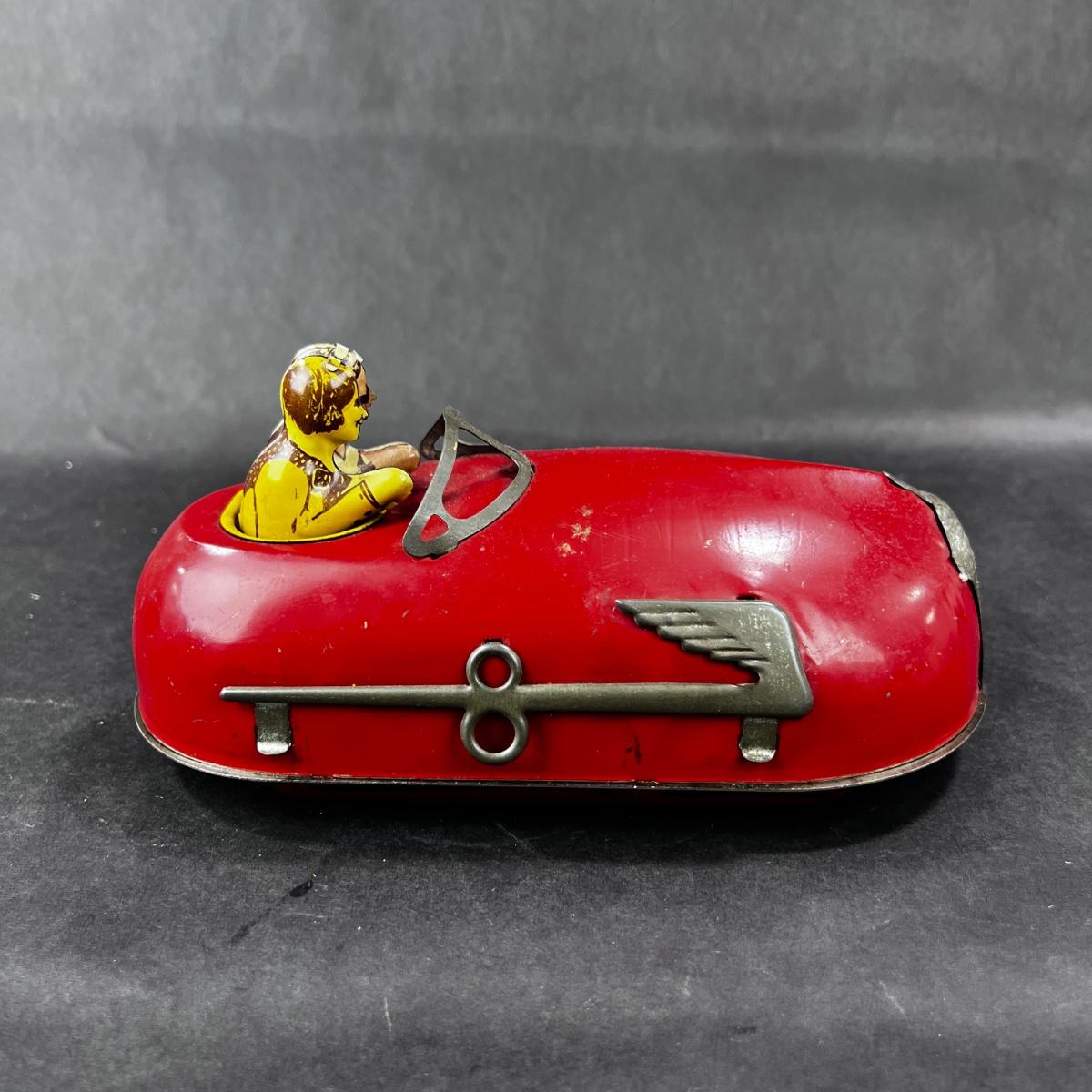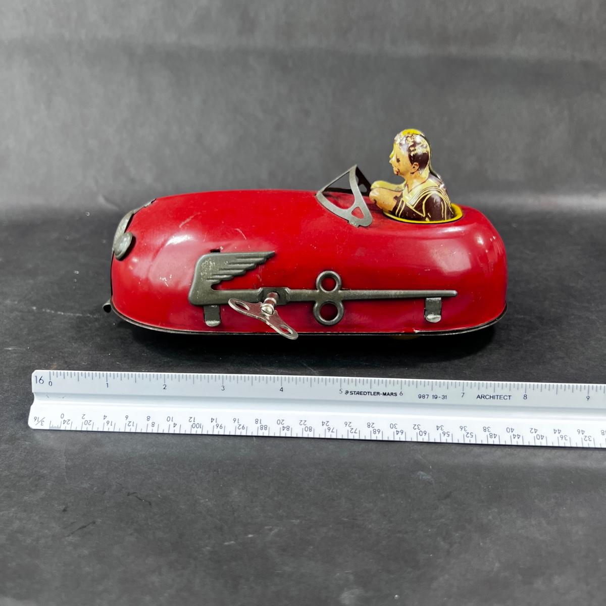 An Attractive Tin Wind-Up toy, a Lindstrom Skeeter Bug. meant to be a bumper car, it is to move around in sporadic circles. this piece has some damage. Please see photos for details and condition. **Works, Video of Function on YouTube Video, Has Key** **|** Please see photos for details and condition. ::: Shipping is available on this lot. If you require shipping you must let us know at the close of the auction. We will coordinate with you after the item has been won. Shipping fees will include insurance up to or exceeding the value of all items being mailed. If you have any questions regarding this lot please contact the auctioneer either via this website, by direct email or by phone. PICK UP TIMES and other important information can be found in the TERMS and DESCRIPTION of the auction. Please take a look for pertinent information. Thanks!