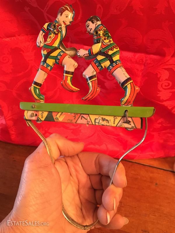 Vintage Tin Toy, Squeeze BOXERS. Fast flying Arms & Jabs