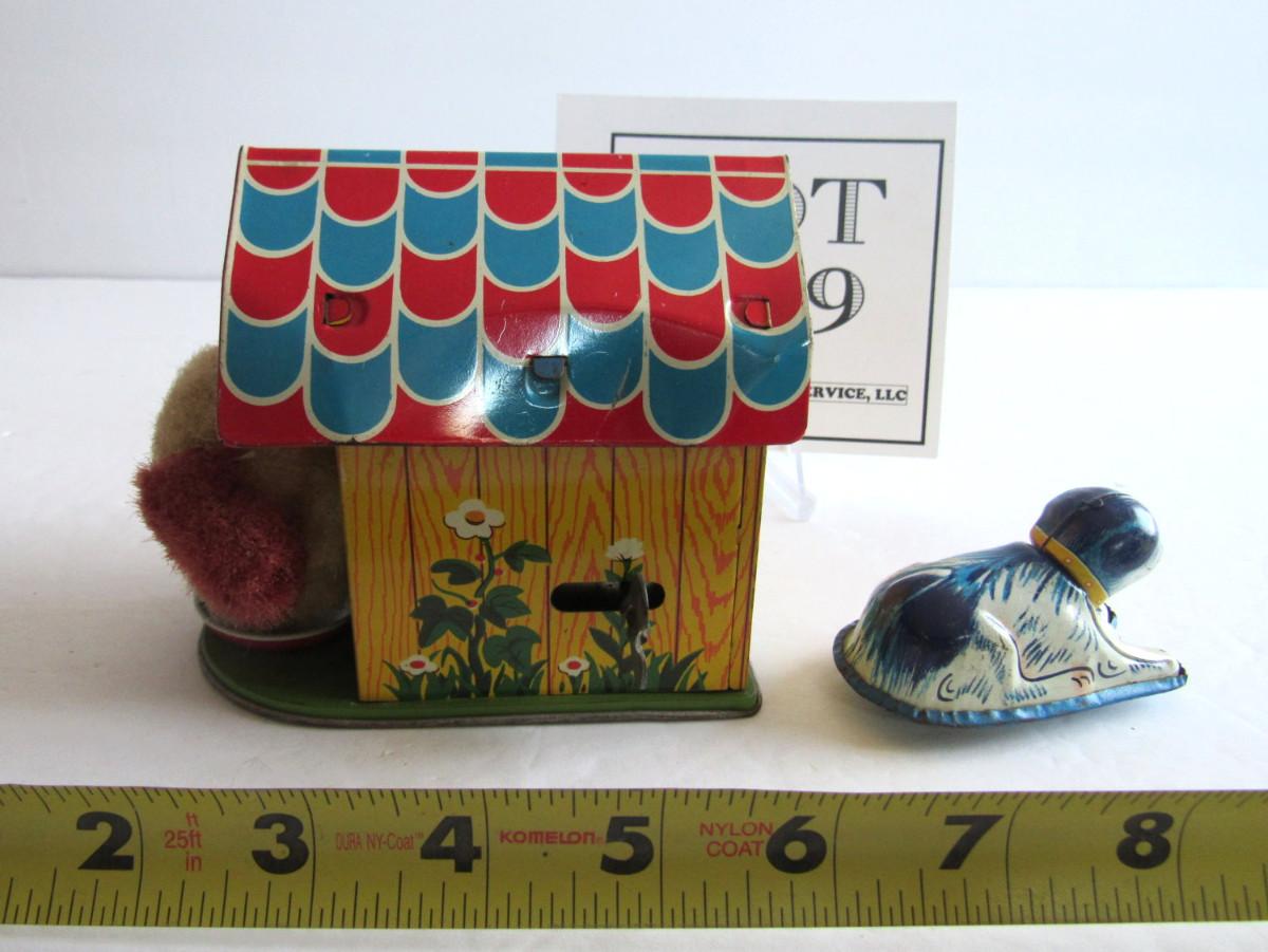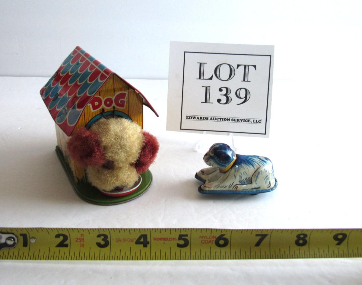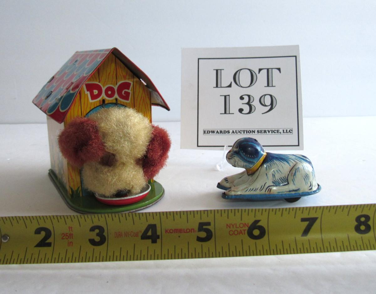 Vintage Tin Toy Wind Up Dog in Doghouse and Friction Tiny Dog