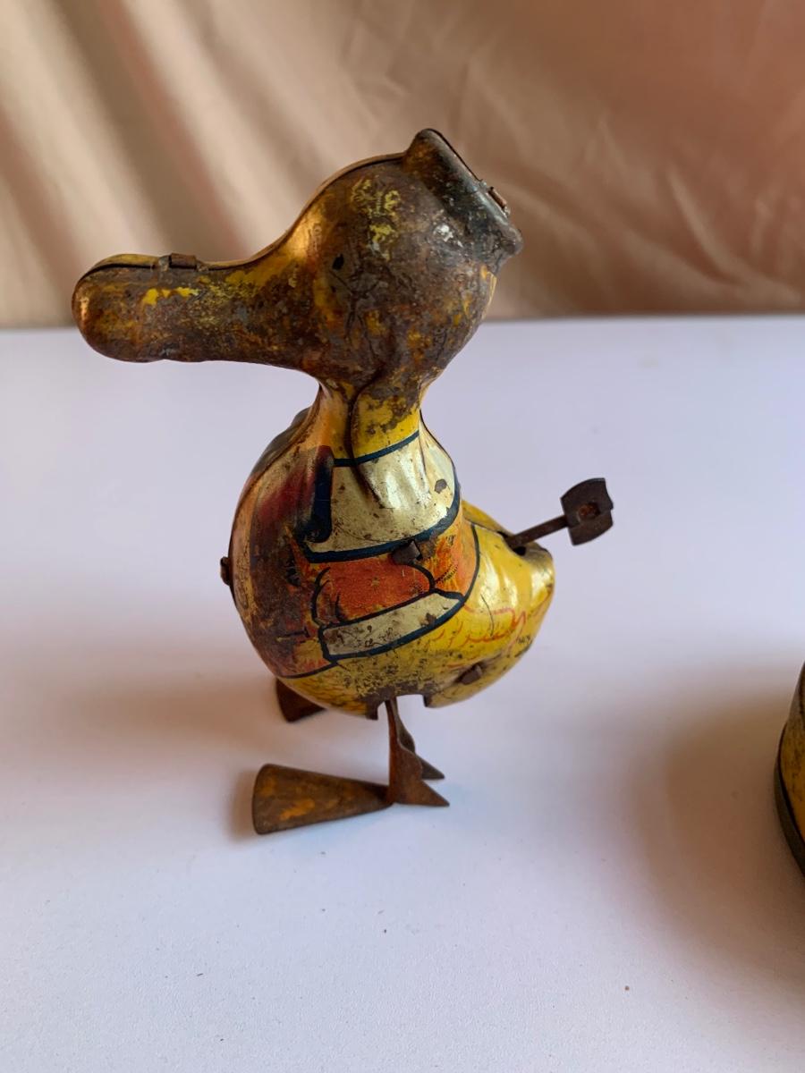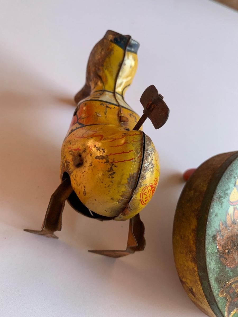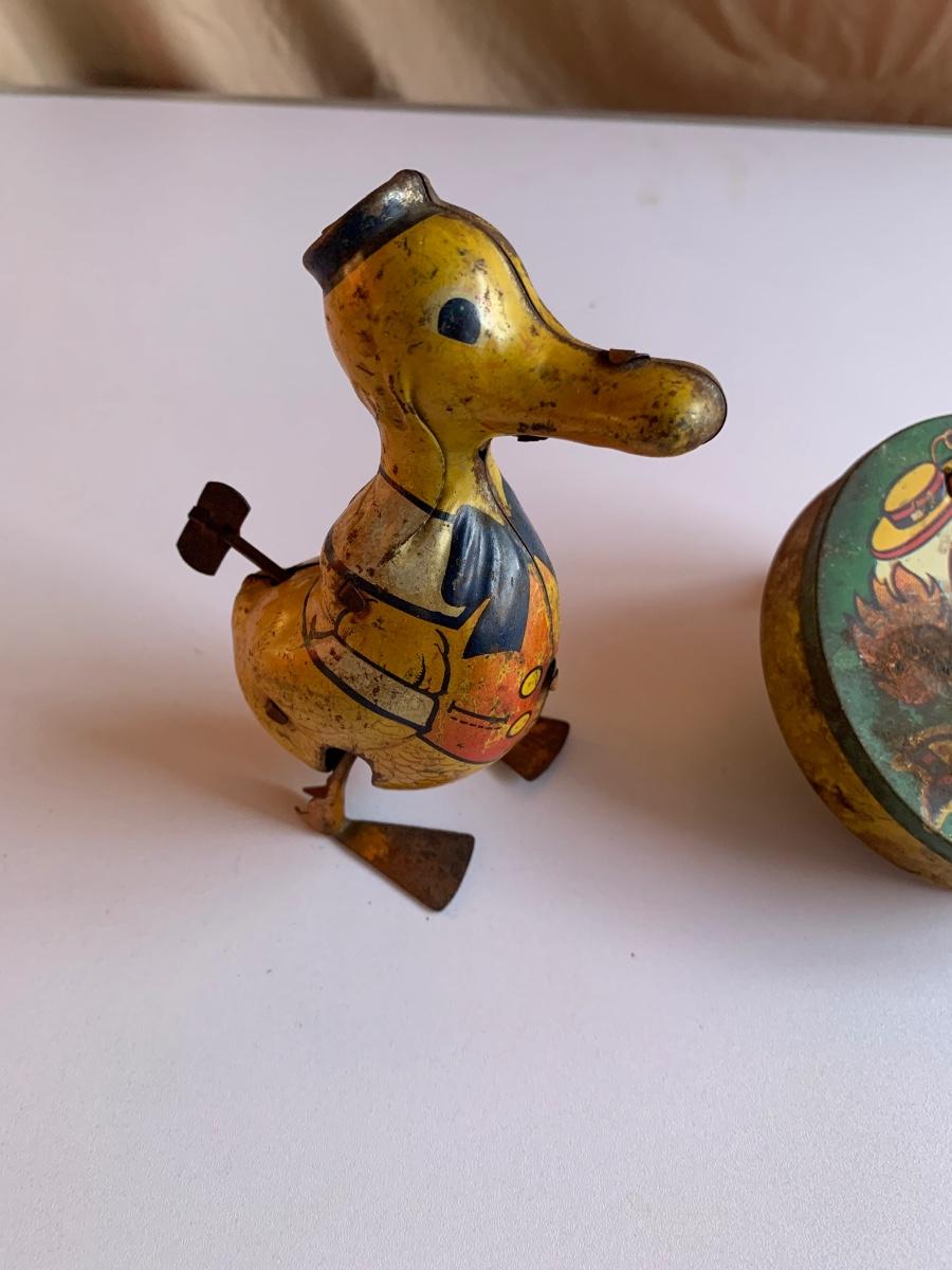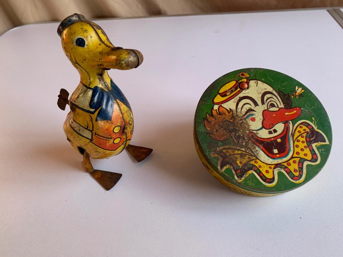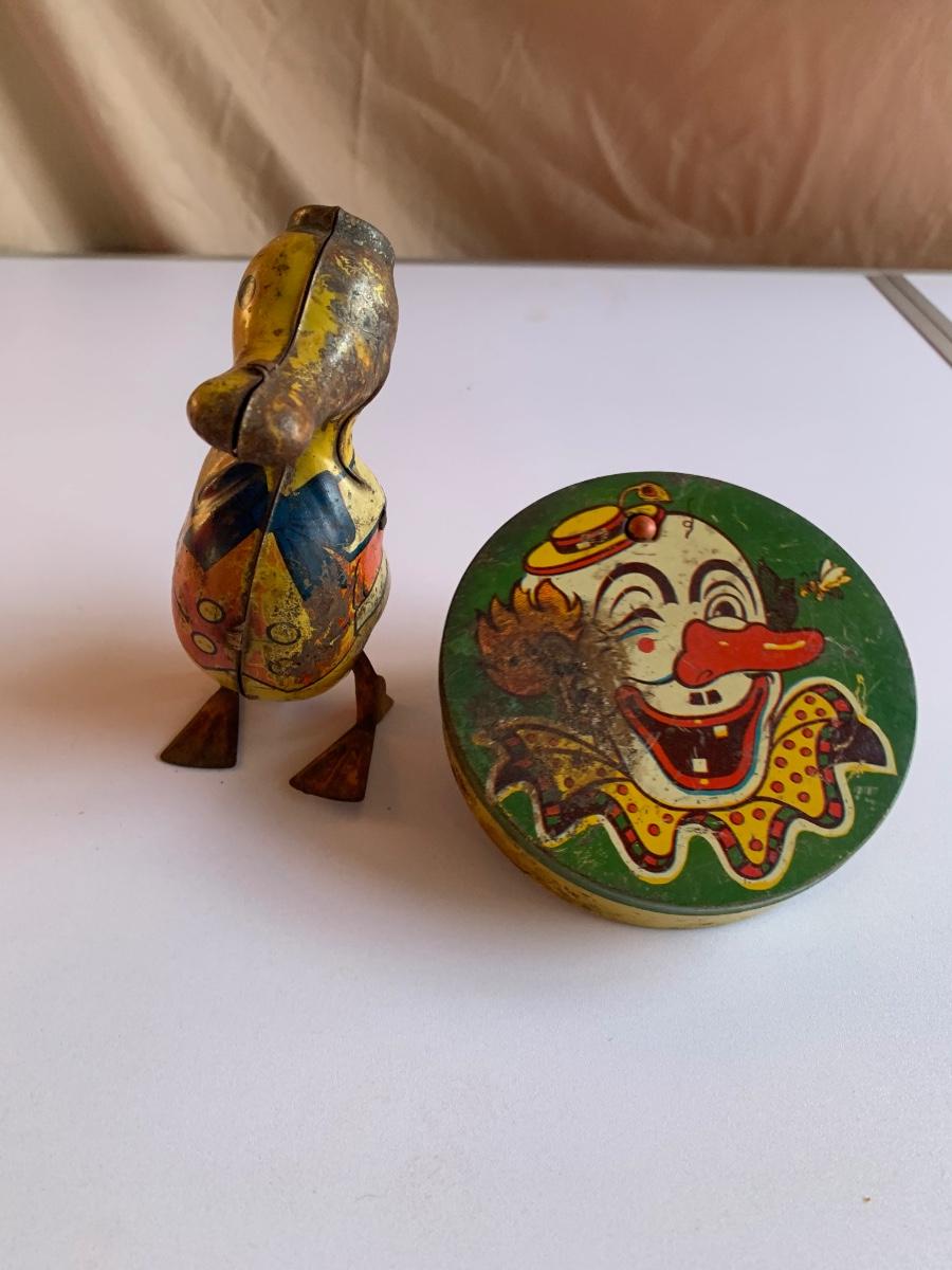 Vintage Tin Toys-J. Chien duck & Clown Noise Maker