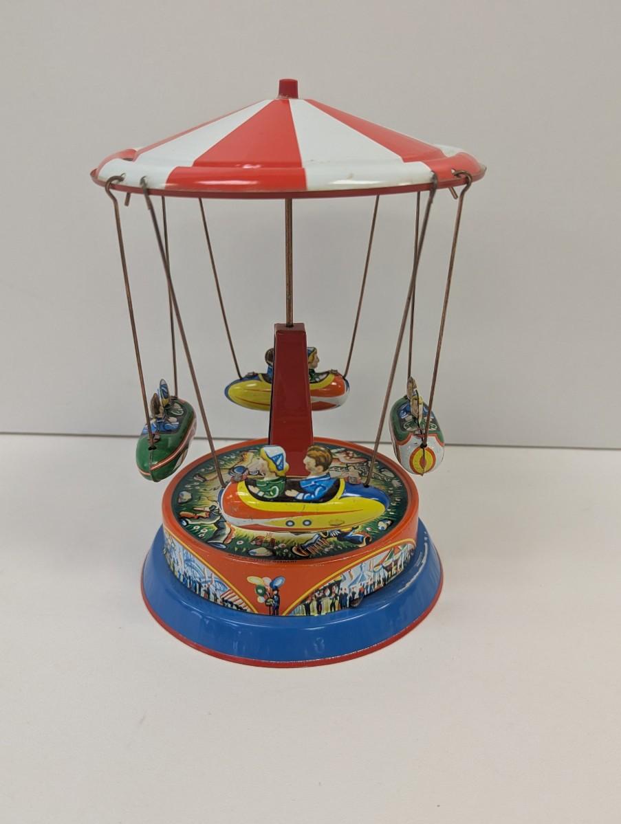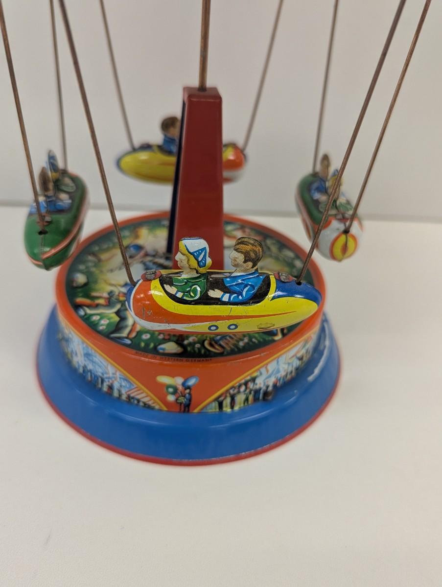 Vintage Tinplate Carousel Fairground Ride - Made In West Germany - Working Condition