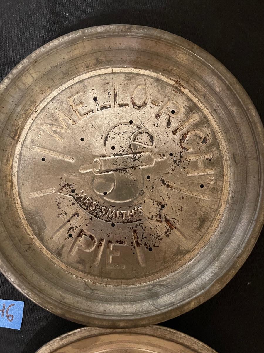 (4) Vintage Rustic Tins "Mello Rich Pie", Mrs. Smiths
