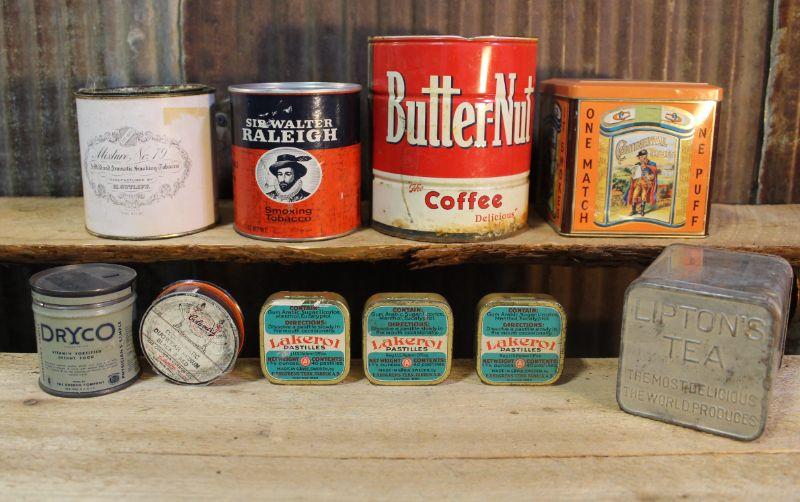 Vintage Tins - Coffee, Tobacco, and Kitchen - QTY 11