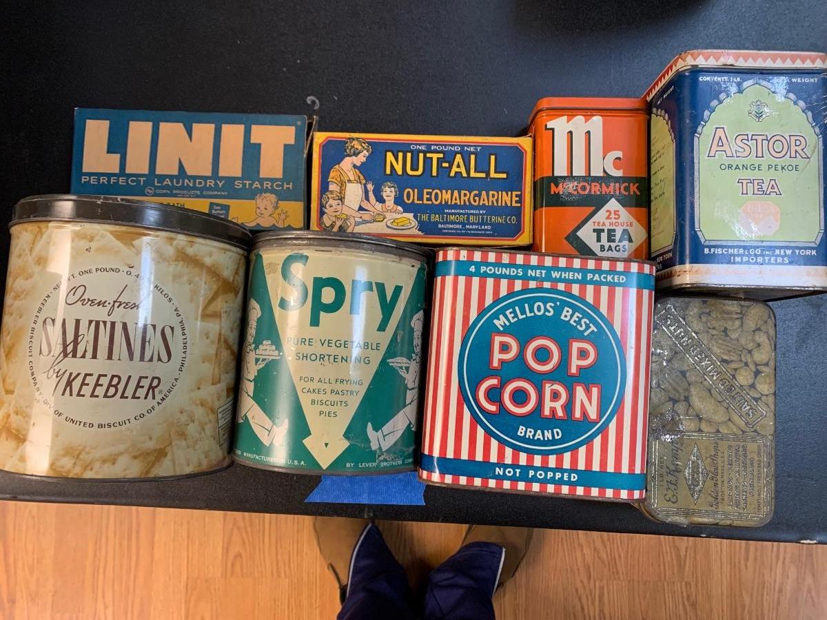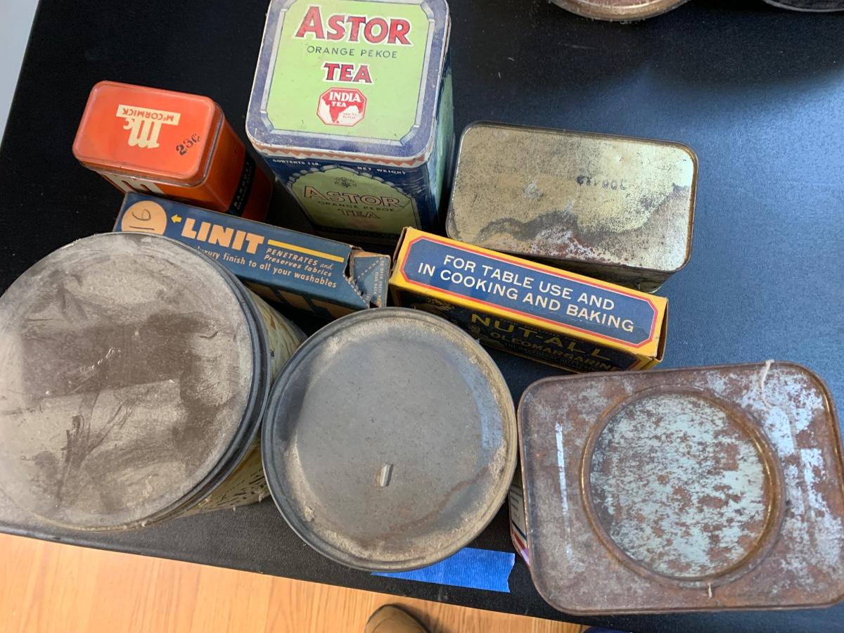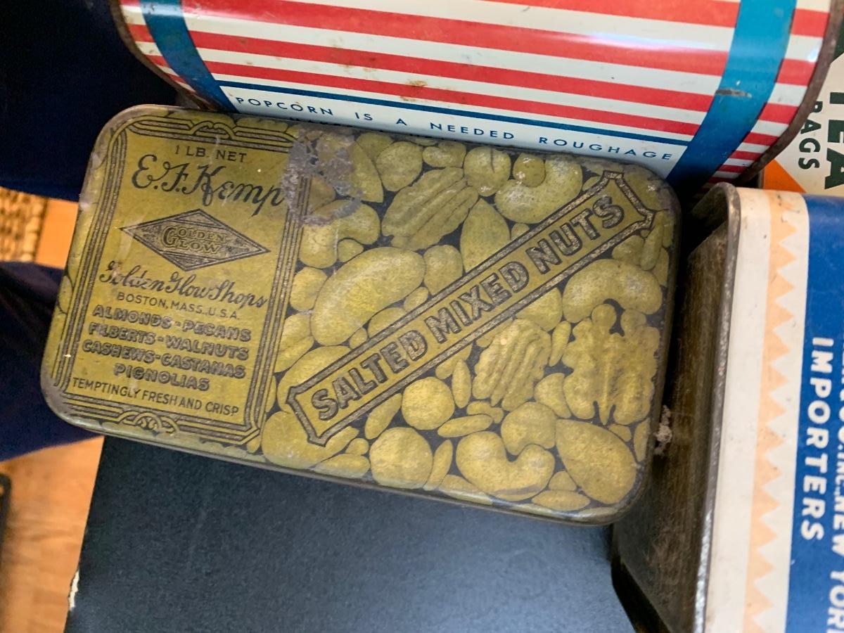 Vintage Tins Lot Saltines Kemp Nuts Astor Tea