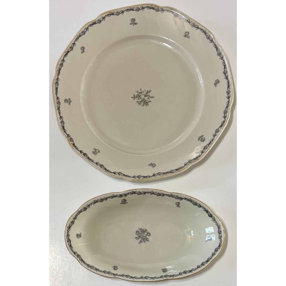 You get two dishes that are in good condition with minor surface wear. The plate has an approximately 10" diameter. The celery dish stands roughly 1.25" tall, is 8 5/8" long and 5 1/8" wide. Please see all pictures. Thank you for looking. As a reminder, if this is a lot, we do not break up lots. Also, all items are prepacked, so each item is sent individually. Any item that qualifies for media mail and weighs over one pound will be shipped via media mail. Otherwise, the item will be shipped USPS ground advantage, or UPS ground. Shipping for this item is $12.00. Items ship within two days after payment is received. Item SKU is OTH3208.
