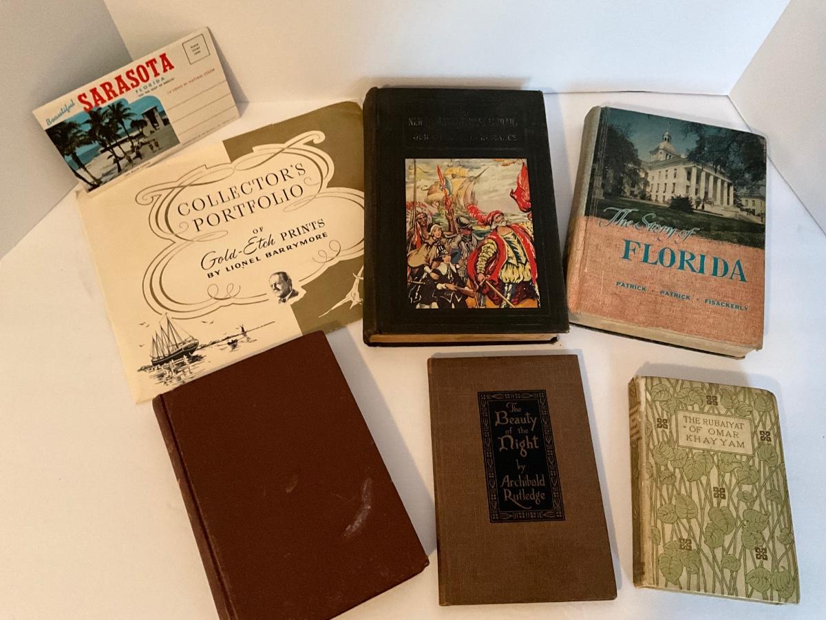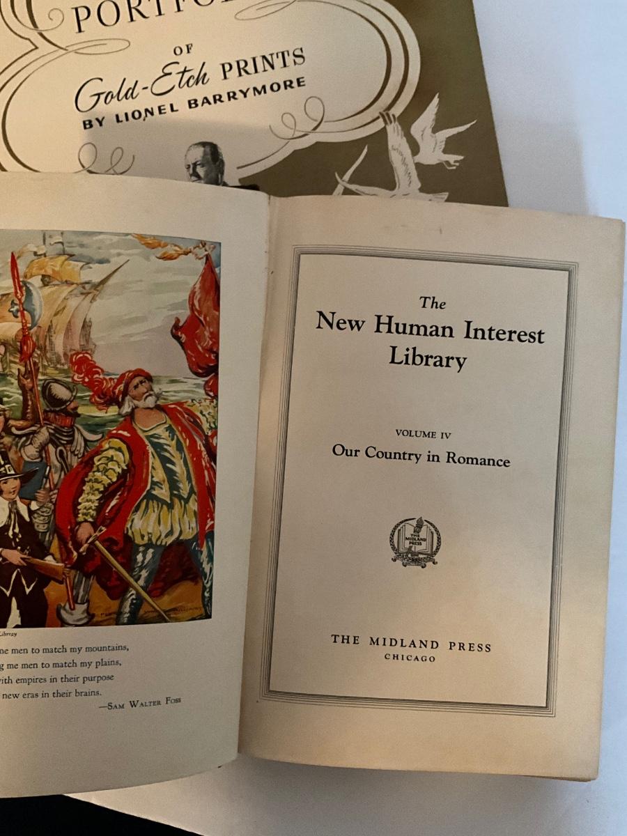 Vintage to Antique Book Lot Includes Gold Etched Prints by Lionell Barrymore