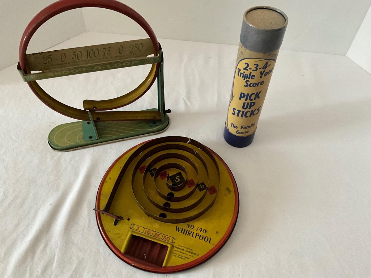 Vintage to Antique Game Lot, Shoot a Loop, Whirlpool, Pick Up Sticks As Pictured