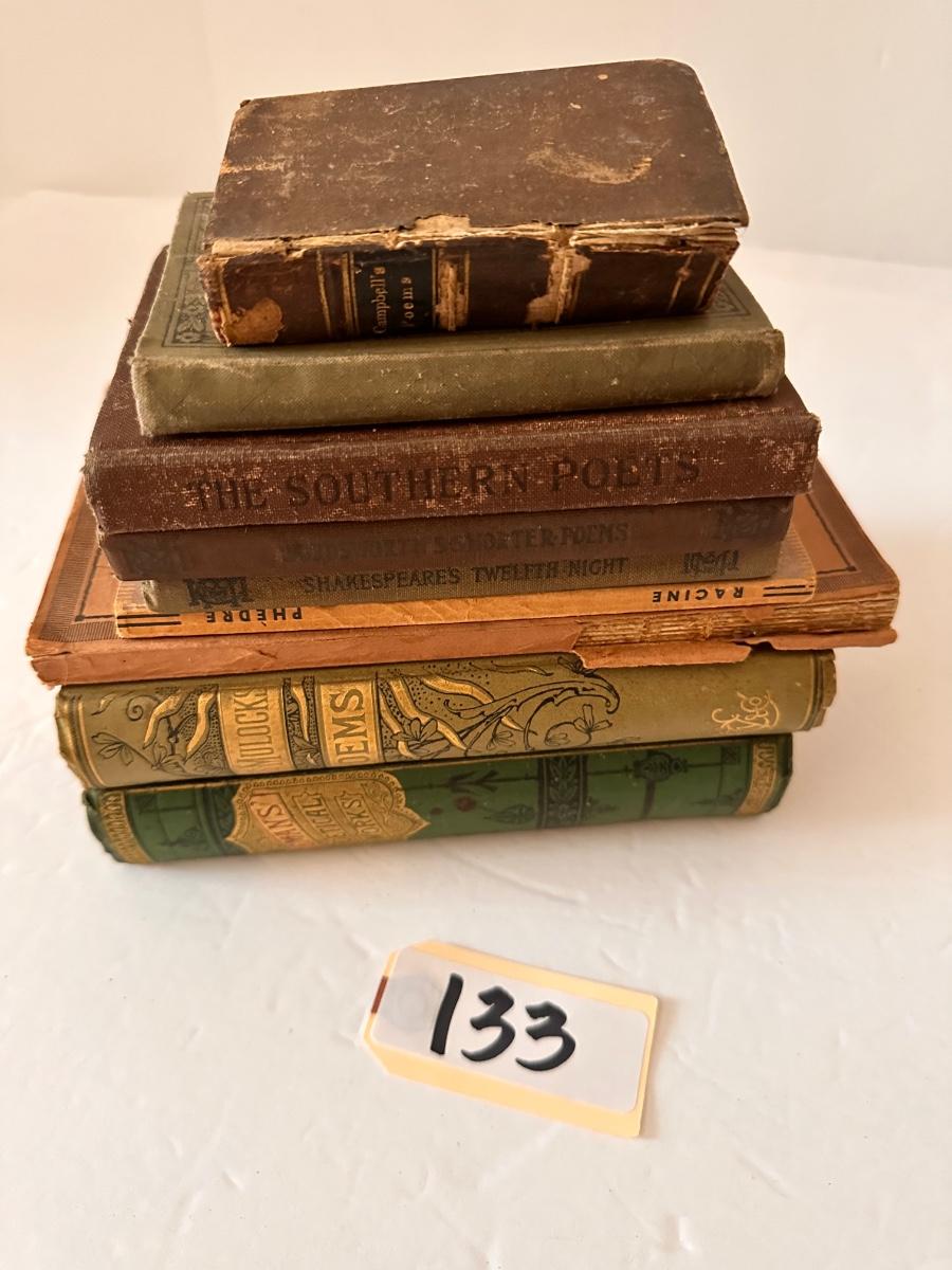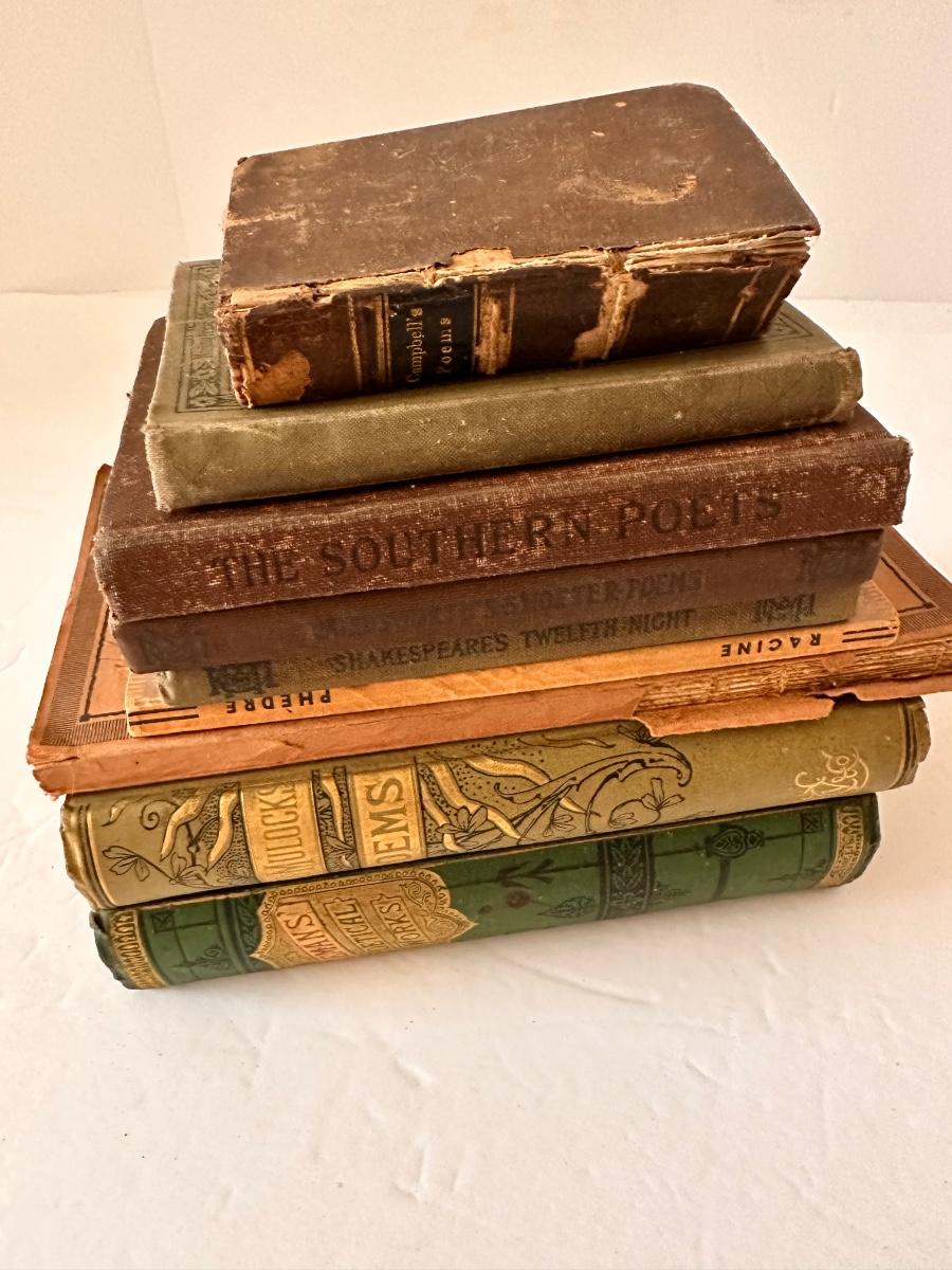 Vintage to Antique Poetry Book Lot 1841, 1914 Wordsworth, 1913 Shakespeare Twelth Night, Racine Phedre Tragedie 1941, Miss Moluck Poems, Hemans 1892, Some books in poor conditions SEE PICTURES FOR DETAILS