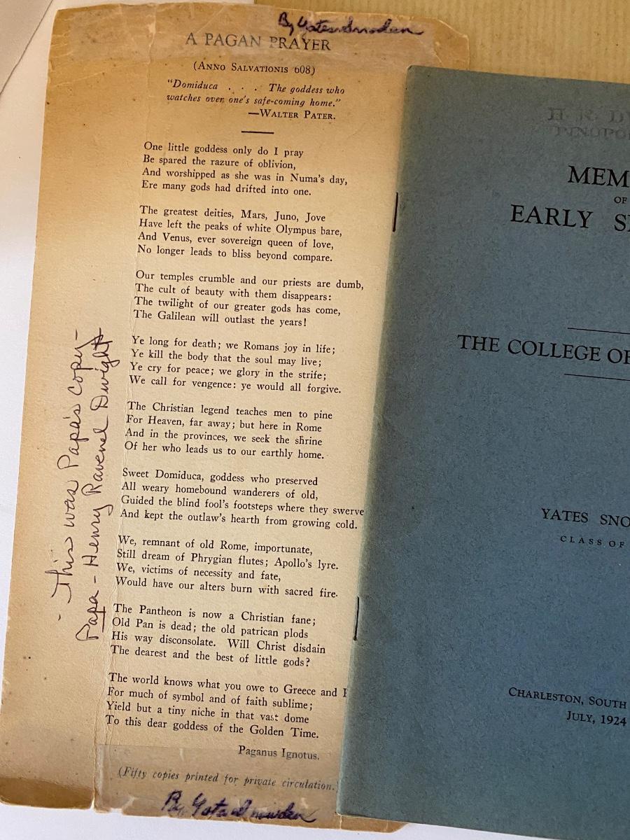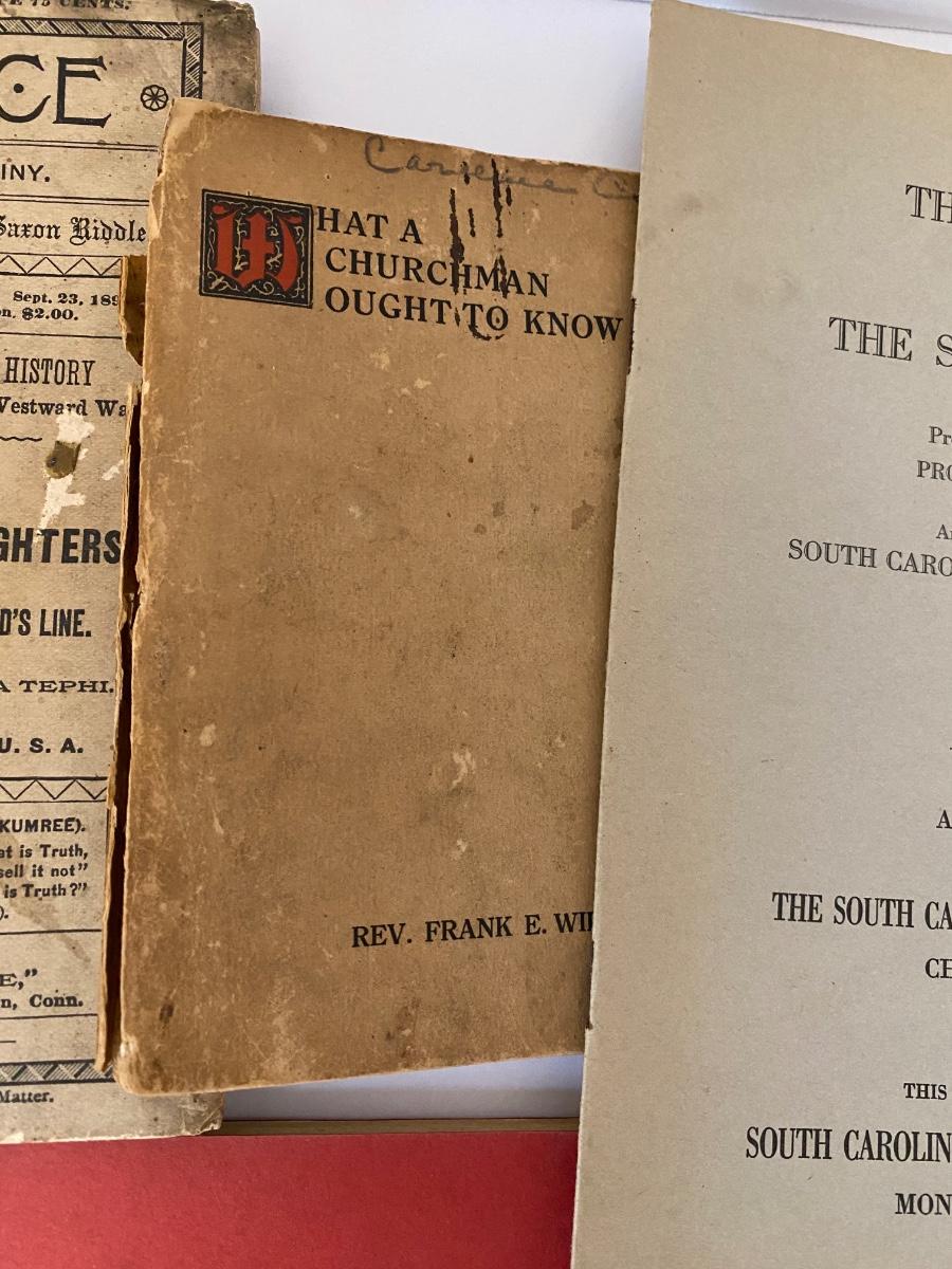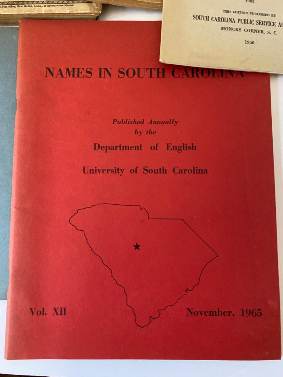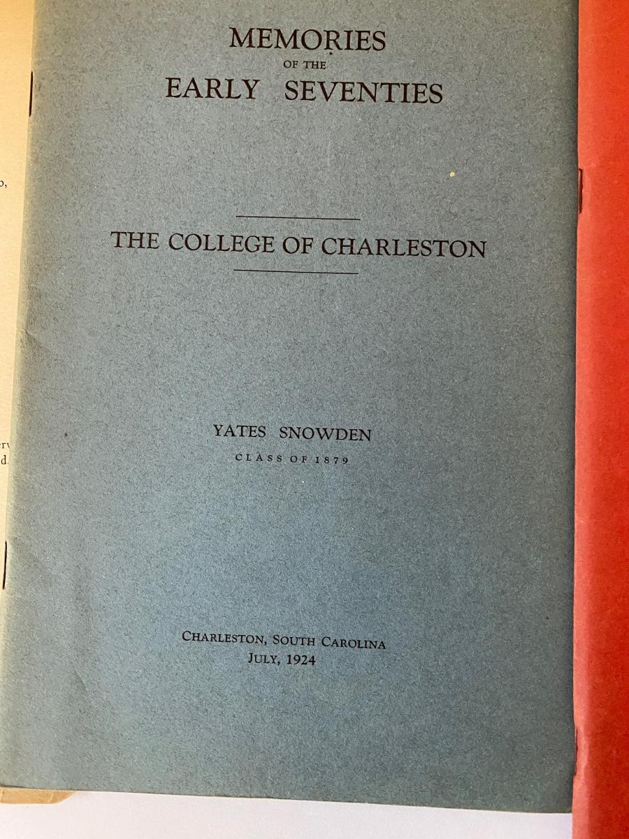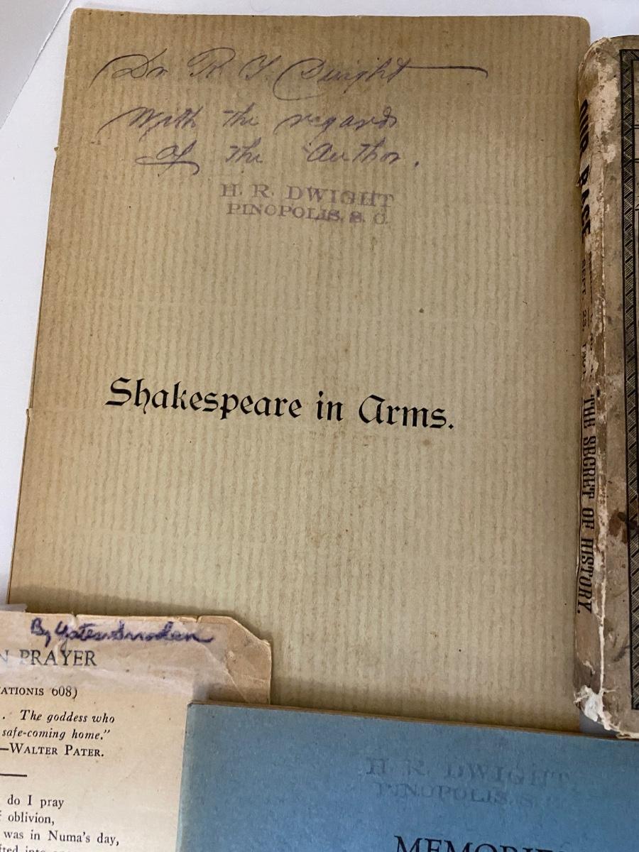 Vintage to Antique Printed Publications to include: History of Sante Canal (1950), A Church Man ought to know (1921), Our Race its origin and its Destiny (1891), Memories of the early 70's (College of Charleston) (1924 AUTHOR SIGNED), Shakespeare in Arms an address Col John P Thomas at Clemson College (1897), Names in SC (1965) as pictured