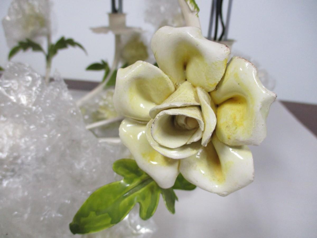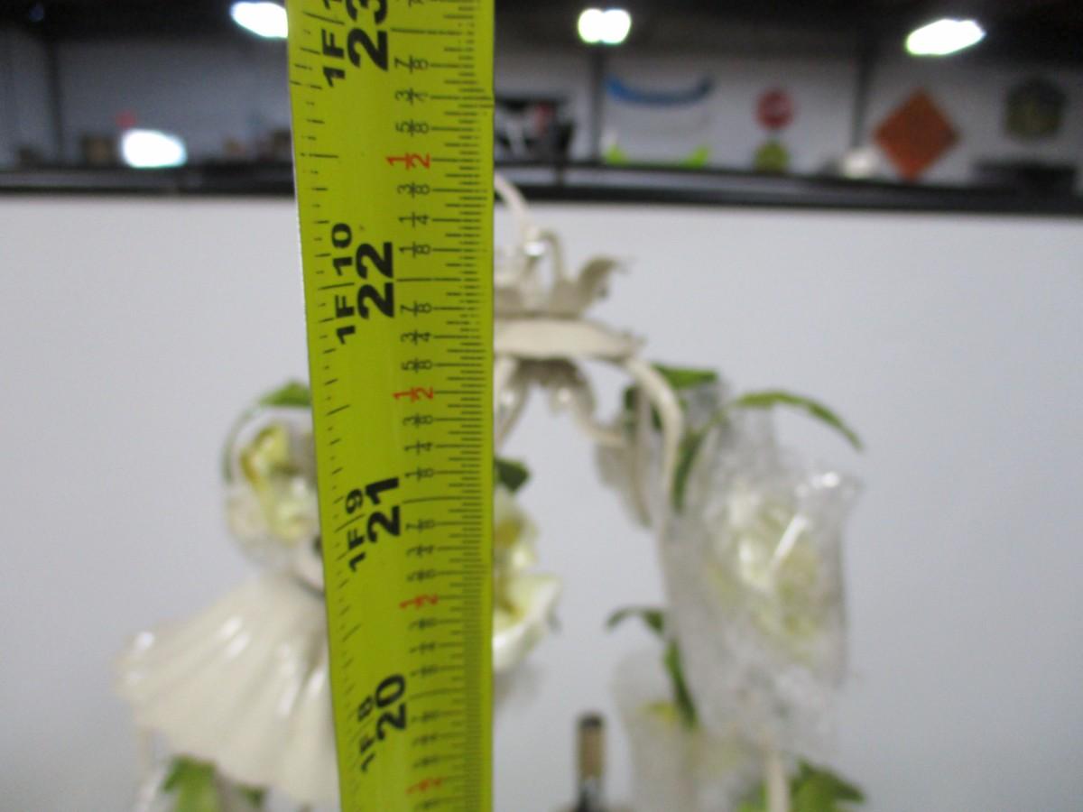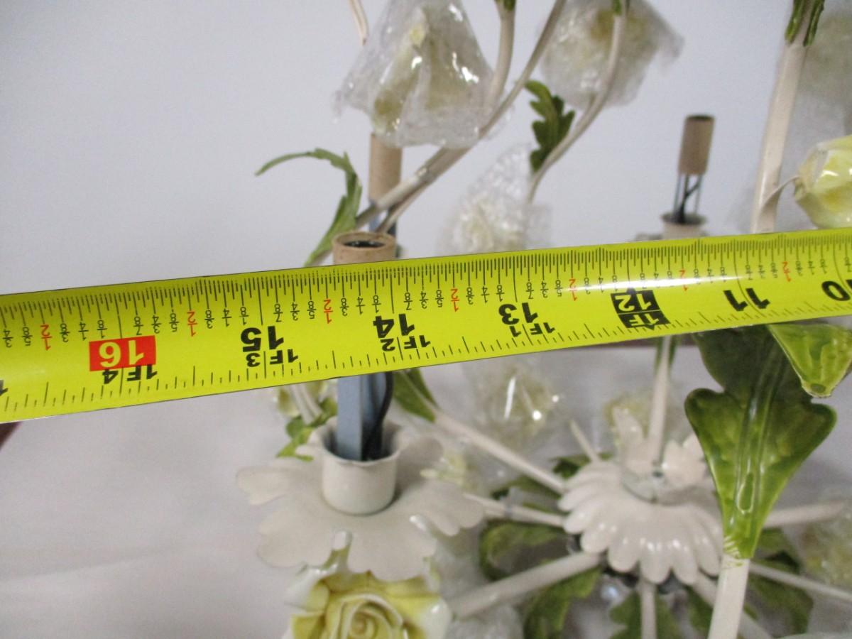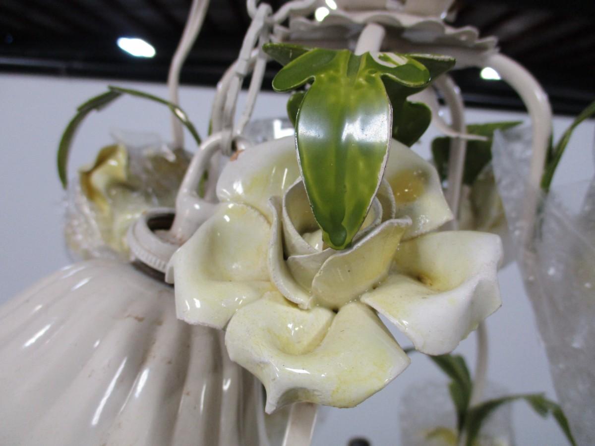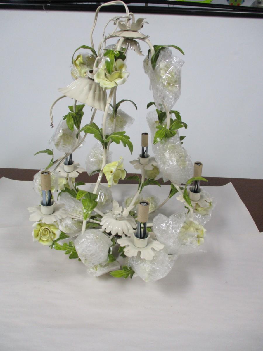 Vintage Tole Birdcage Chandelier Yellow/White Porcelain Roses