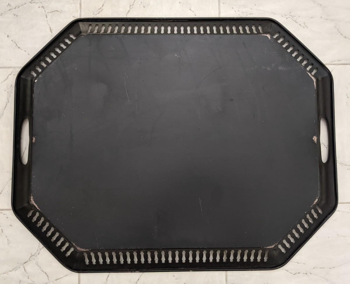 Vintage Tole painted metal tray Nice reticulated rim well painted flowers 20.25" x 16"