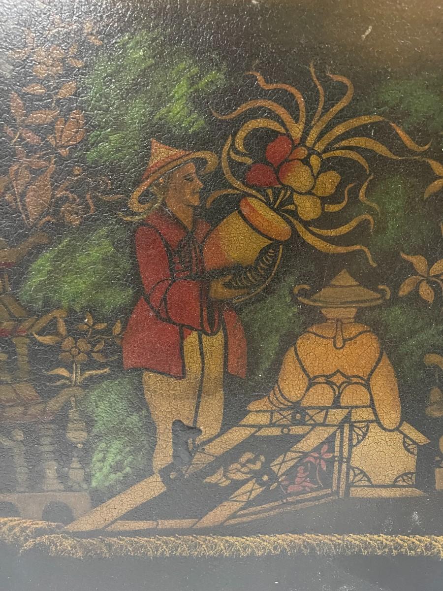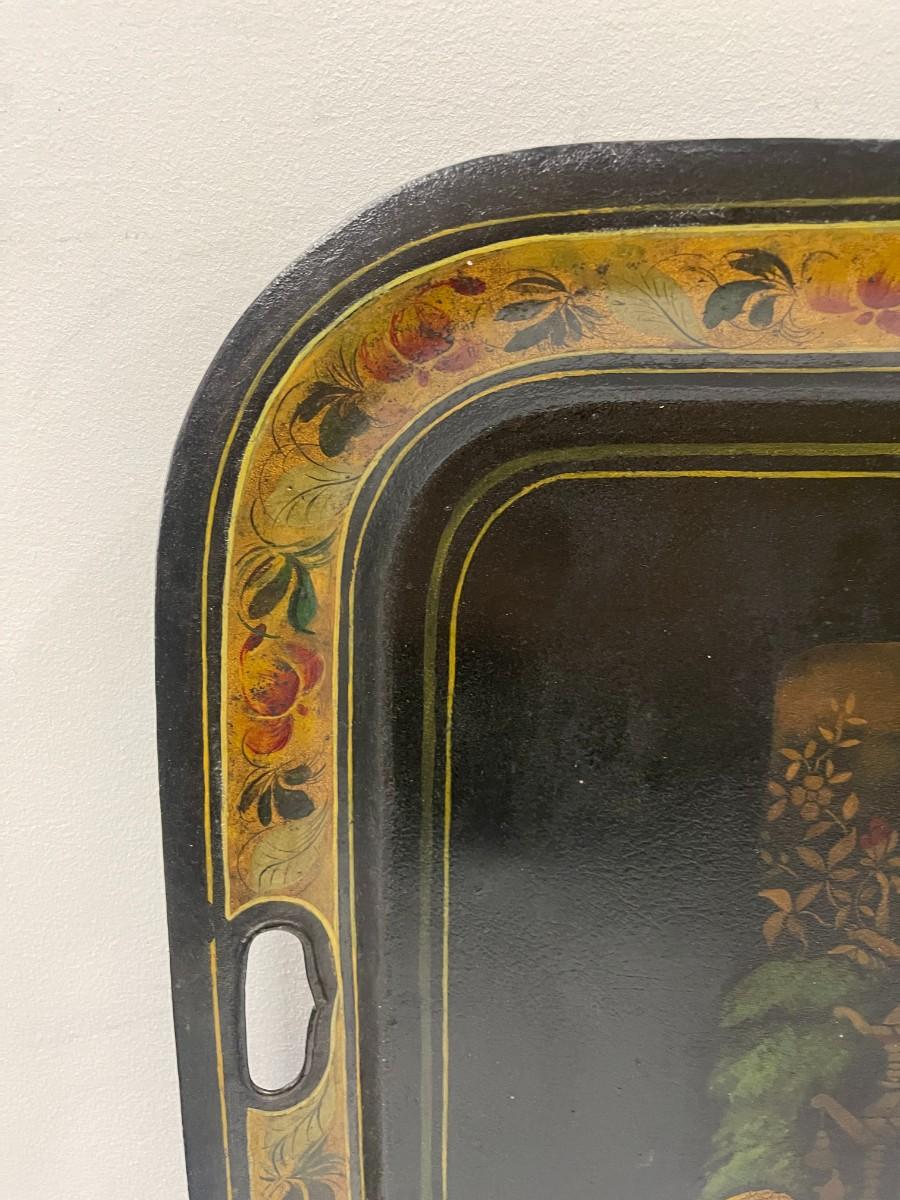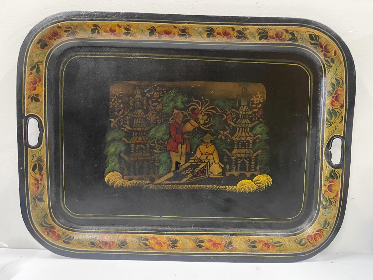 Vintage Tole Tray with Asian Theme