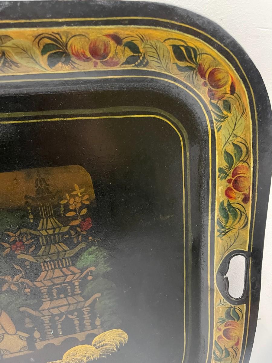 Vintage Tole Tray with Asian Theme