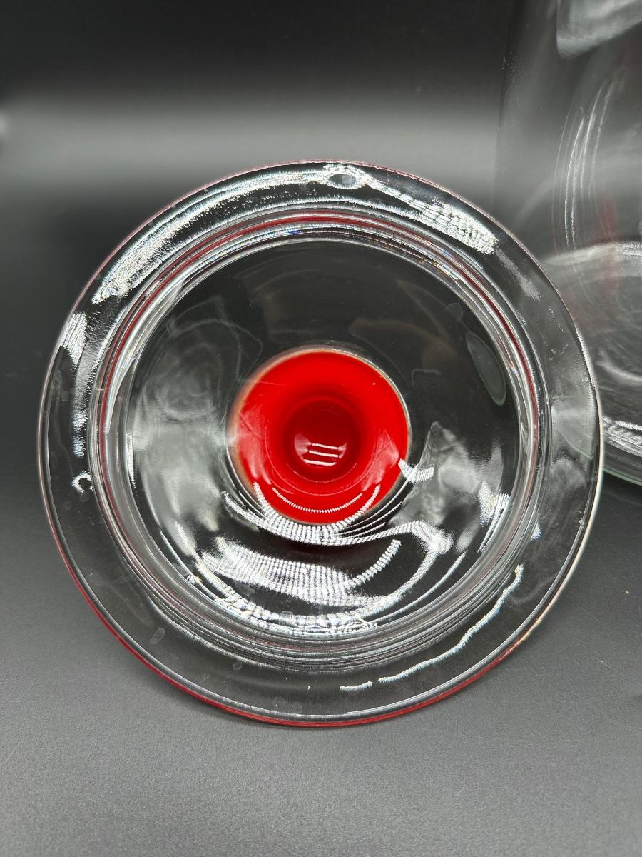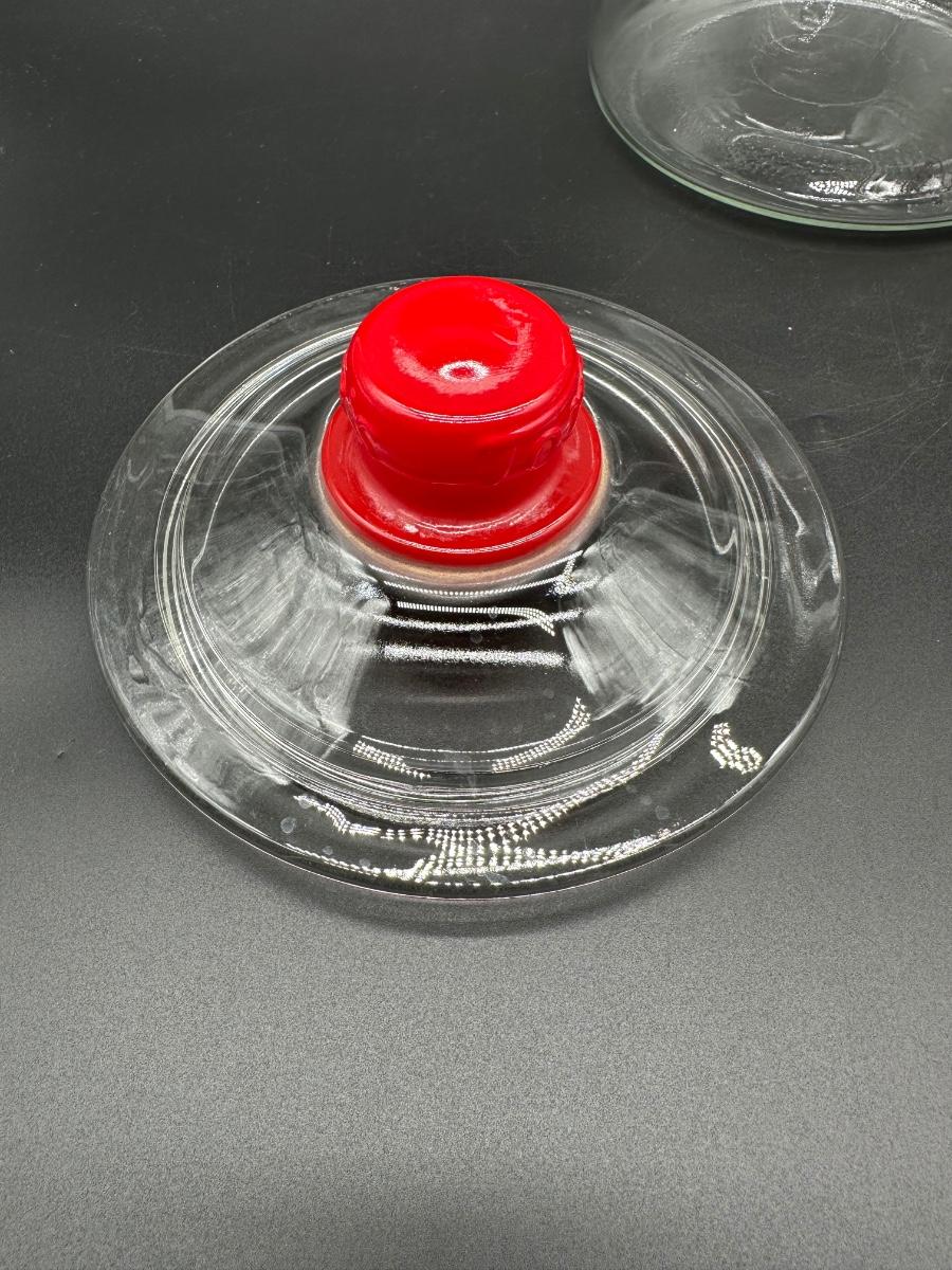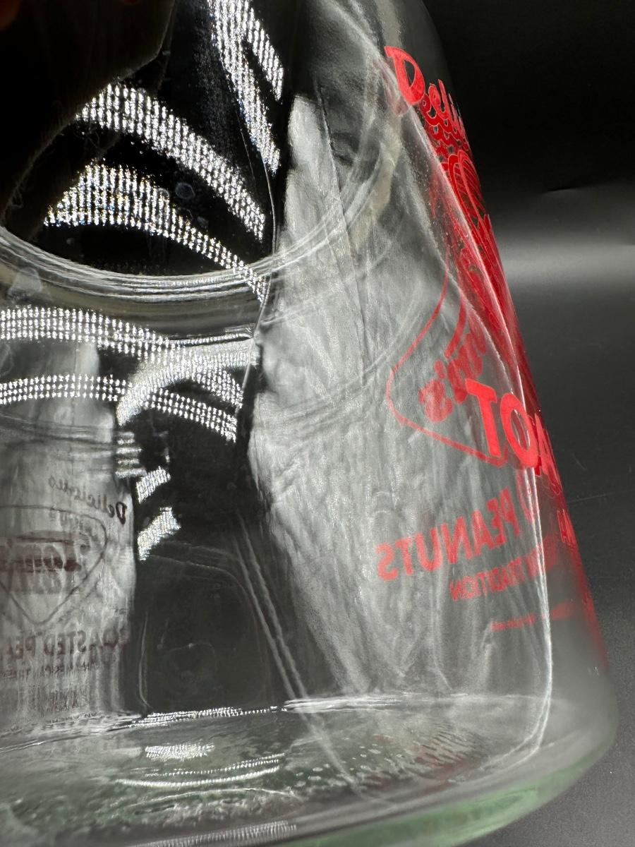 Vintage original Tom’s Toasted Peanuts glass store display jar with original red glass lid.
