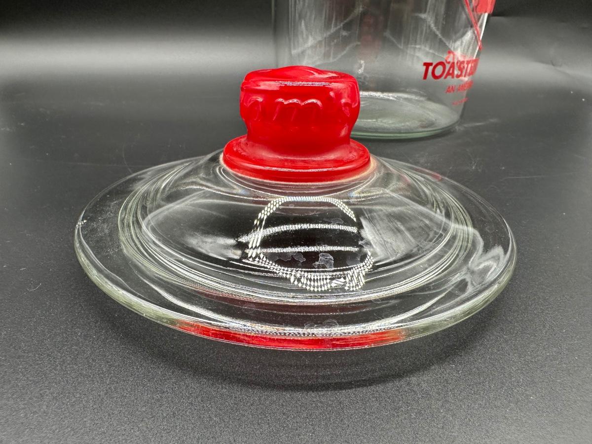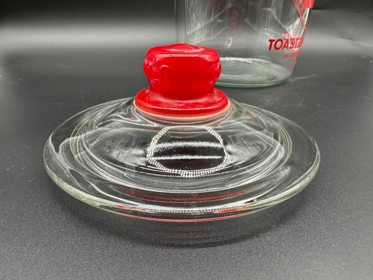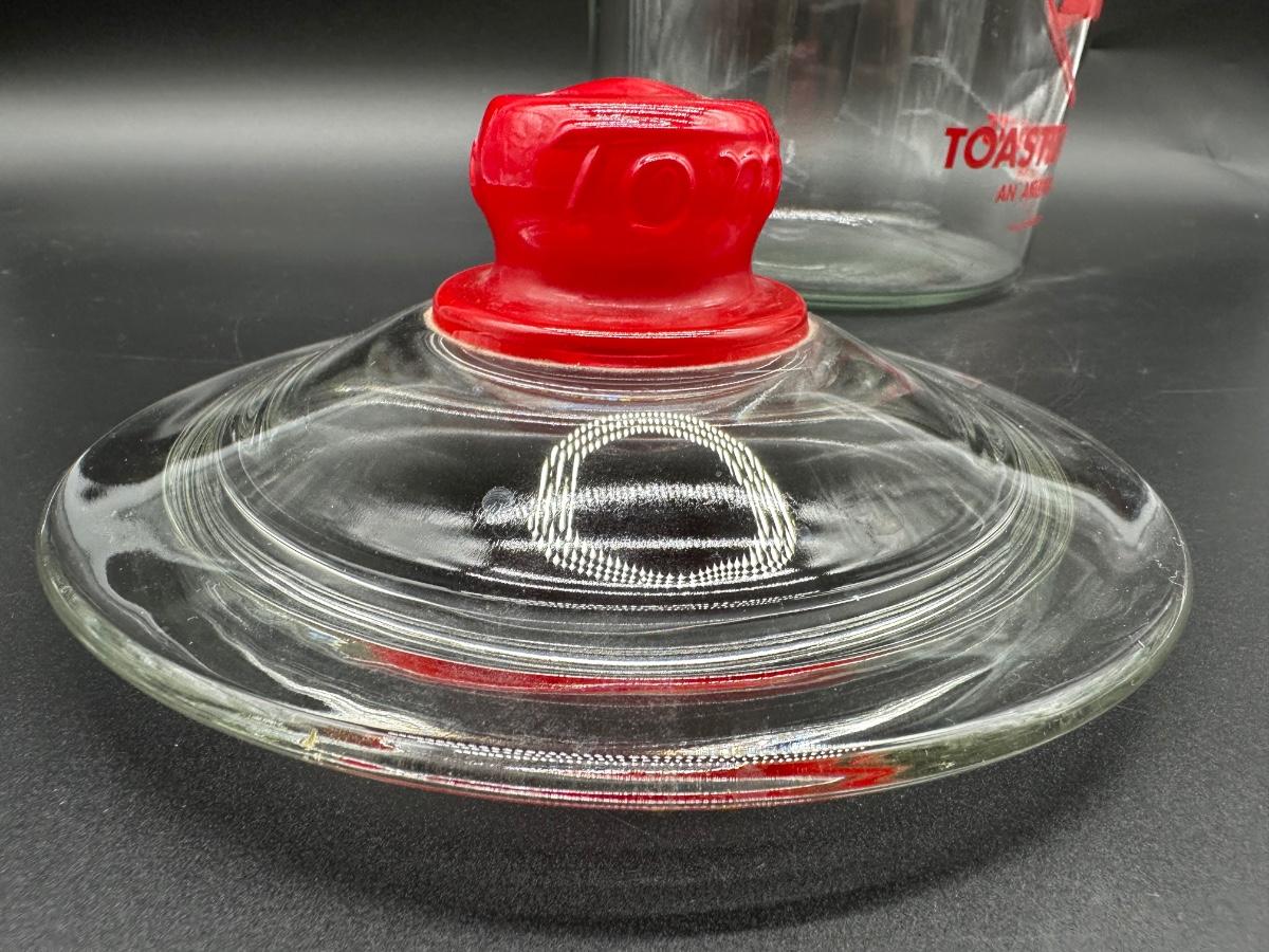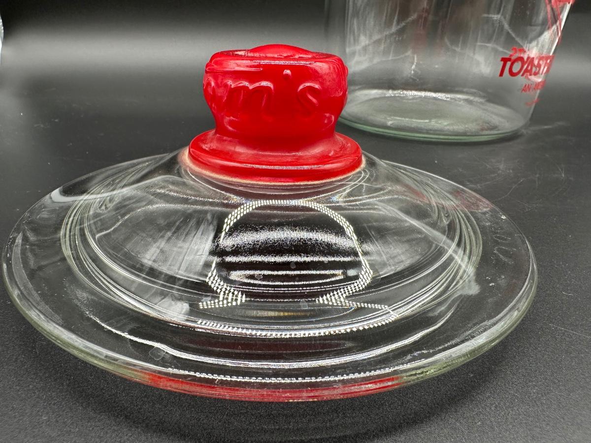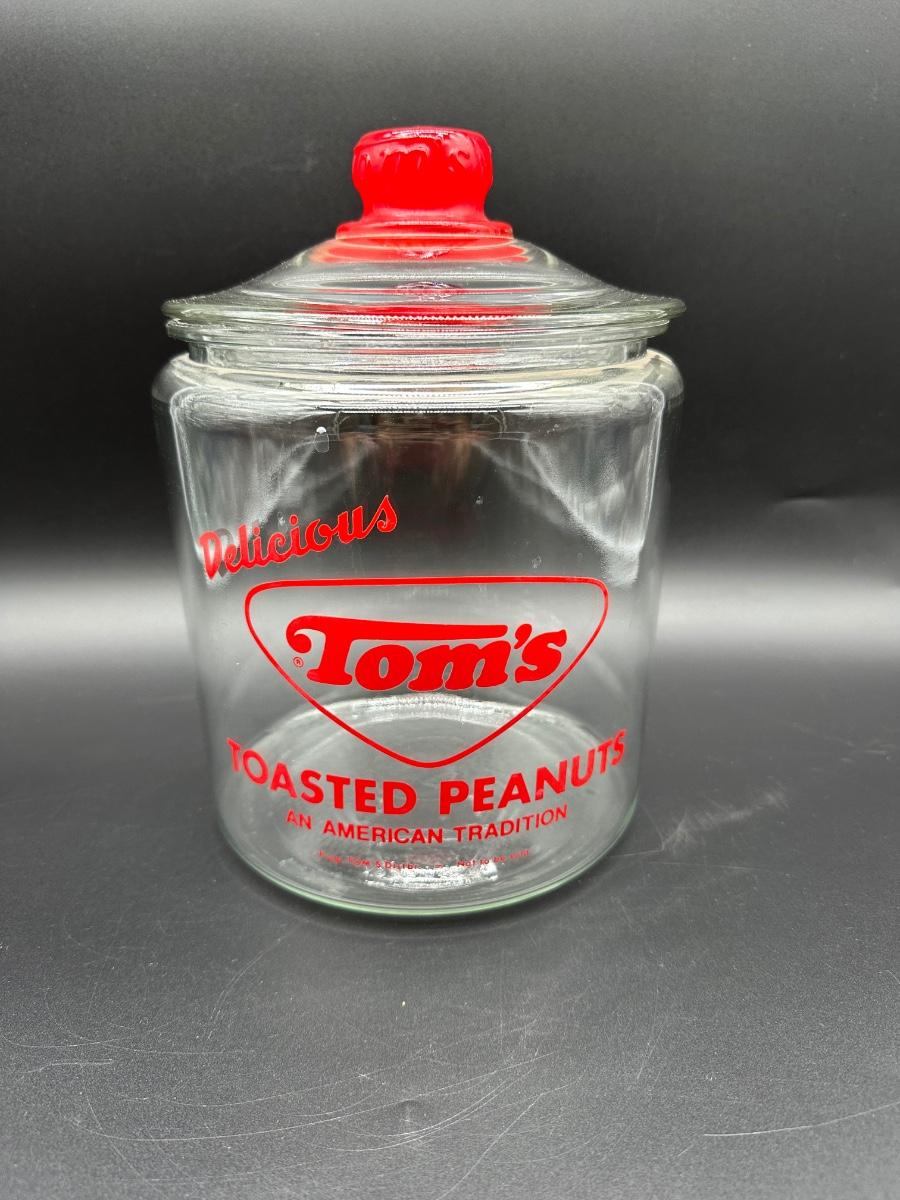 Vintage Tom’s Toasted Peanuts Glass Store Display Jar w/ Original Red Lid – Advertising (see description)