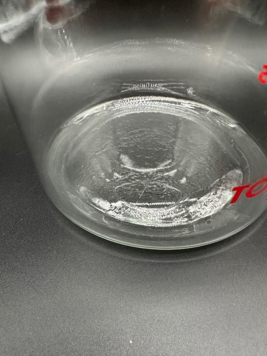This jar has a hairline crack that runs from the bottom up the side about 4-6”. Jar seems to be solid but sold as is. (Pictured)