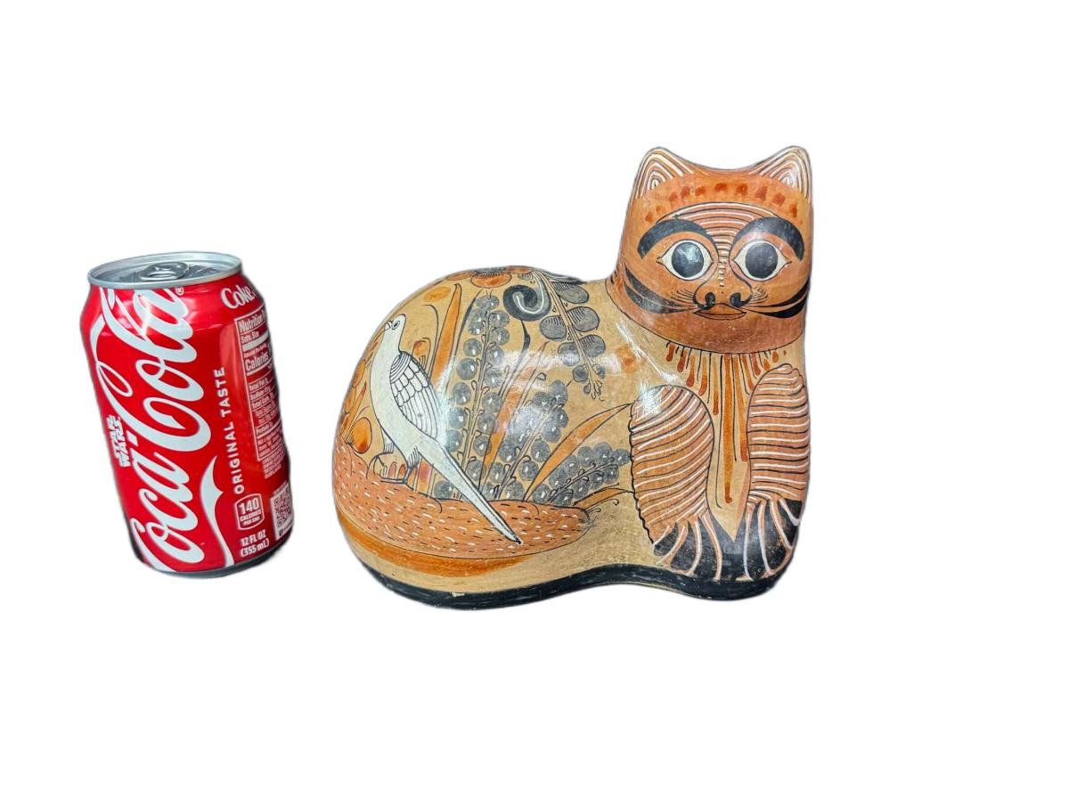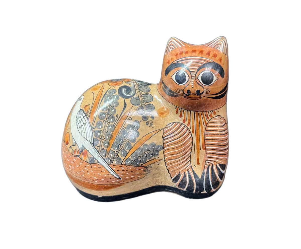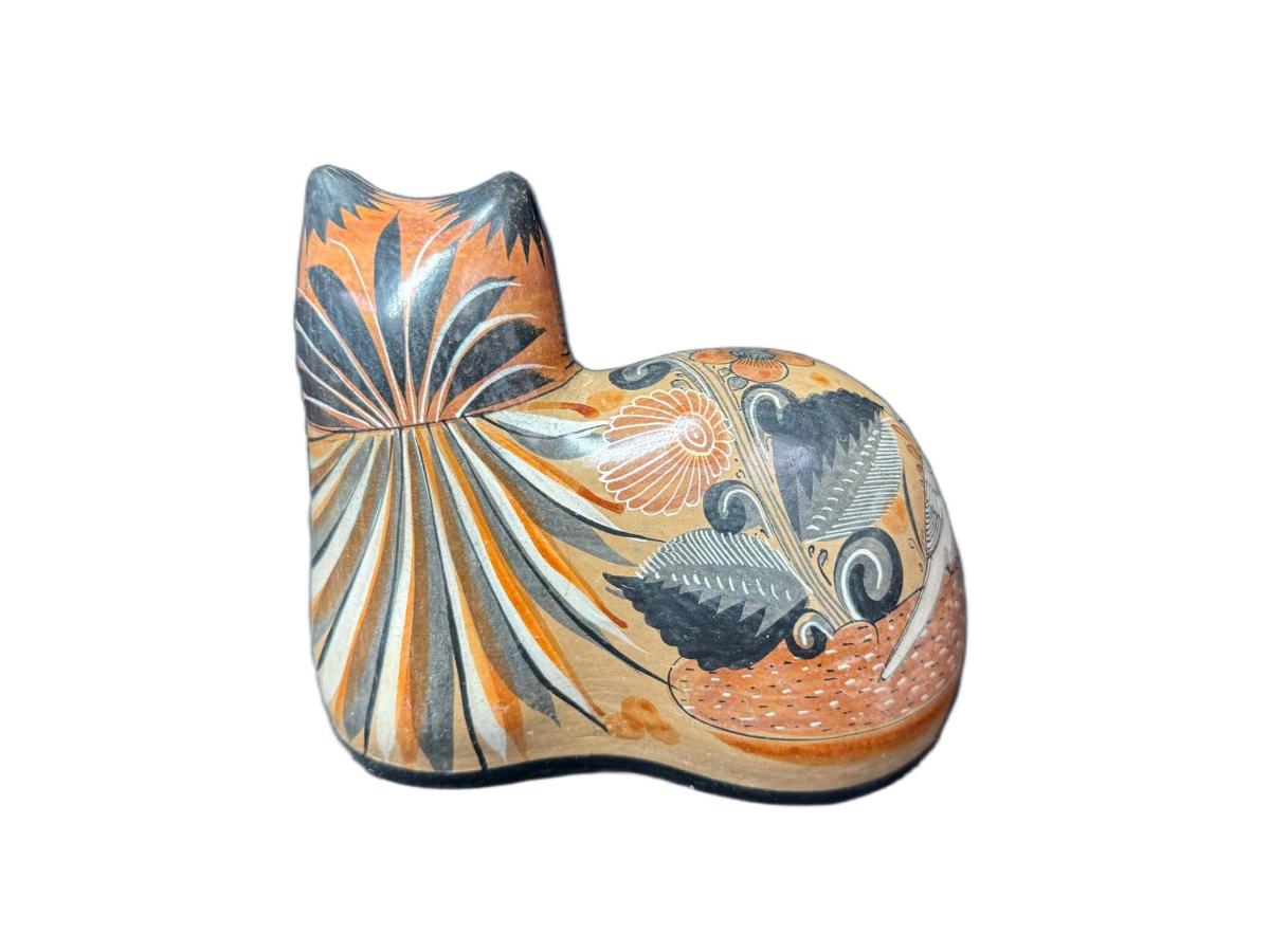 Vintage Tonala Mexico Folk Art Pottery Reclining Cat Figure