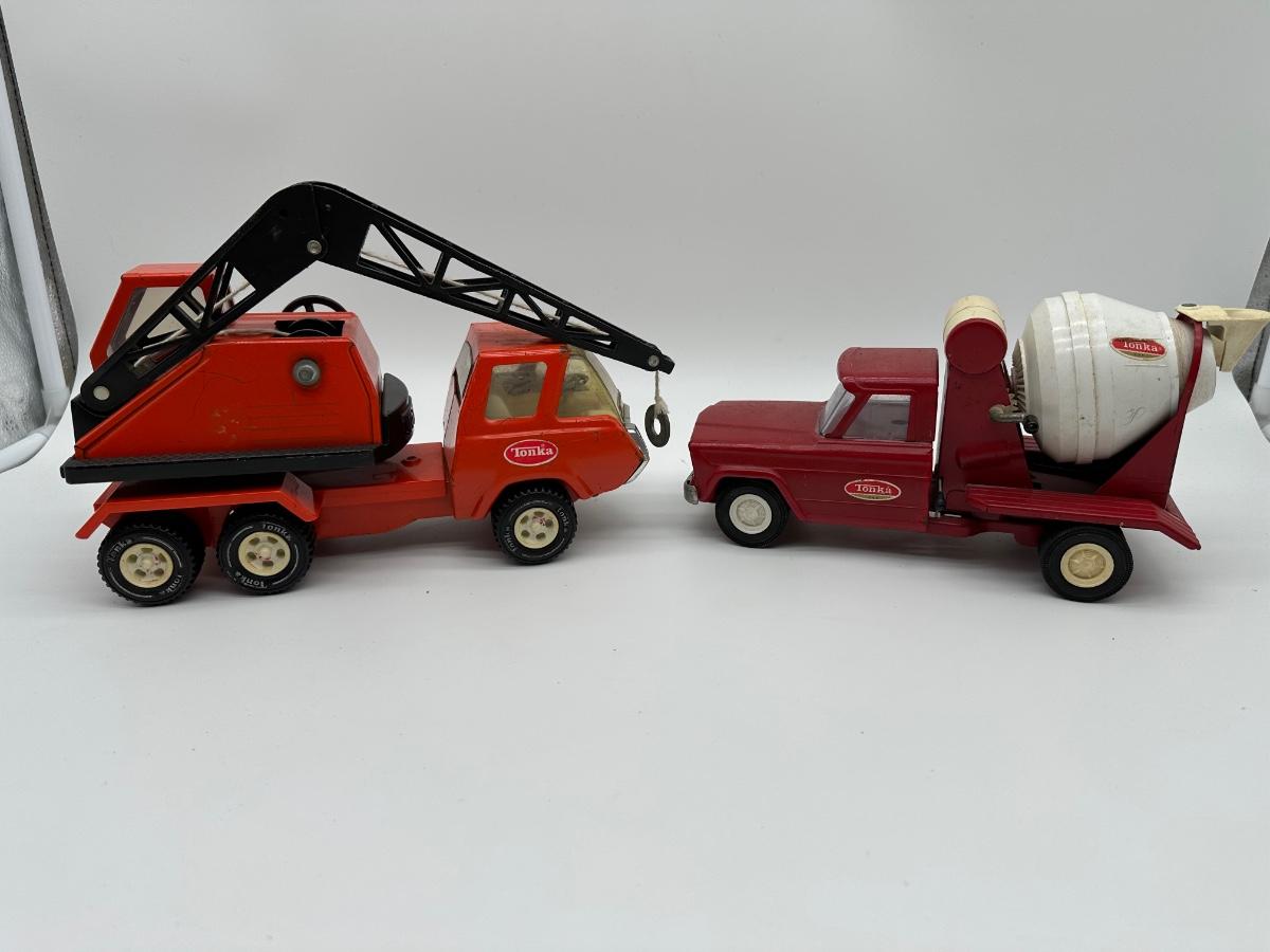 Vintage Tonka Pressed Steel Construction Trucks – Crane Truck & Cement Mixer