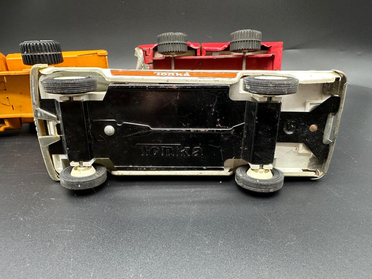 Lot of three vintage Tonka toy vehicles, mid-to-late 20th century era. Includes: