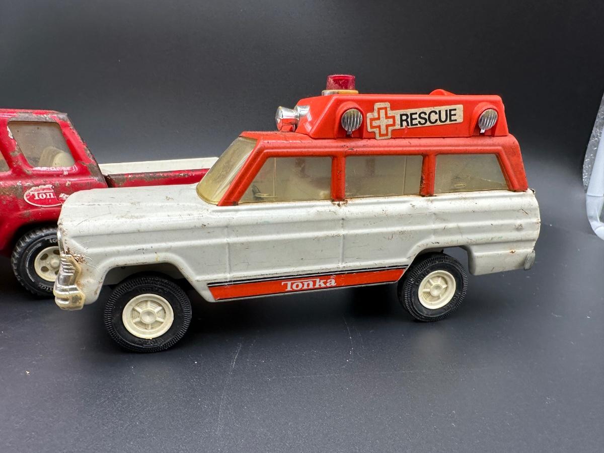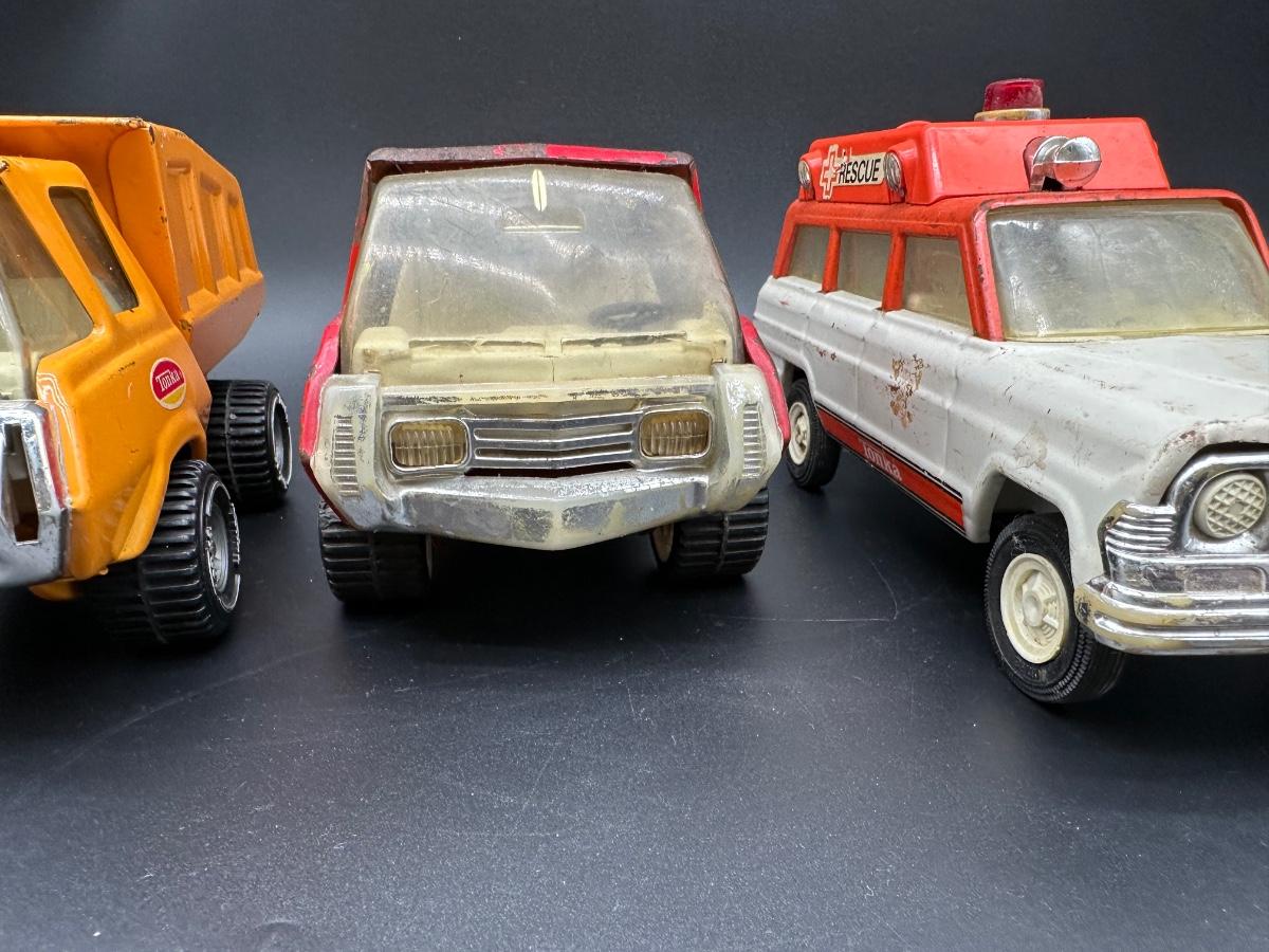 Vintage Tonka Toys Lot – Dump Truck, Rescue Vehicle, Utility Truck