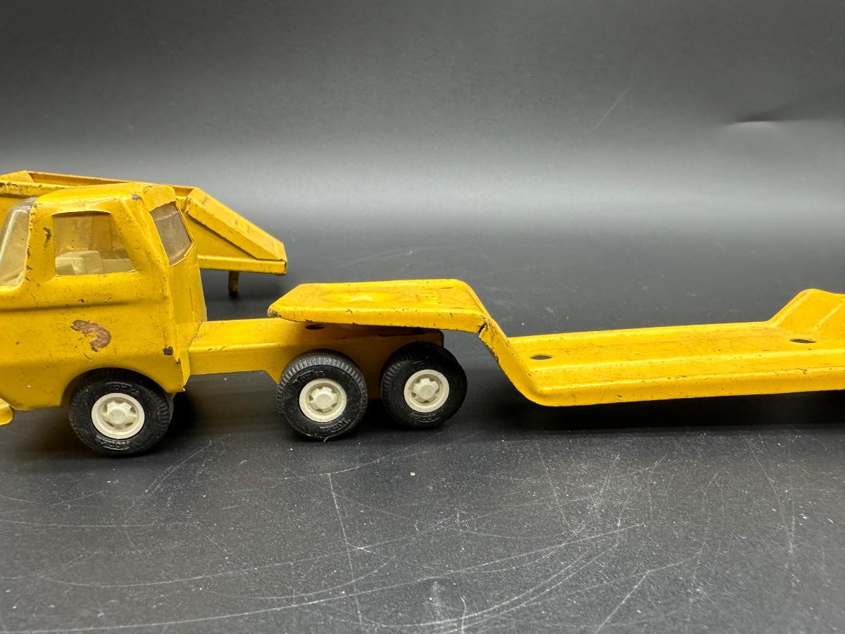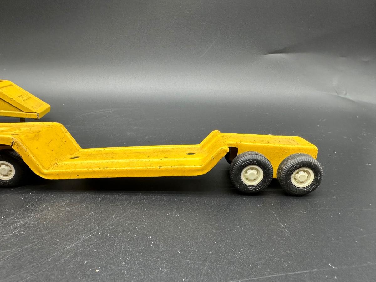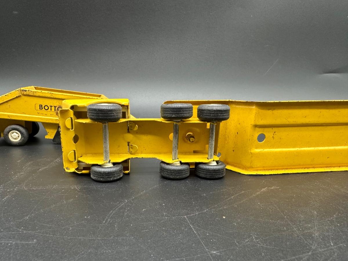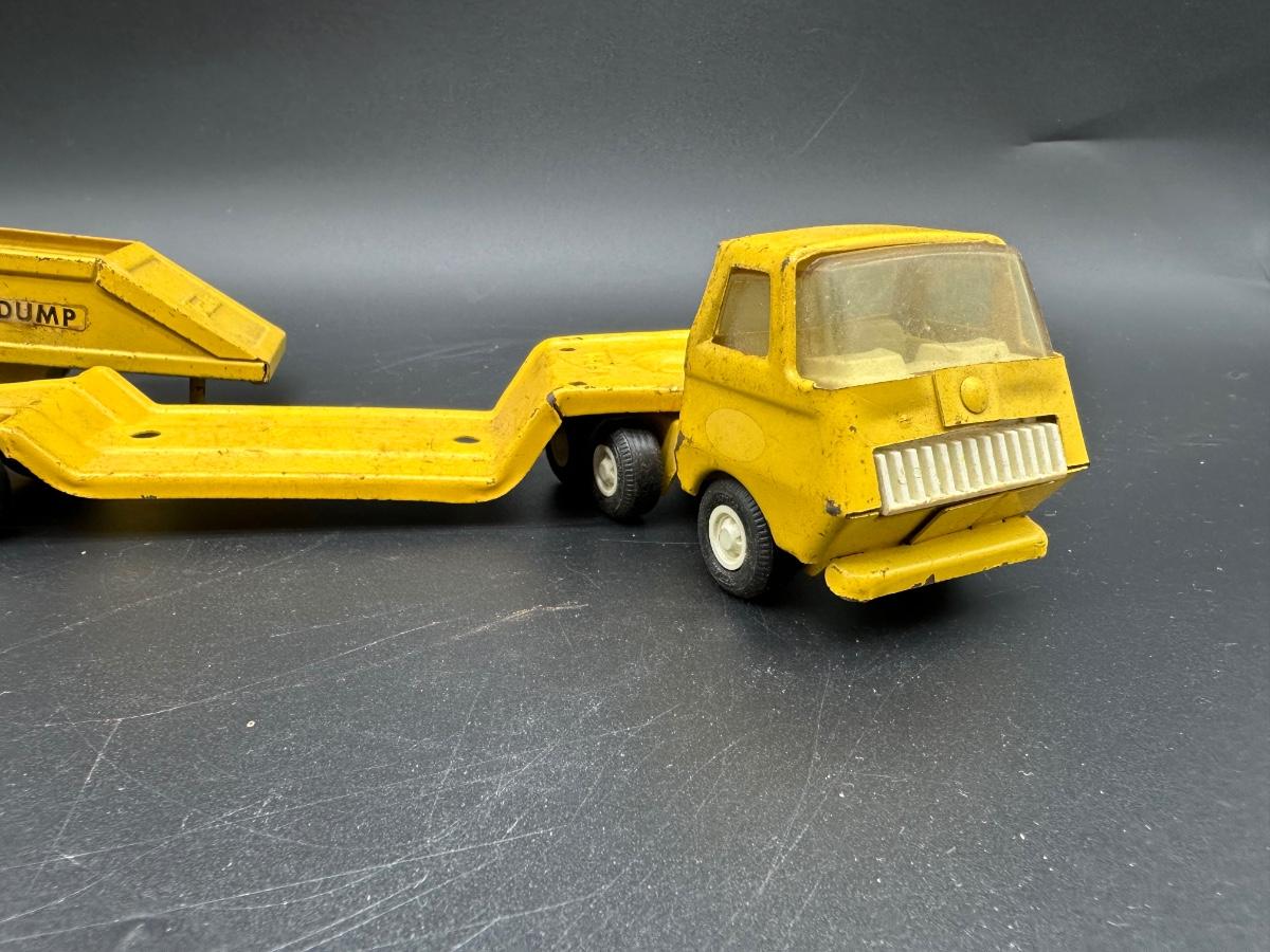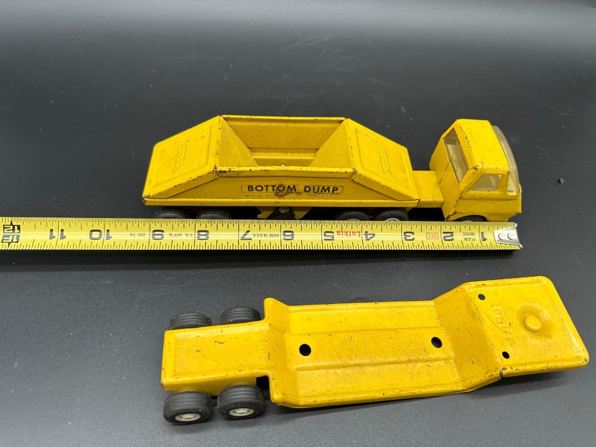 Vintage Tonka Yellow Bottom Dump Truck & Lowboy Trailer – Pressed Steel – 1970s
