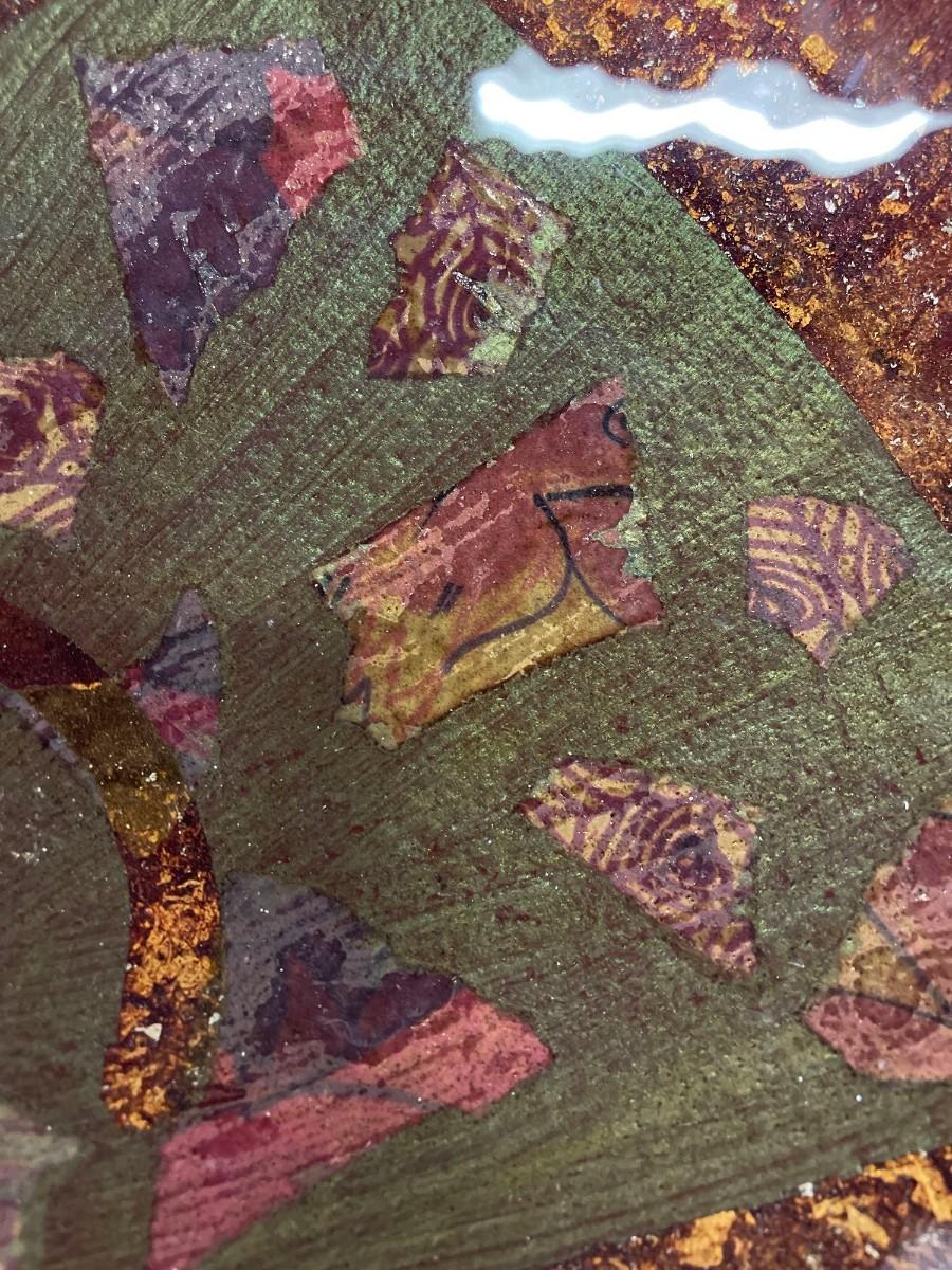<p>Vintage Tony Evan’s Raku Pottery, Signed. 15” x 16”. Excellent condition. </p>
