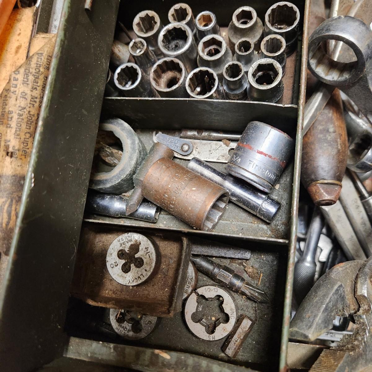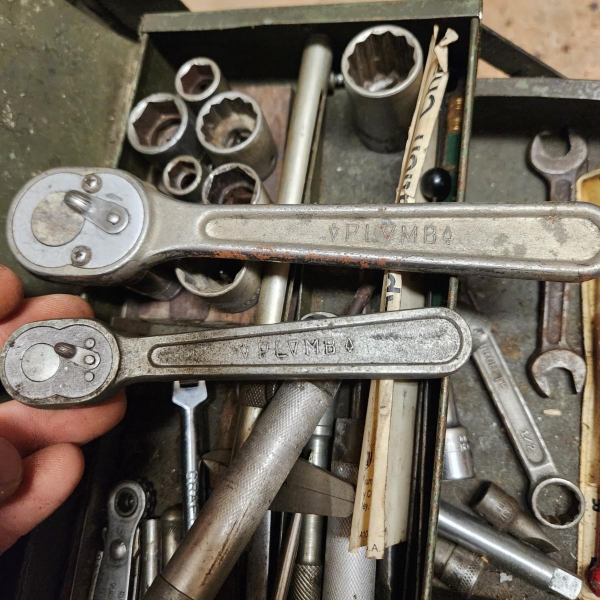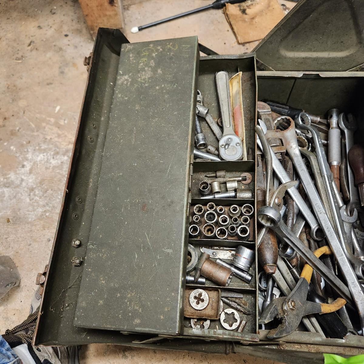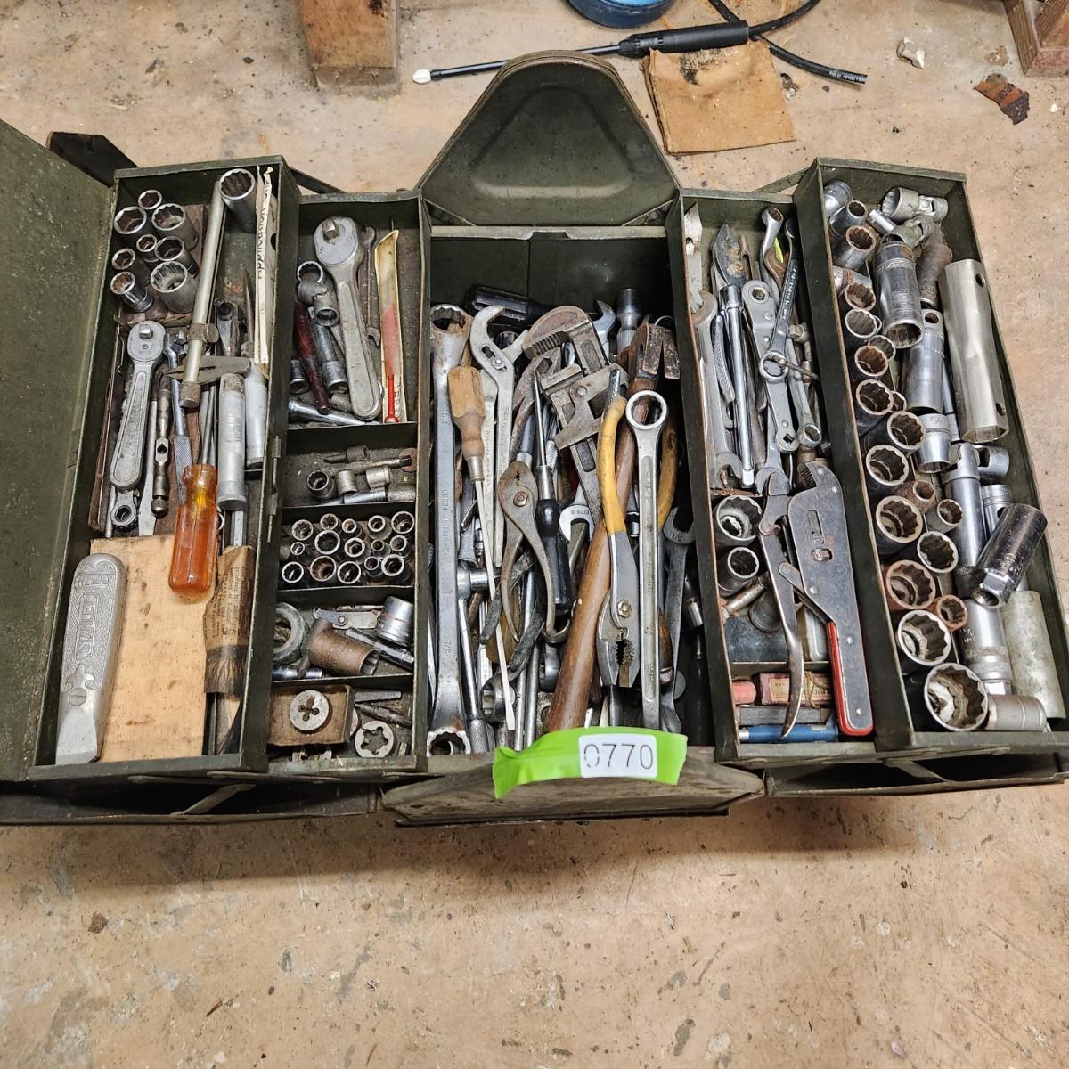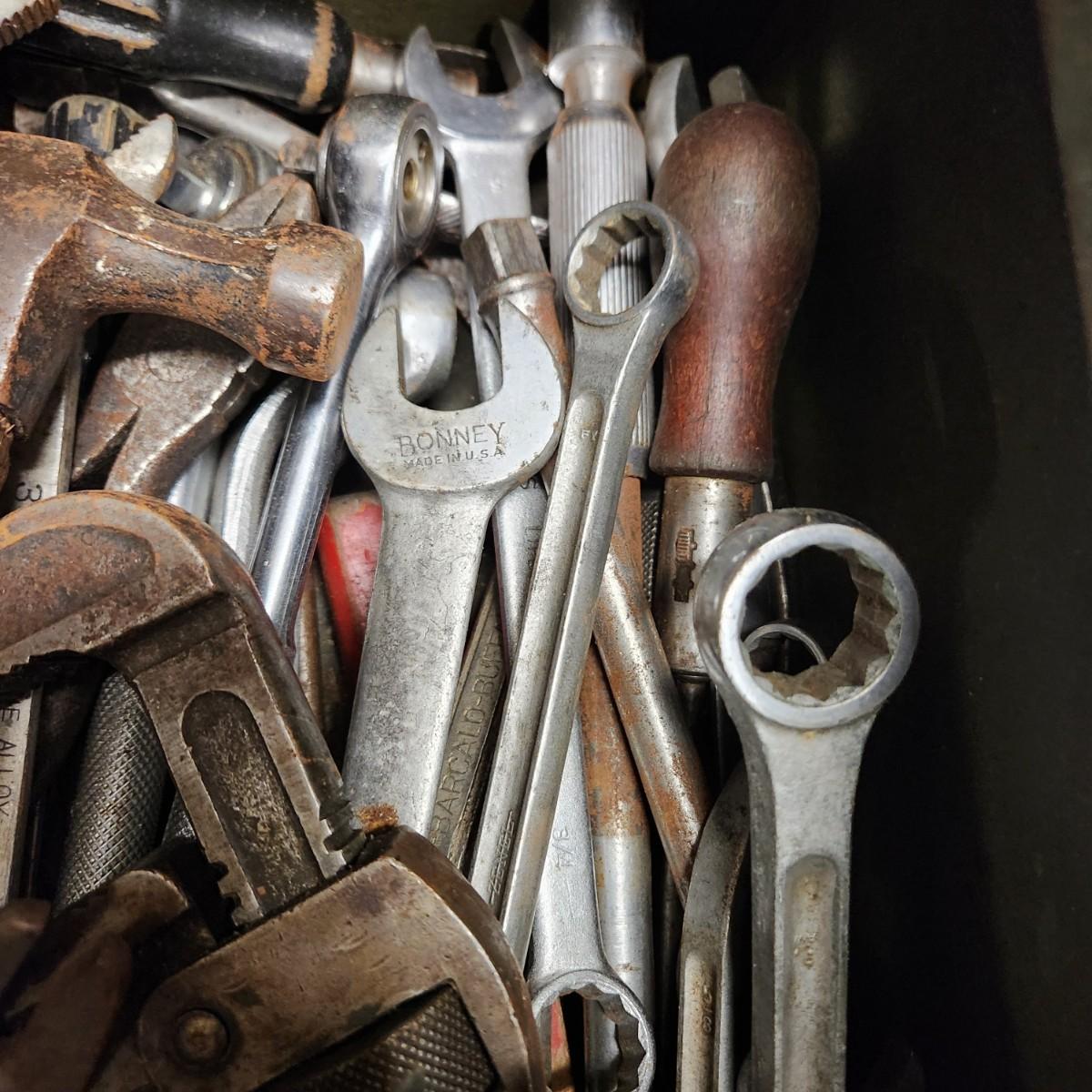 Vintage Tool Box on Casters Loaded Bonney Craftsman Plumb Stanley Billings and others