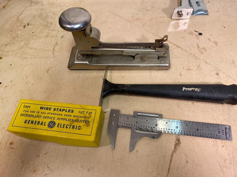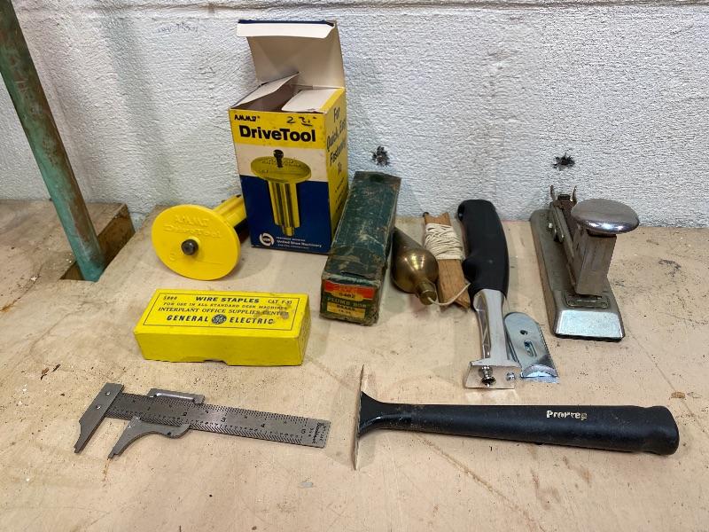 Vintage Tool Lot Plumb Bob Blackhawk USM Drive Tool Stapler GE Staples