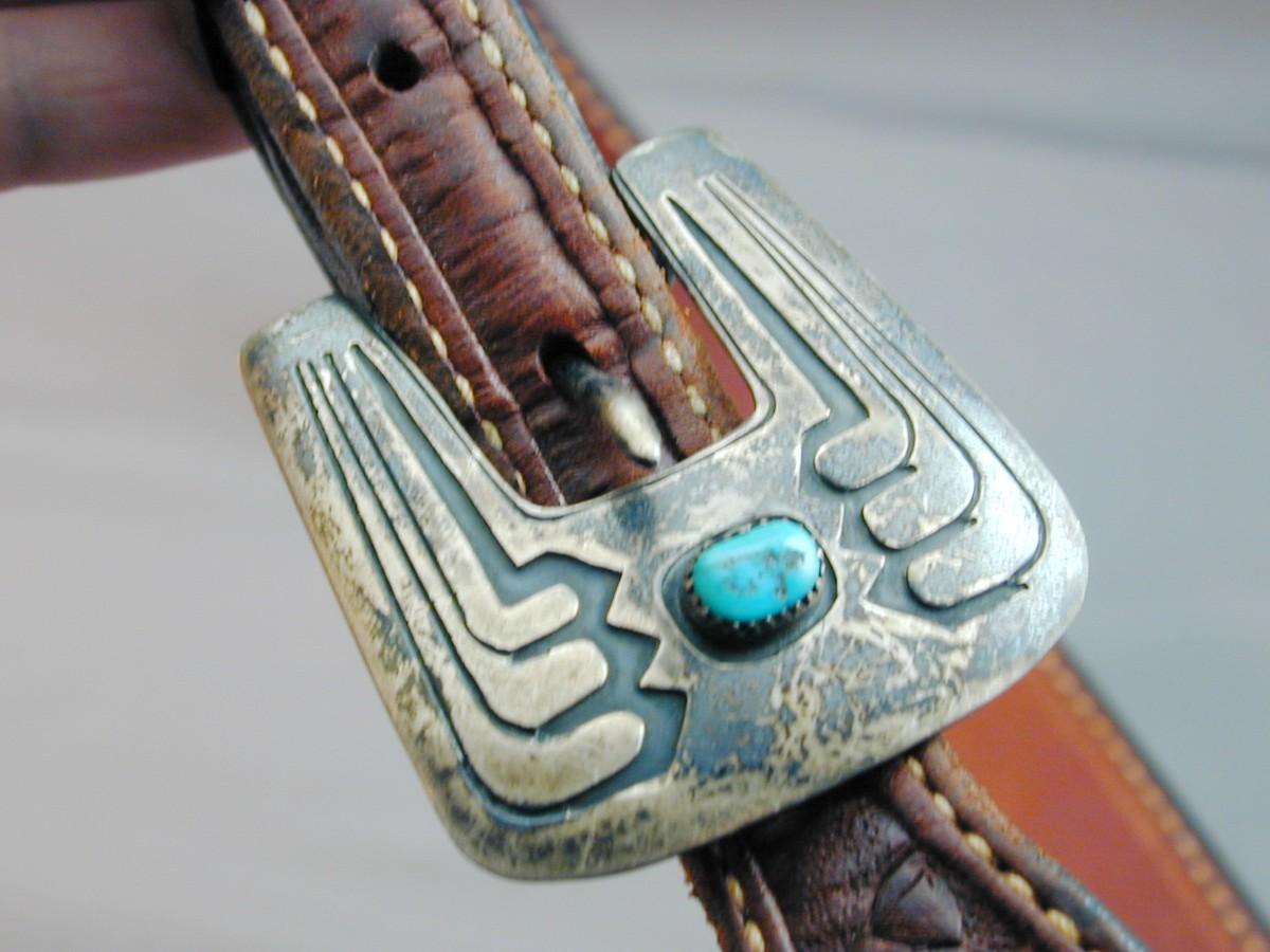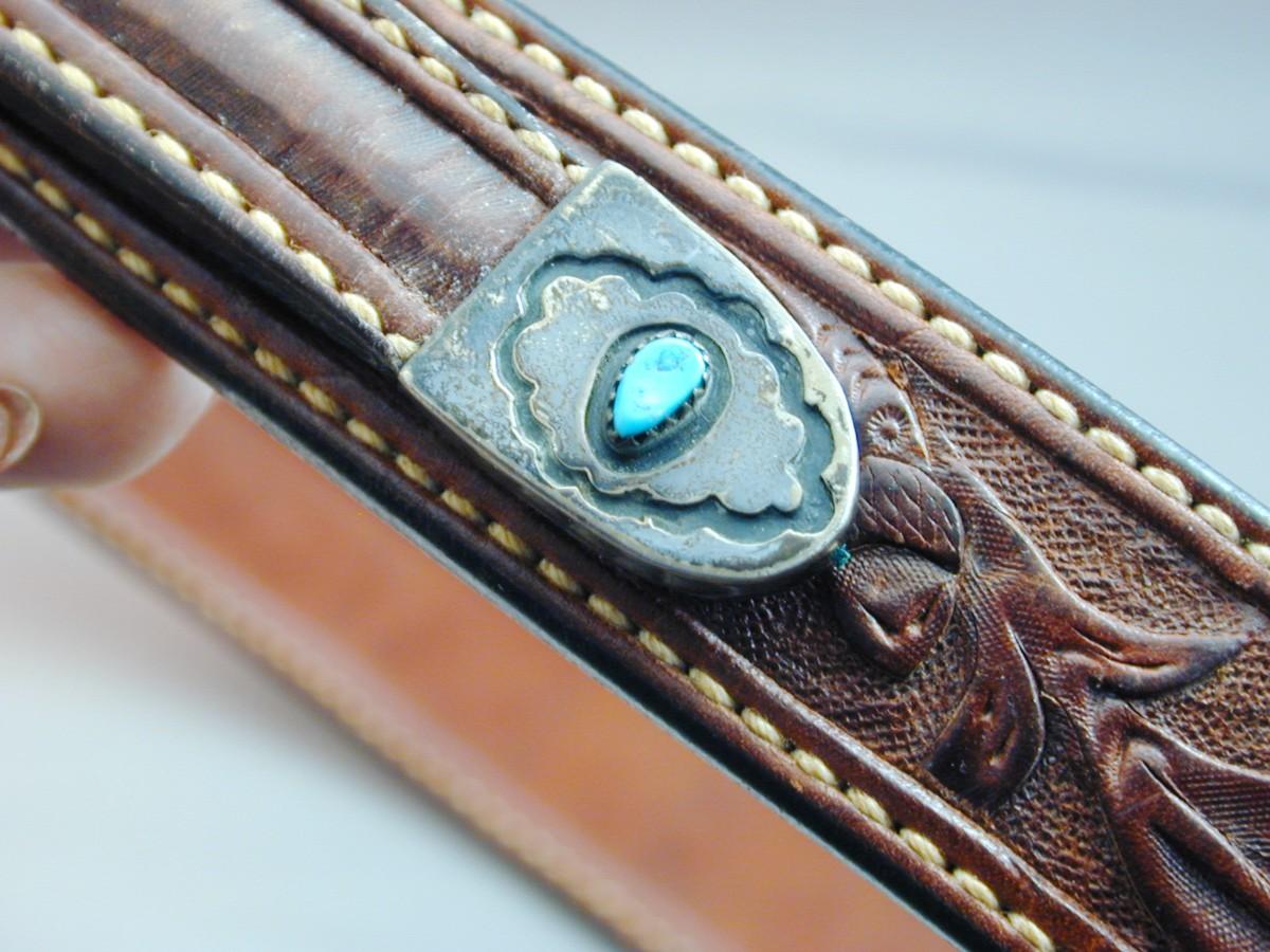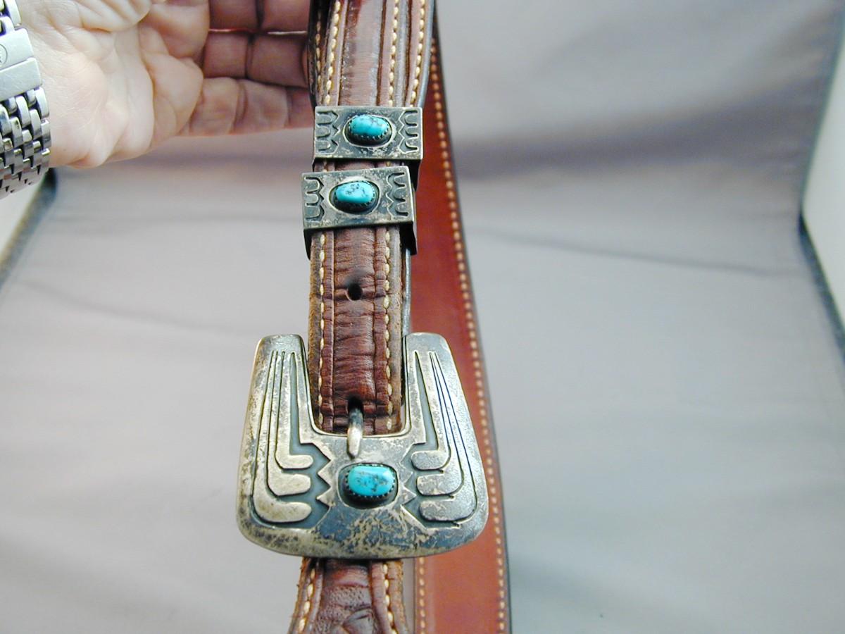 Vintage Tooled Leather Belt Sterling Turquoise Navajo Benson Sam 4 Piece Belt Buckle Lot 378