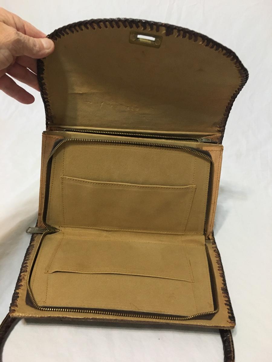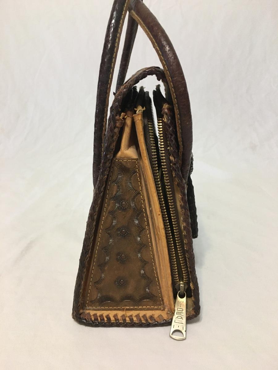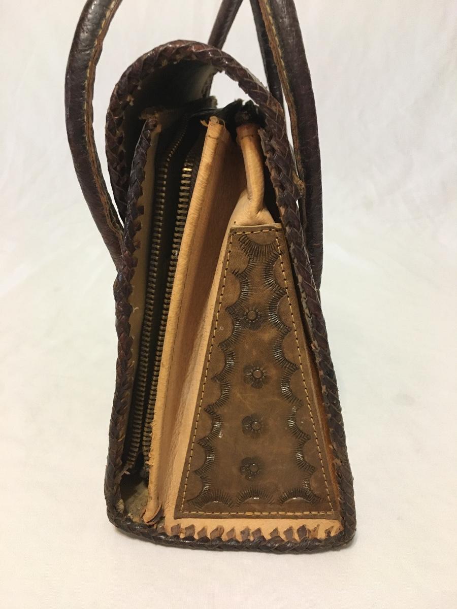 Vintage  Tooled Leather Purse Hand Bag Brown Tan Floral Southwest