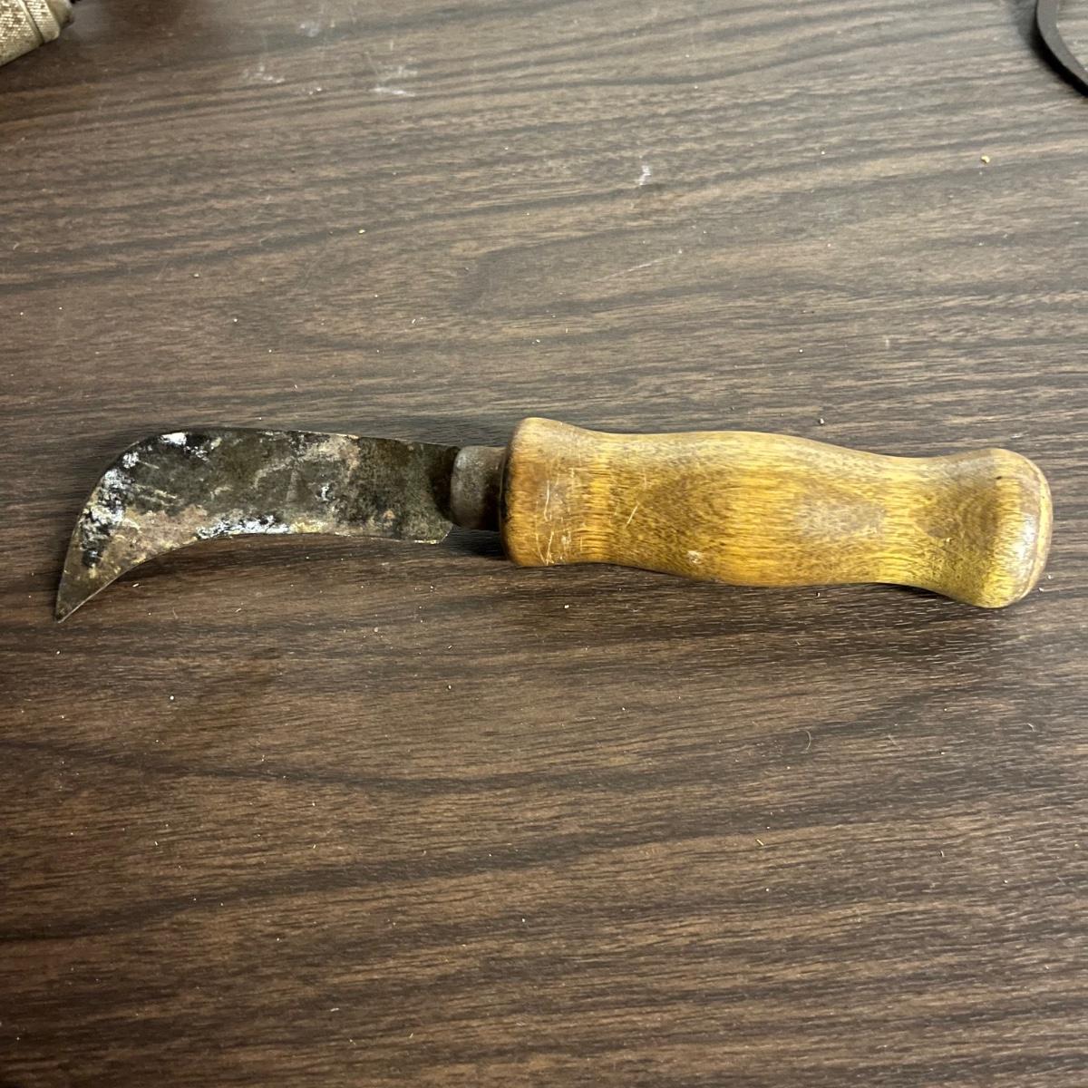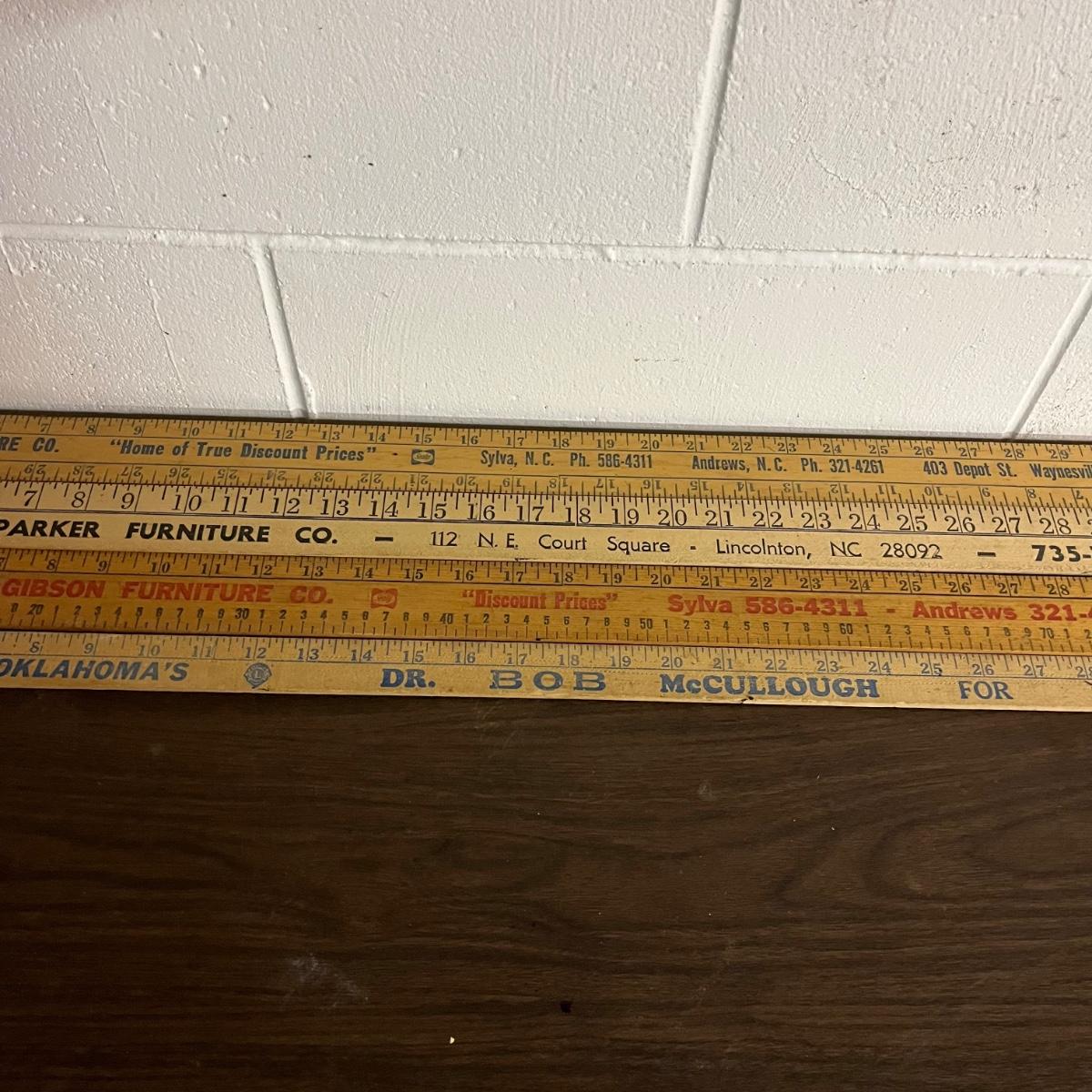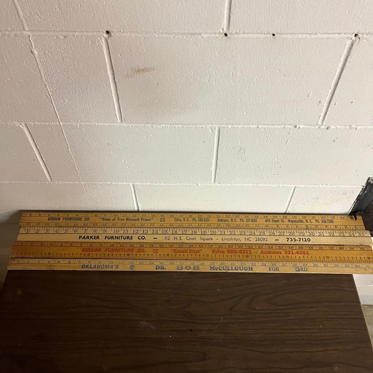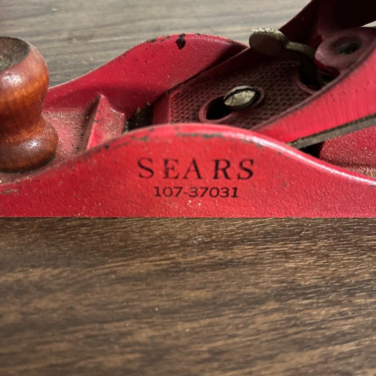 Lot includes hand drill, Sears wood planer, hatchet, metal calipers, carpet knife, lock, hatchet and four wooden yardsticks.