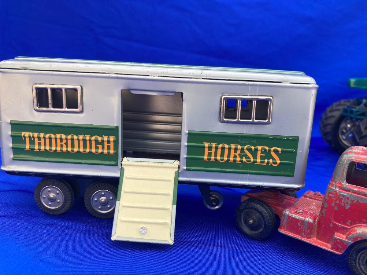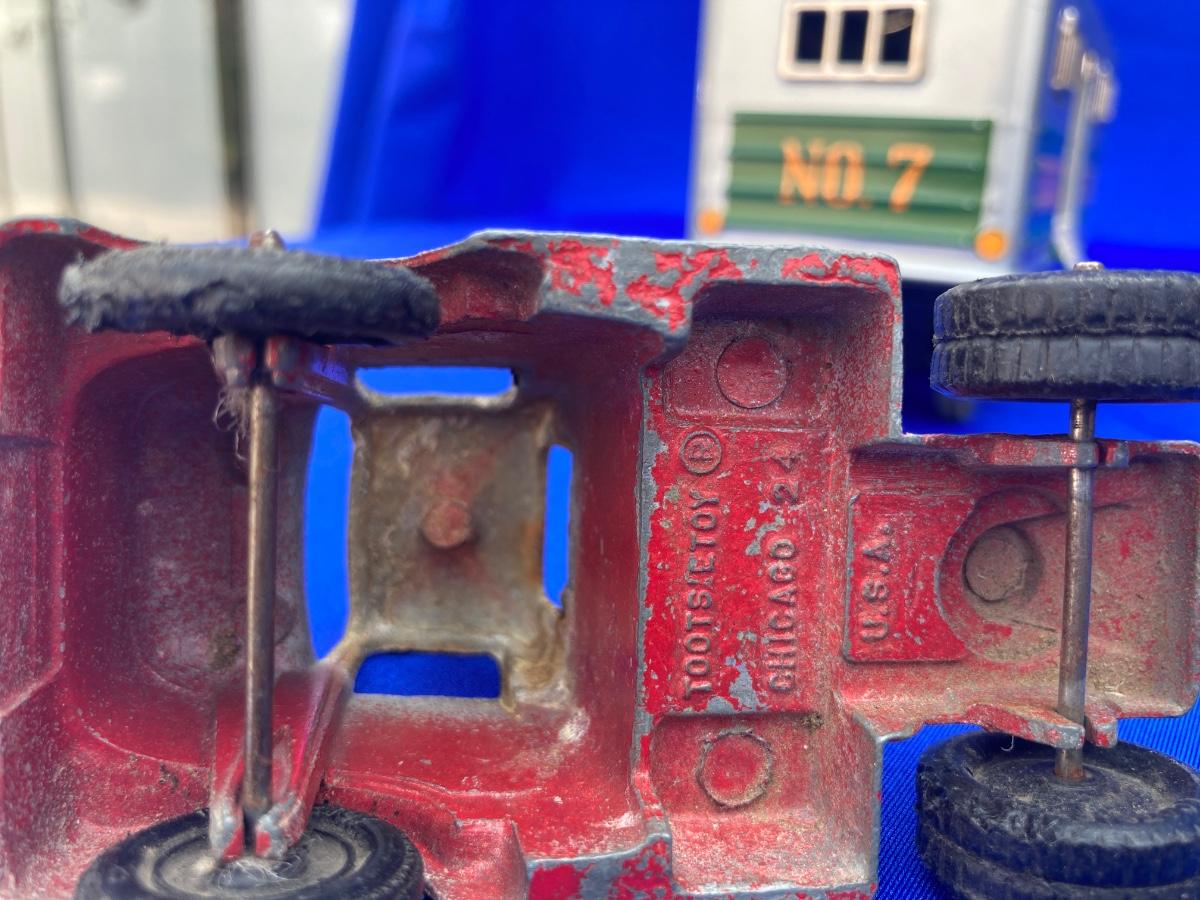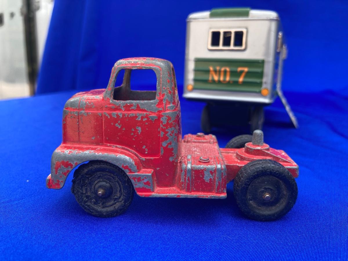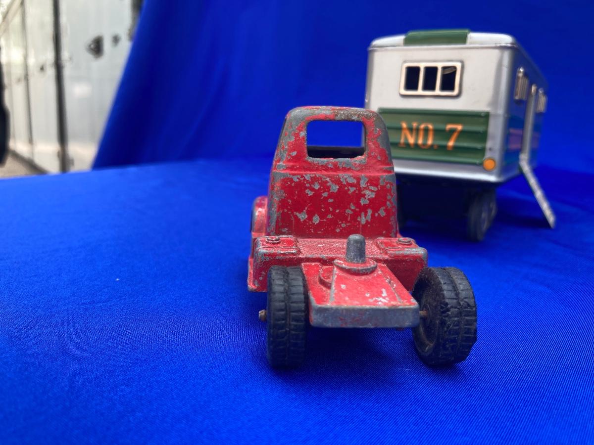 VINTAGE TOOTSIE TRUCK, TRAILER, AND OLD CAR