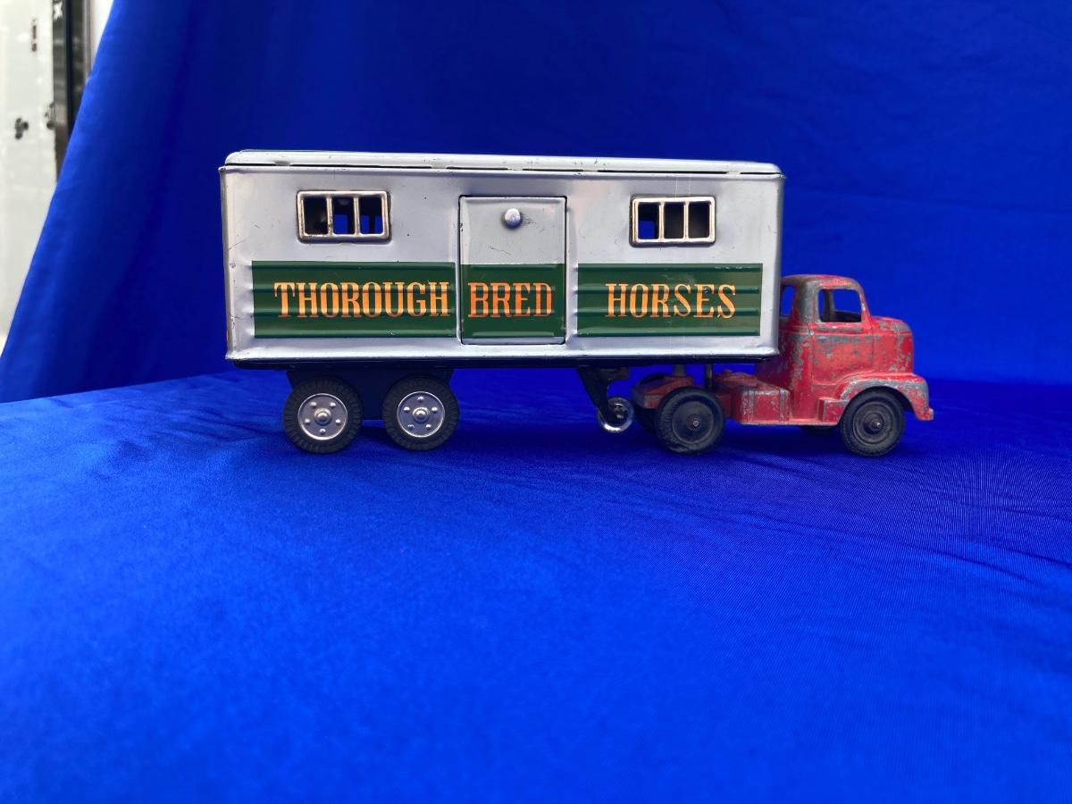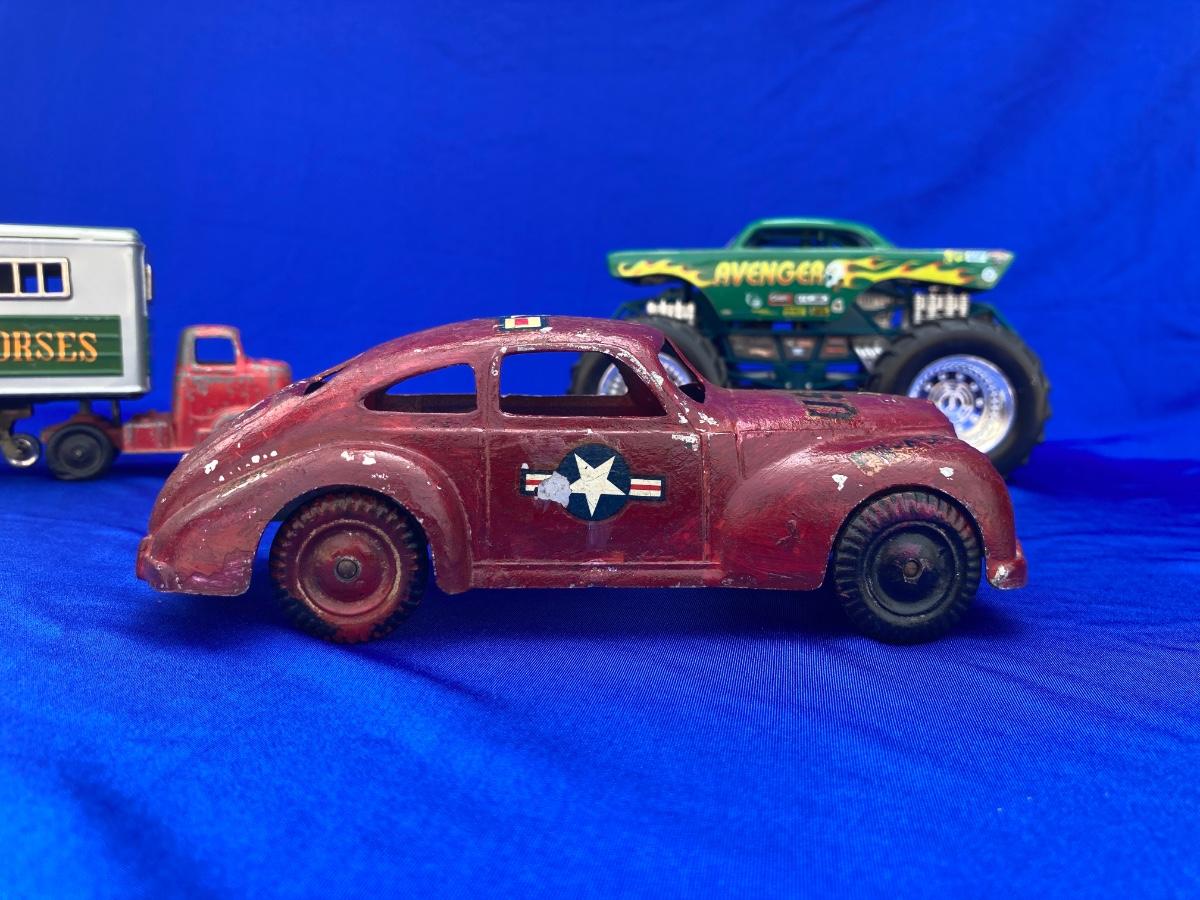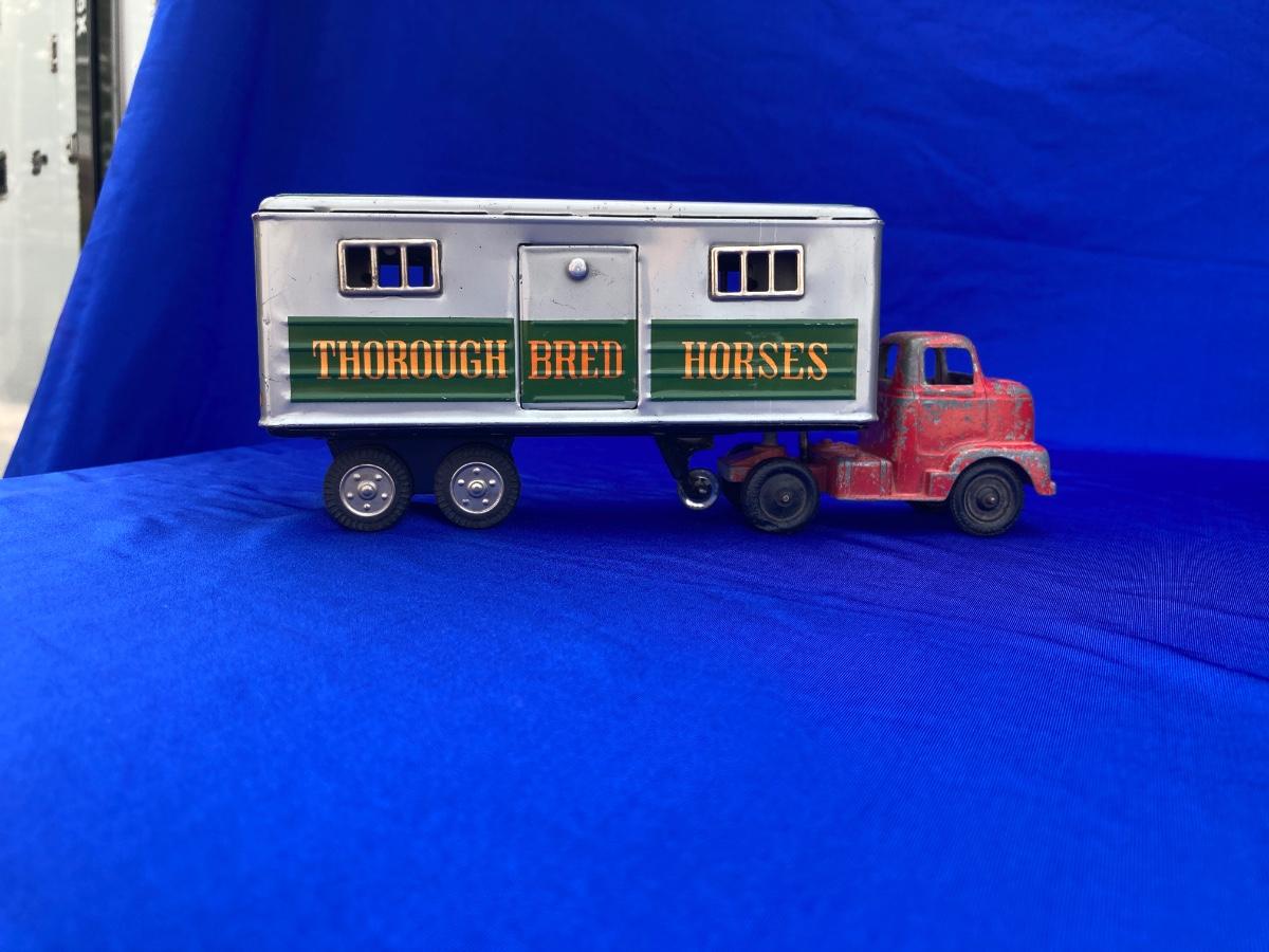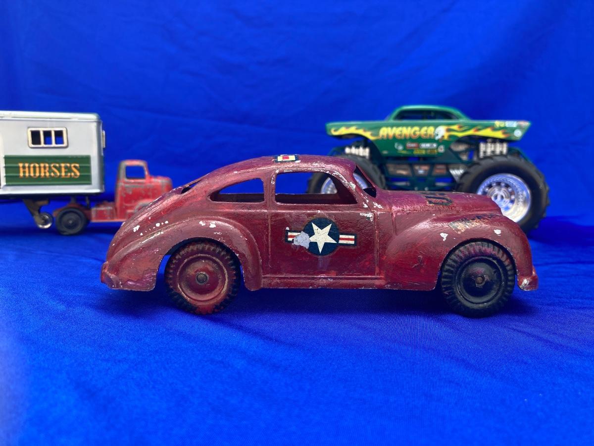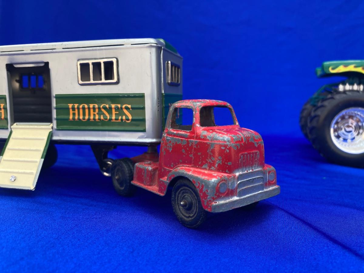 VINTAGE TOOTSIE TRUCK, TRAILER, AND OLD CAR