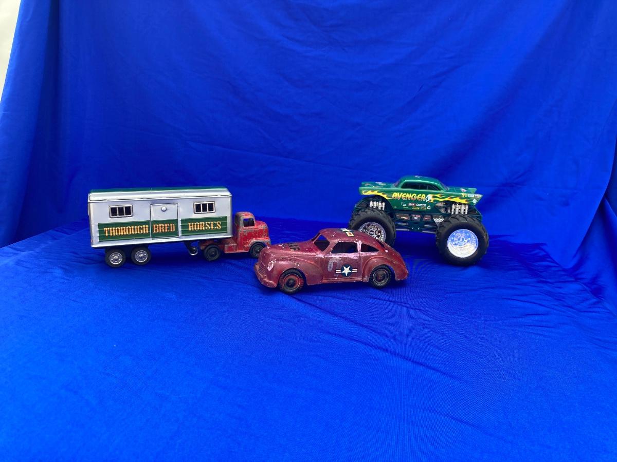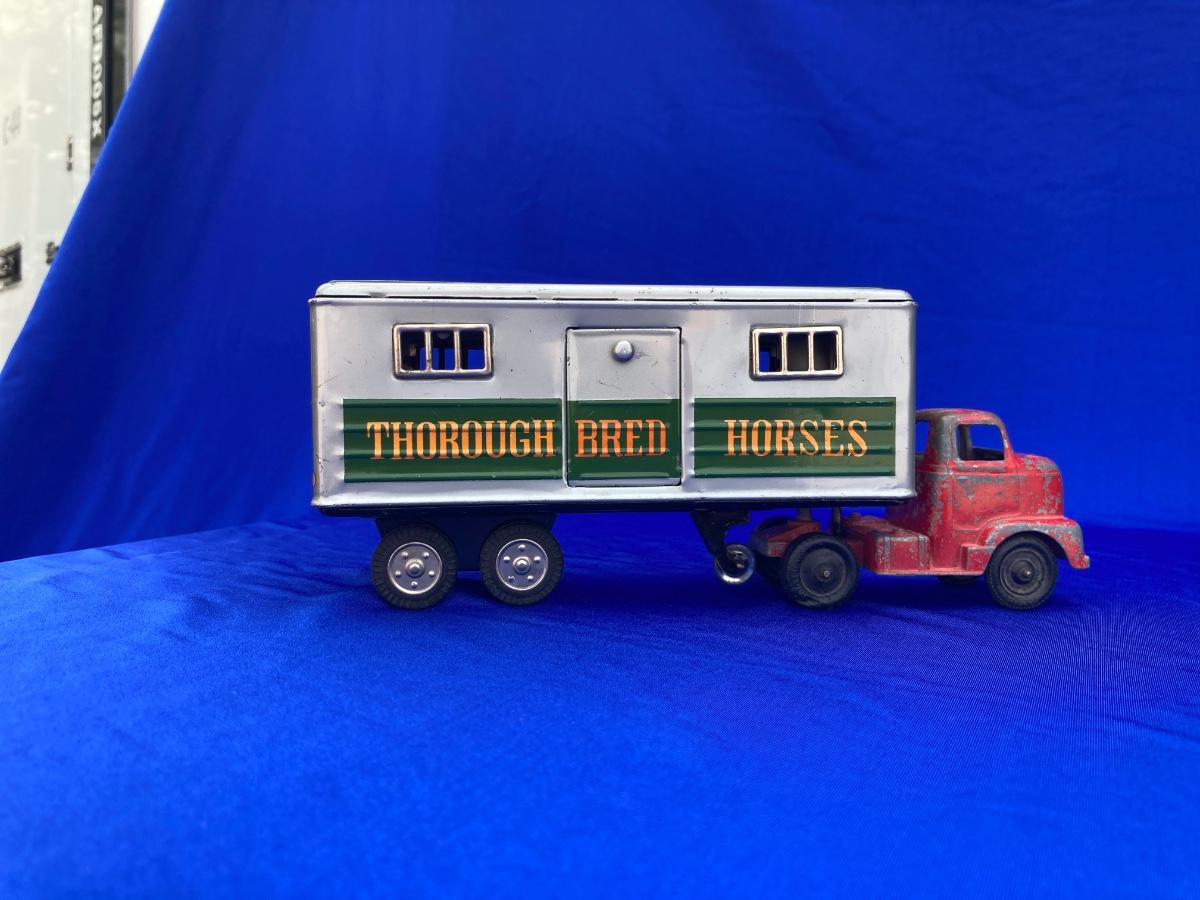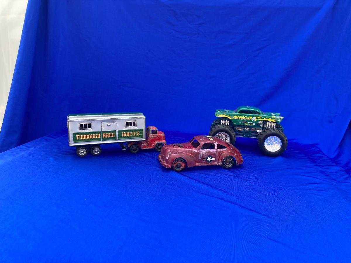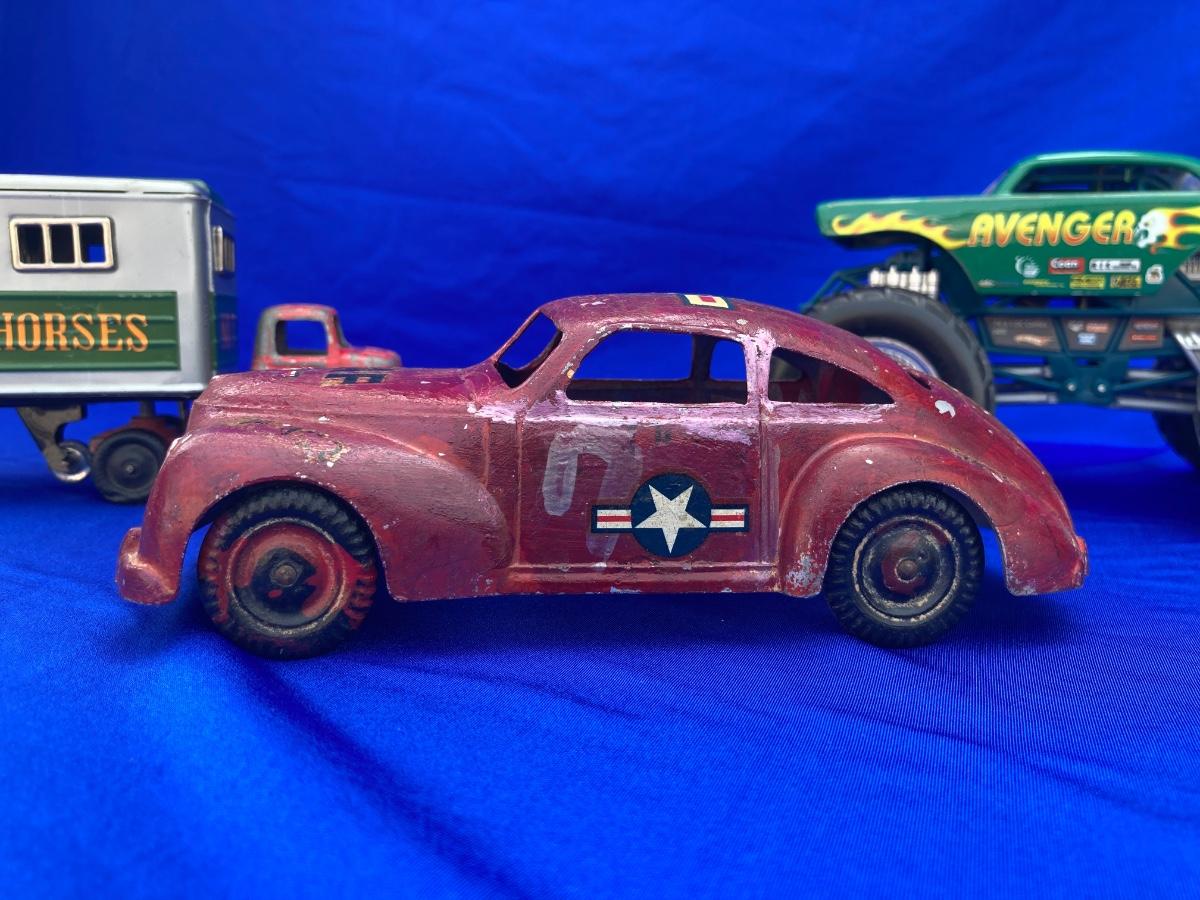 VINTAGE TOOTSIE TRUCK, TRAILER, AND OLD CAR