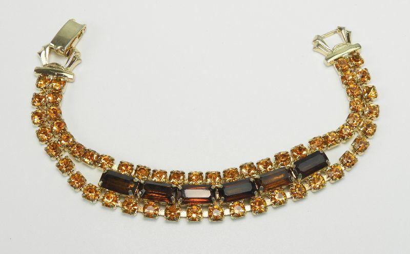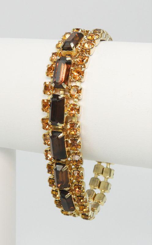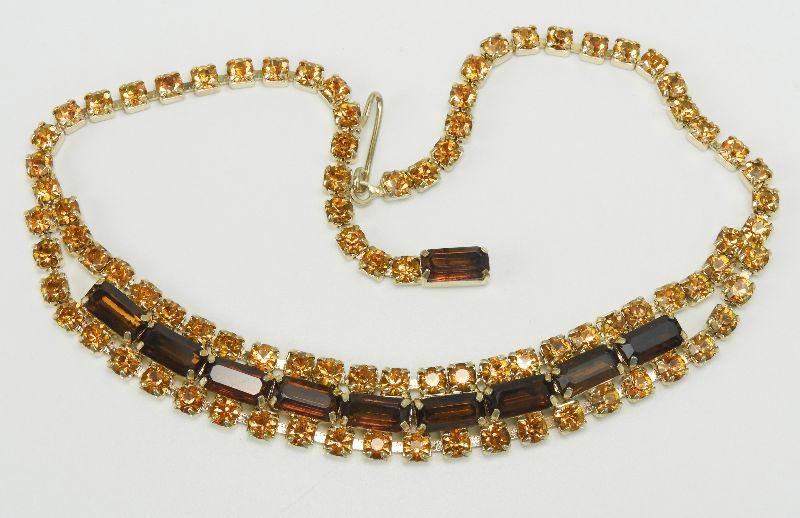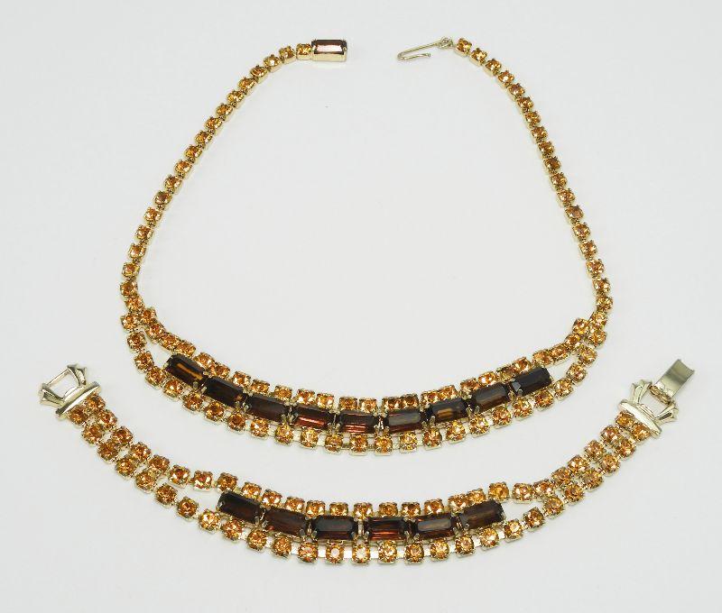 Vintage Topaz & Amber Rhinestone Necklace and Bracelet Set